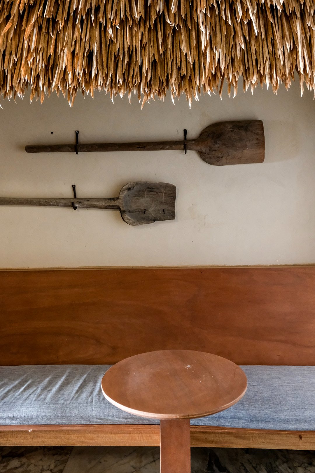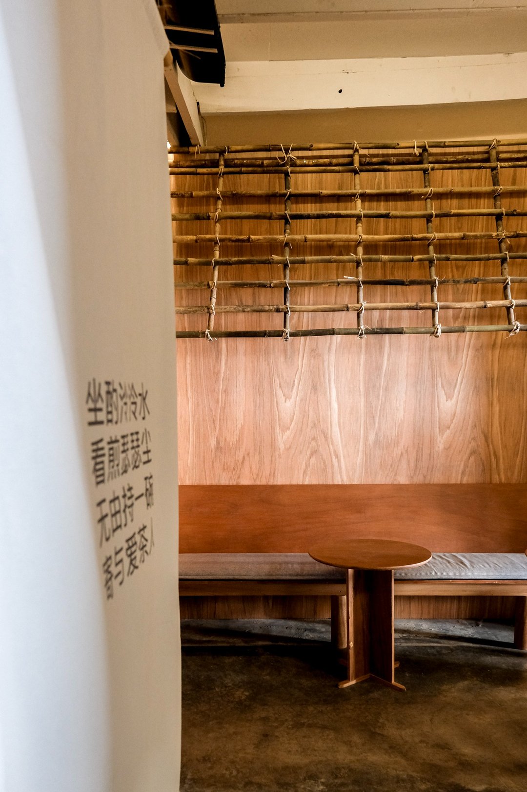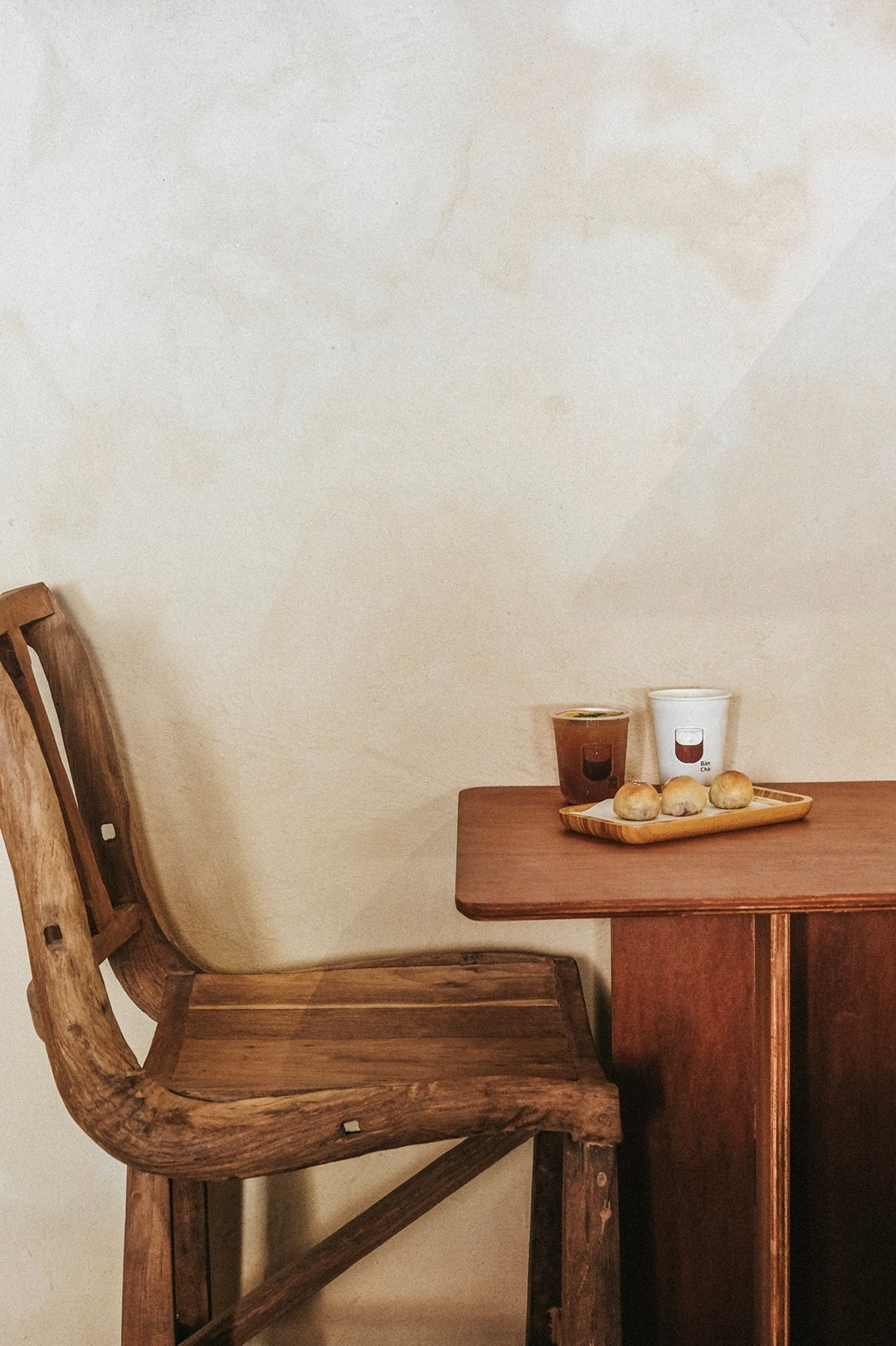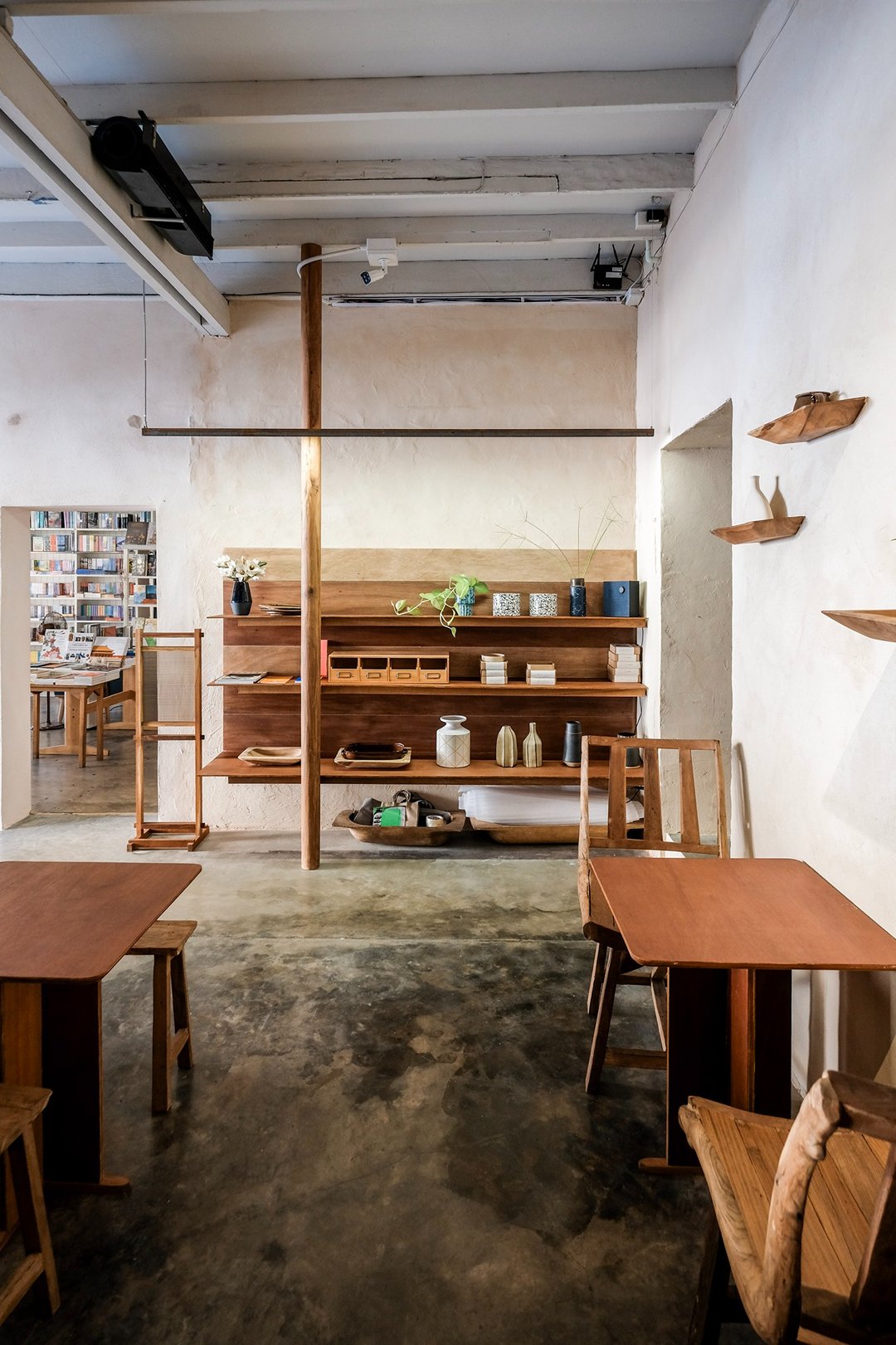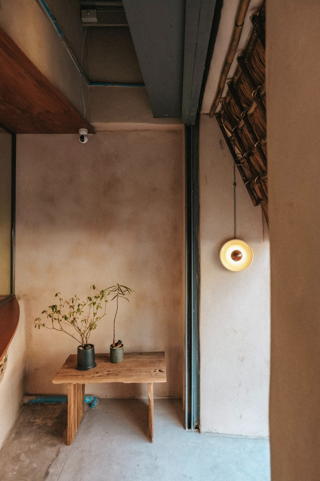 ตัวร้านซ่อนตัวอยู่ริมถนนเฟื่องนคร บรรยากาศค่อนข้างสงบ หยิบเอาองค์ประกอบพื้นถิ่นมาผสมกับความโมเดิร์น ทั้งโทนสี earth tone, เฟอร์นิเจอร์ไม้ และโครงสร้างหลังคามุงจากที่ทำให้มู้ดมีความ japandi เบาๆ