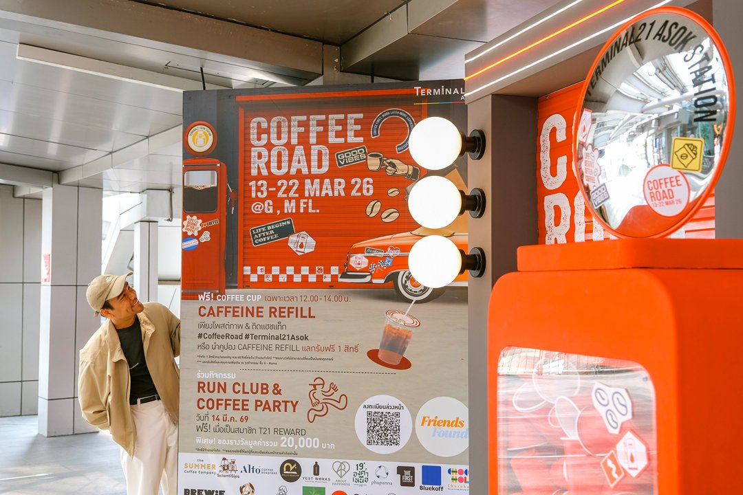 (14 มีนาคม 2569) Terminal21 Asok จับมือกับ FriendsFound ชวนทุกคนมาวิ่งด้วยกันใน Run Club สำหรับสาย Healthy หลังวิ่งเสร็จยังมี DJ Coffee Party ให้มานั่งชิล จิบกาแฟ ฟังเพลง พร้อมลุ้นของรางวัลรวมมูลค่ากว่า 20,000 บาท เพียงเป็นสมาชิก T21 Reward ก็สามารถร่วมกิจกรรมได้ฟรี