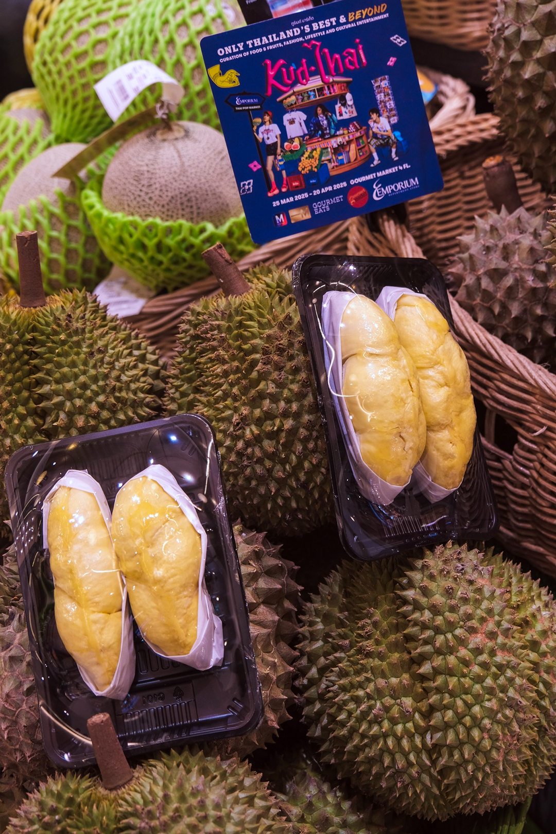 ปิดท้ายที่ เอ็มโพเรียม มุ่งหน้าพุ่งตรงไปที่บริเวณ ห้างสรรพสินค้าเอ็มโพเรียม ชั้น 1 คัลเจอร์คอนเซ็ปสโตร์ที่คัดสรรไอเท็ม ใหม่ๆ ที่นำเสนอความเป็นไทยในมุมมองใหม่ๆ สุดสร้างสรรค์ ทั้งงานคราฟต์ แฟชั่นดีไซน์ อาหารและเครื่องดื่ม นอกจากนี้ยังมีกิจกรรมให้ร่วมสนุกอีกเพียบ ขึ้นมาต่อที่บริเวณ Gourmet market ชั้น 4 เลือกช้อปผลไม้ไทยตามฤดูกาล กับเมนูโปรดที่เราเลิฟสุดๆ อย่าง ทุเรียนหมอนทอง ,ทุเรียนโอวฉี่/มูซันคิง, มะม่วงน้ำสุก, มะม่วงแรด ฯลฯ และอีกมากมายให้ทุกคนได้แวะช้อปกันแบบจุกๆ
