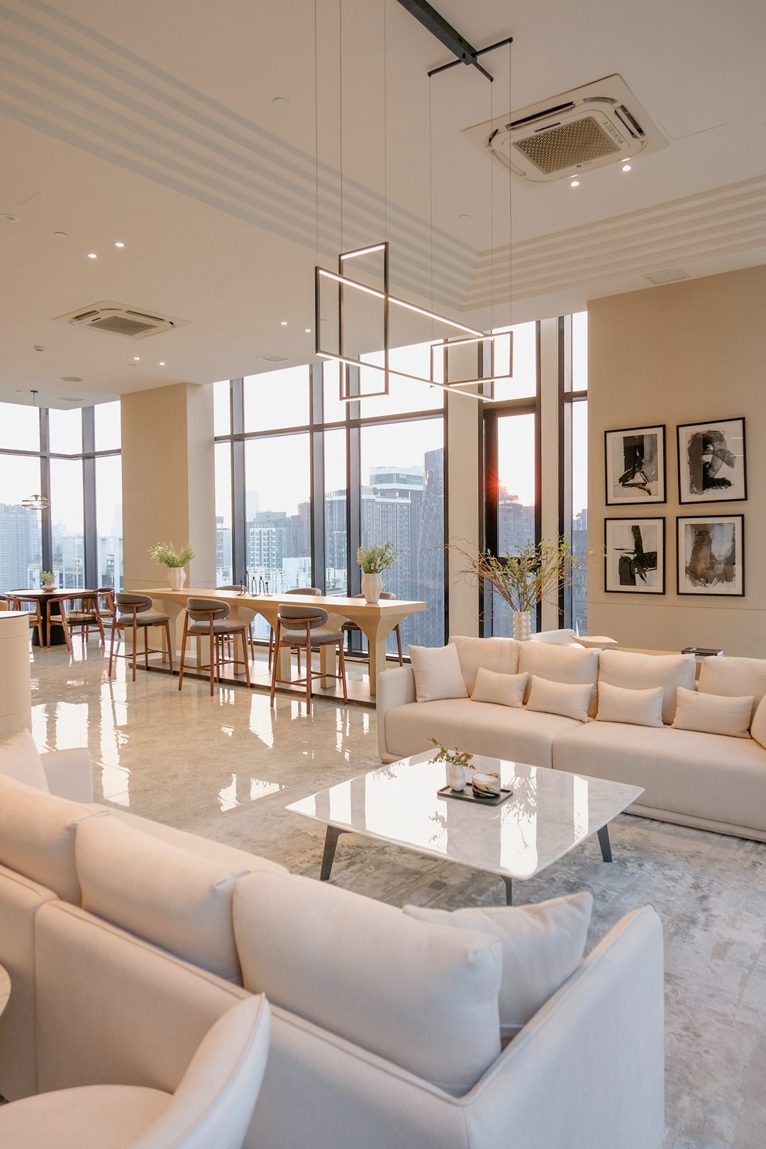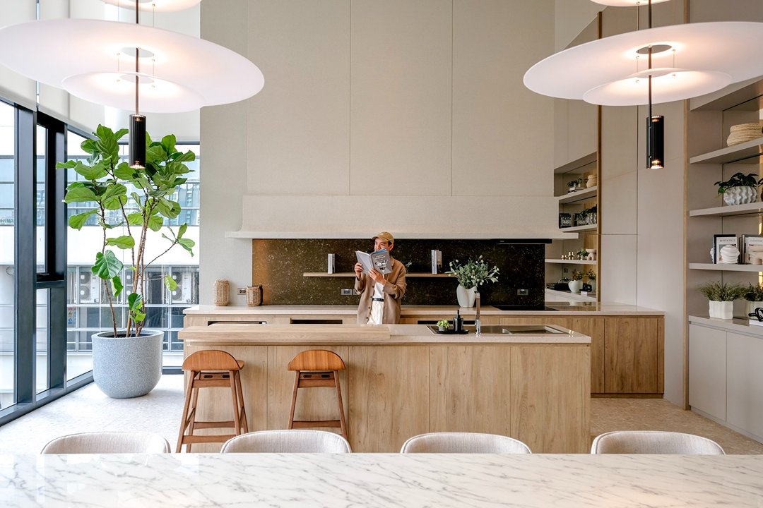 NUE District R9 เป็นพื้นที่อยู่อาศัยที่ออกแแบบ ฟังก์ชันคิดมาเพื่ออยู่จริง ไม่ใช่แค่ดูดีในภาพ มันมีความ Aesthetic แบบเรียบง่าย ไม่ได้หวือหวา แต่มีความบาลานซ์แบบพอดี มีมุมโต๊ะเล็กๆ ริมหน้าต่าง วางแก้วกาแฟตอนเช้าหรือเปิดไฟ warm tone ตอนกลางคืน บรรยากาศมันดีเองโดยไม่ต้องแต่งเติมอะไรมาก