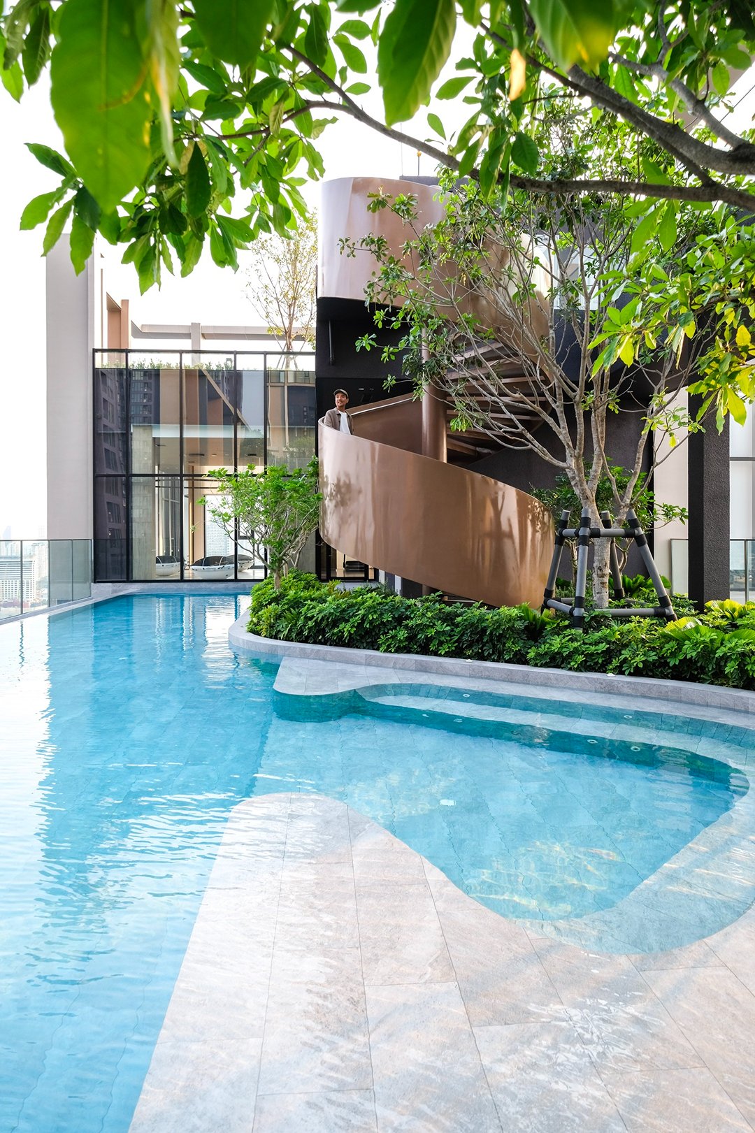 ส่วนกลางที่นี่คืออีกโลกหนึ่งของตึกนี้ ที่มีพื้นที่กว่า 8 ไร่ 8 โซน 50 ฟังก์ชัน