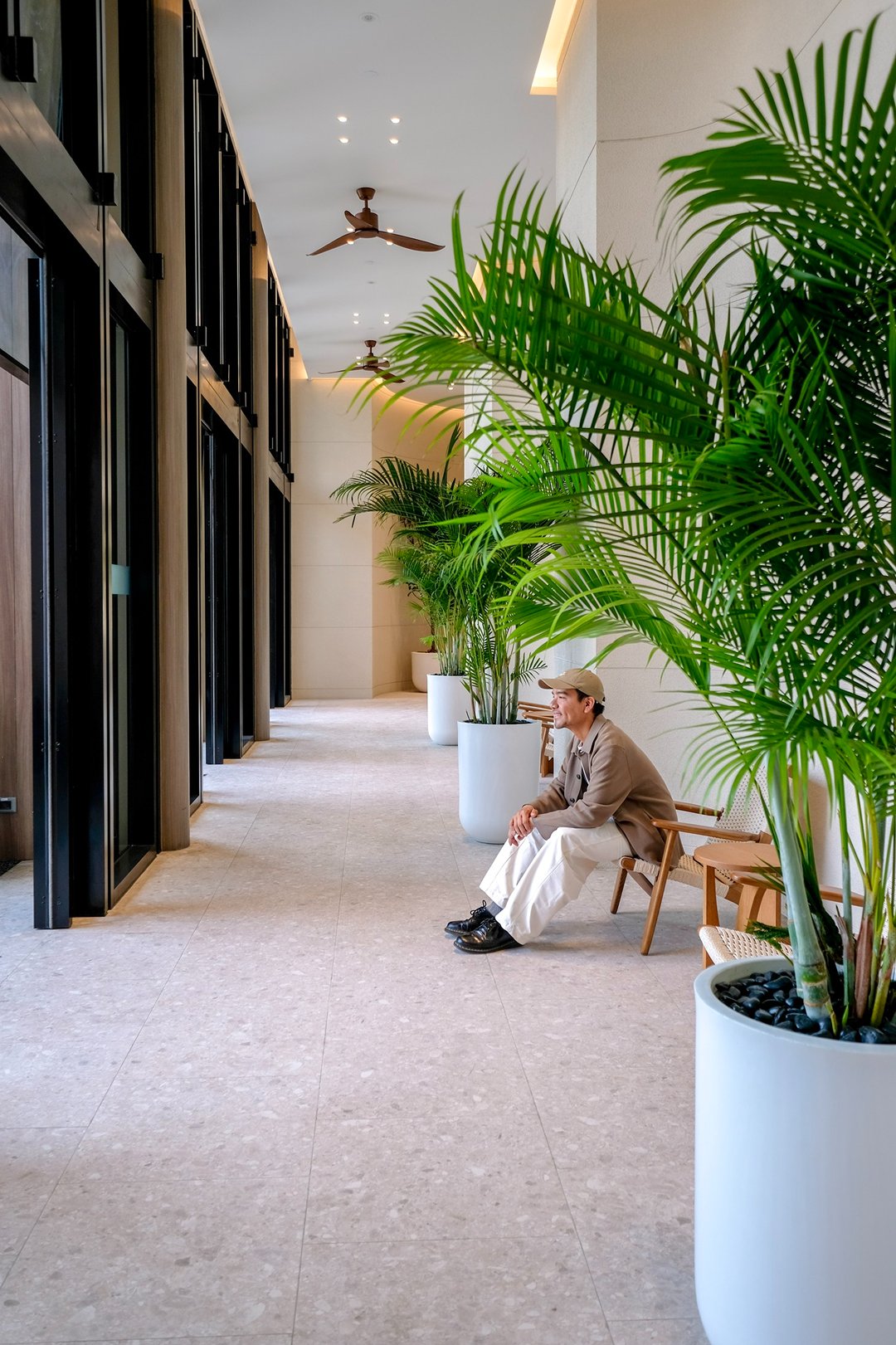 แสงธรรมชาติปลายทางเดินทำให้บรรยากาศดูโปร่งโล่ง ทุกครั้งที่กลับถึงตึก ความรู้สึกมันเหมือน “กลับบ้าน” จริง ๆ ไม่ใช่แค่ที่พัก แต่คือพื้นที่พักใจหลังวันยาว ๆ