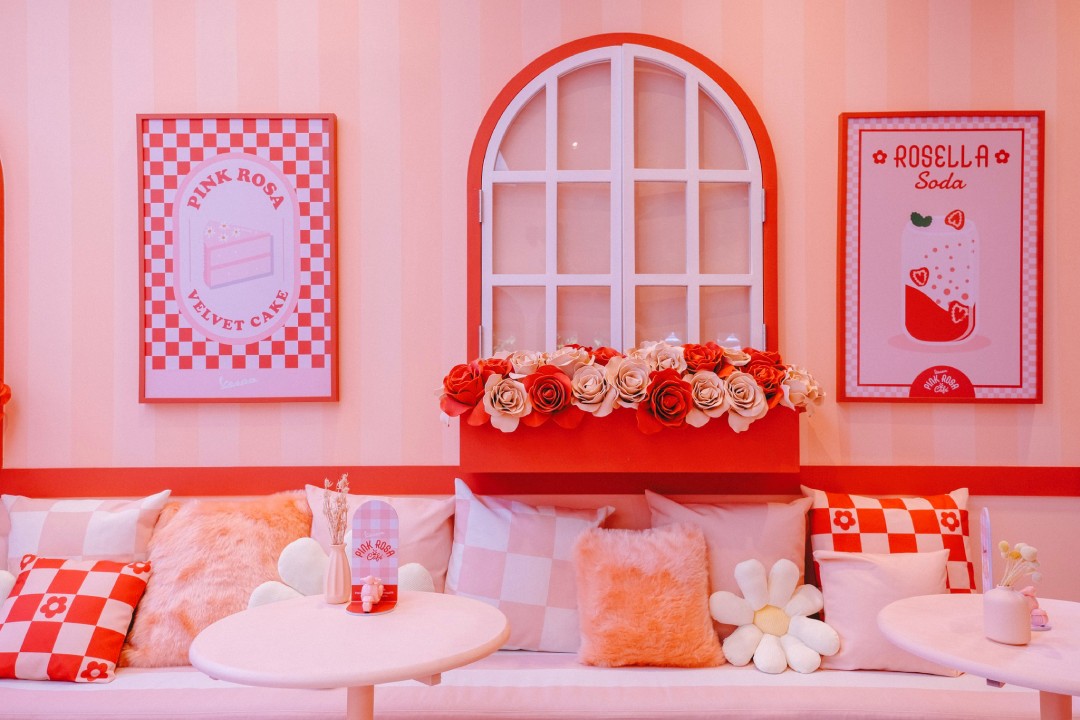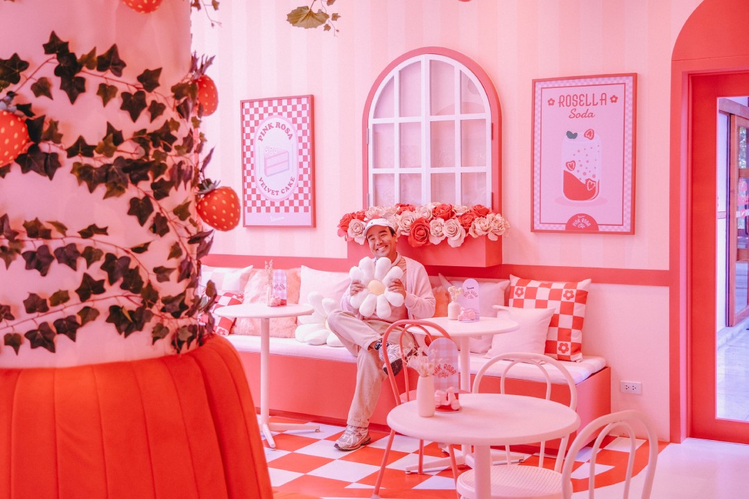- เครื่องดื่ม สีชมพู แสนหวาน เสมือนเวลาที่คุณตกหลุมรักโลกทั้งใบก็กลายเป็นสีชมพู มีให้เลือกหลายเมนูเช่น Strawberry Shortcake, Strawberry Roll Cake, Pink Rosa Velvet Cake นอกจากนี้ยังมี Gelato หลายรสชาติให้เลือกหรือจะเป็นเมนูขนมไทย สไตล์โฮมเมดจาก Patom Organic Living ไว้เป็นทางเลือกอีกด้วยครับ