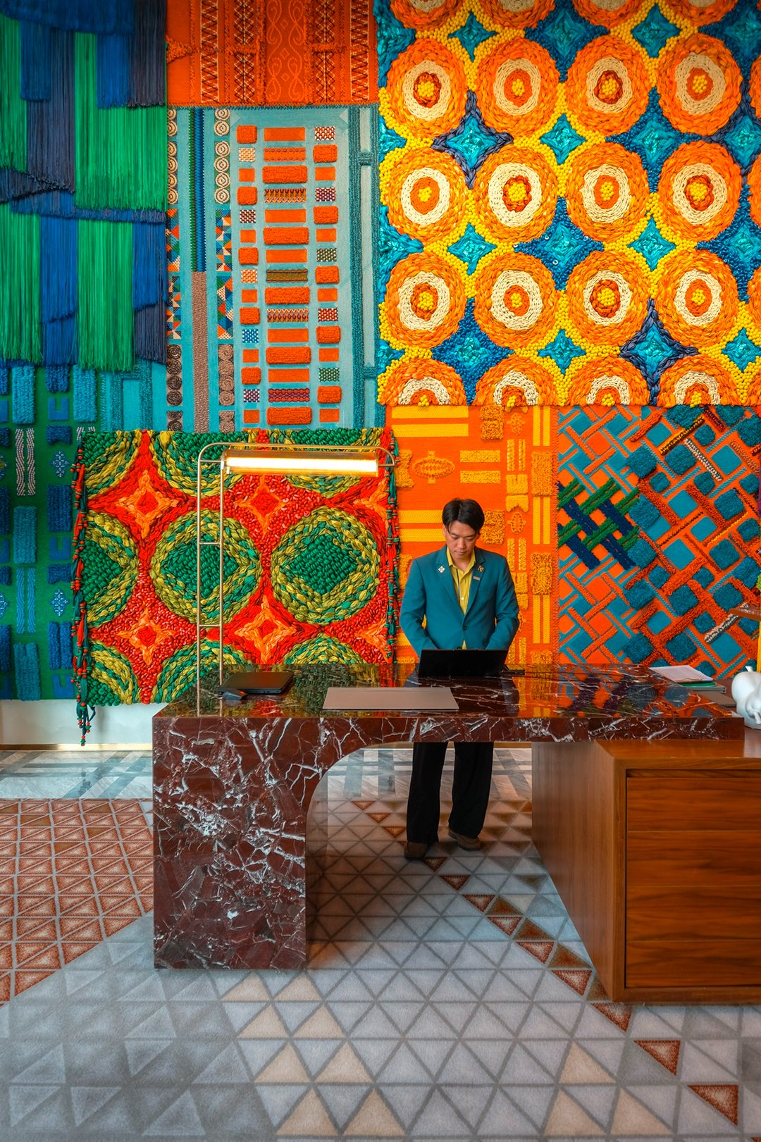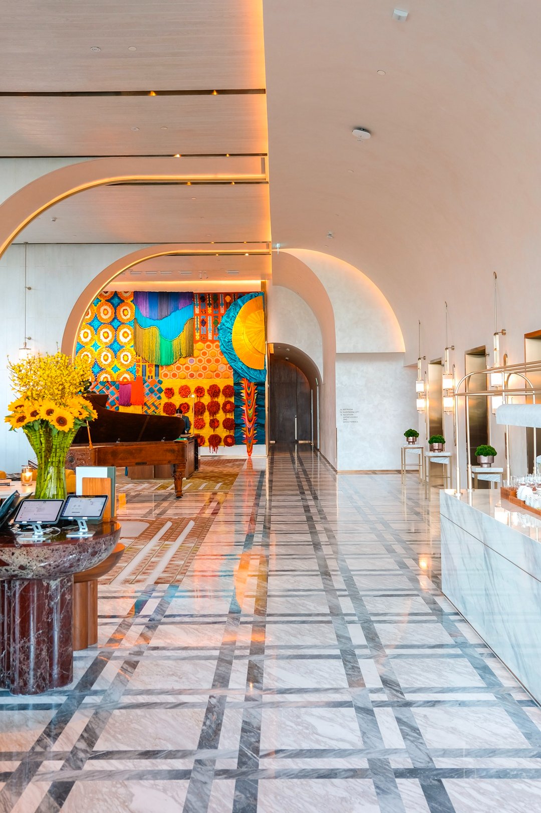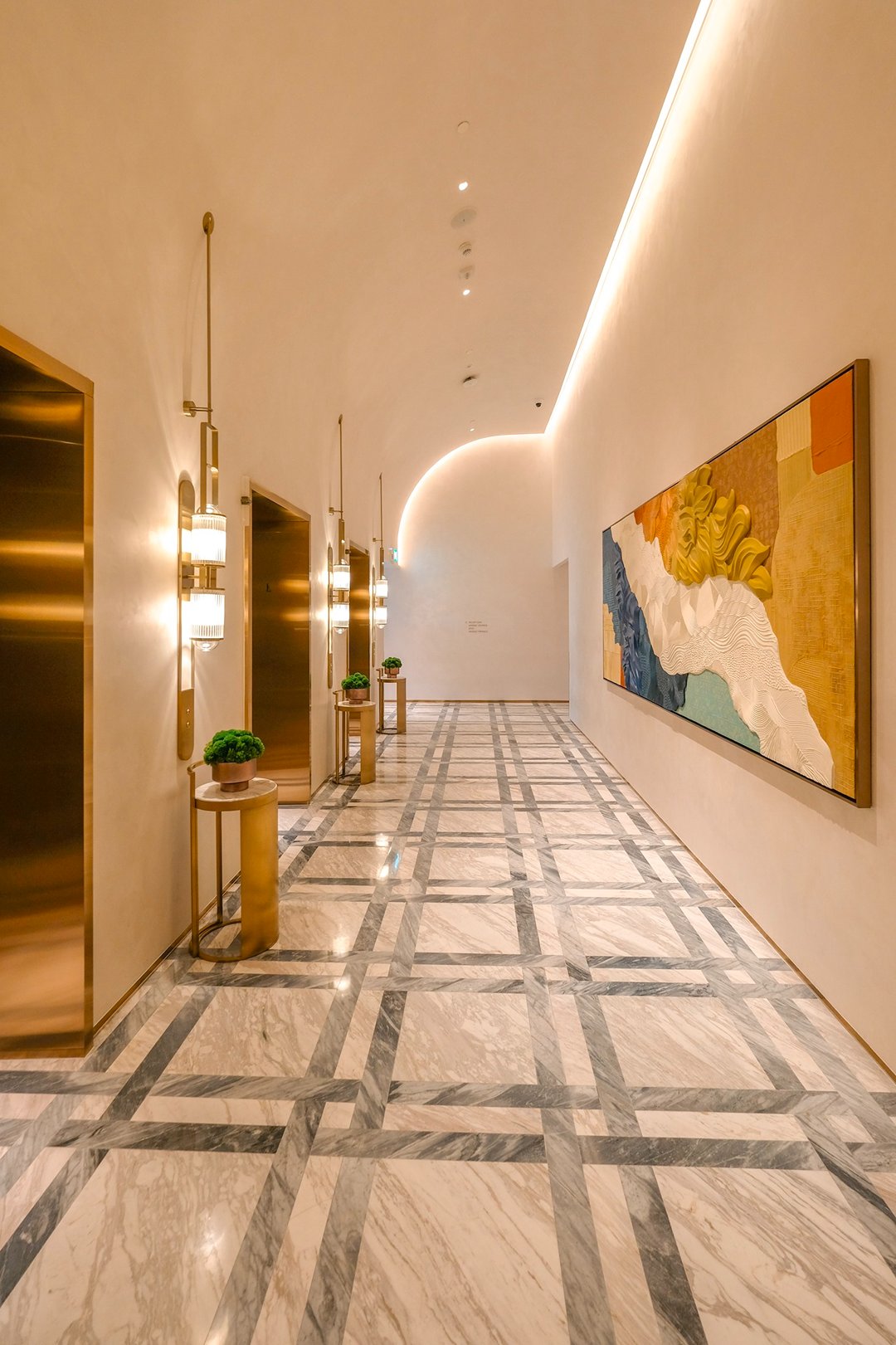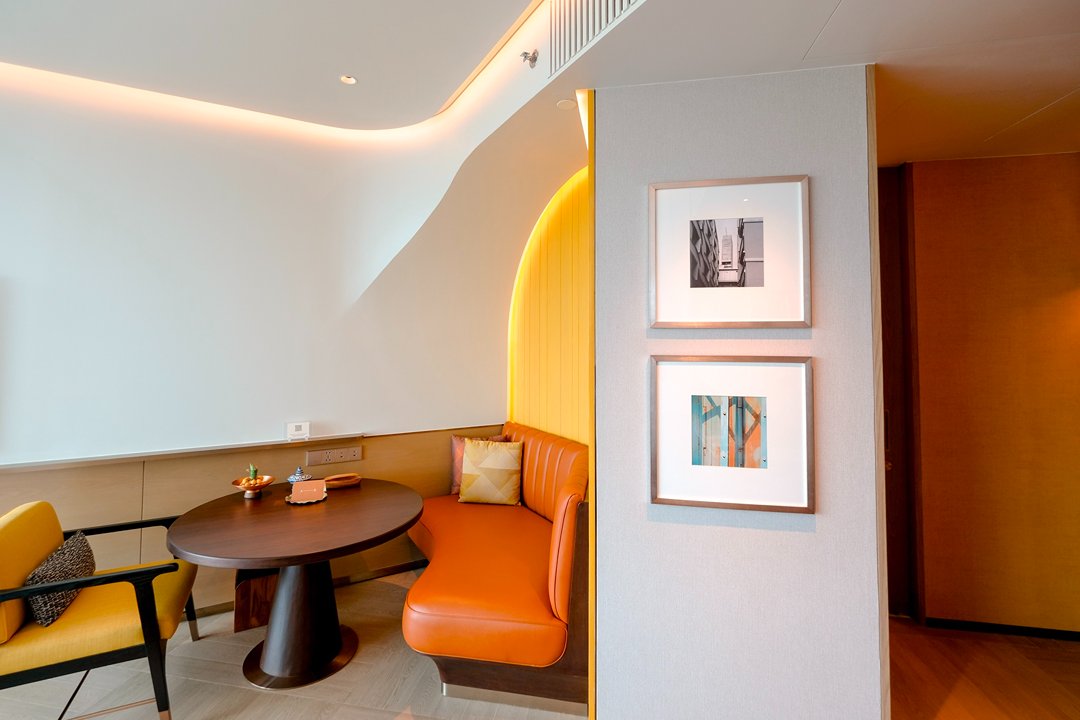 ระหว่างที่เดินสำรวจ เรารู้สึกเหมือนกำลัง “ค้นพบ” อะไรบางอย่างทีละนิดไม่ใช่แค่ดีไซน์ที่สวย แต่เป็นความตั้งใจเล็กๆ ในทุกองค์ประกอบ ตั้งแต่วัสดุ ผิวสัมผัส ไปจนถึงงานศิลปะที่แทรกอยู่ในพื้นที่ทุกอย่างถูกวางมาแบบมี layer เหมือนชวนให้เราหยุดมอง…แล้วรู้สึกไปกับมัน เหมือนเดิมชม art gallery เล็ก ๆ ที่ซ่อนอยู่ในตึกสูงระฟ้า