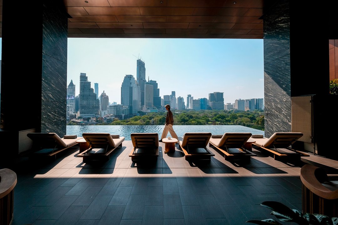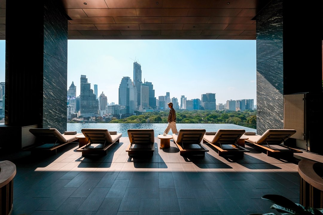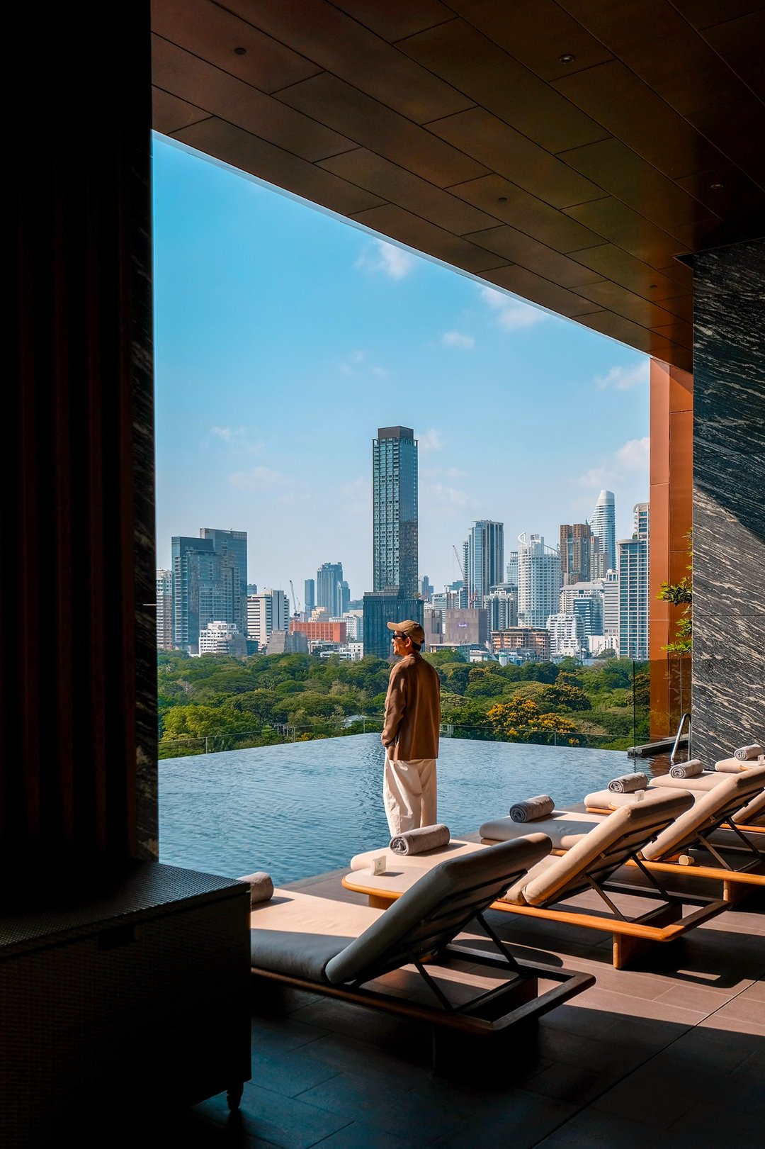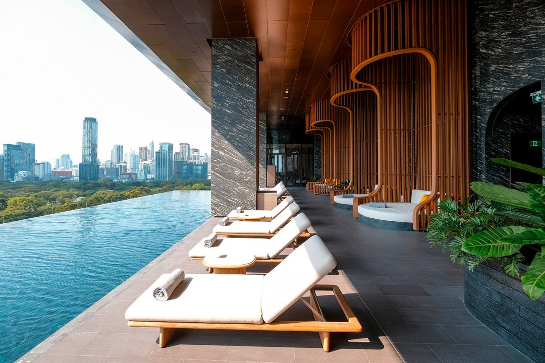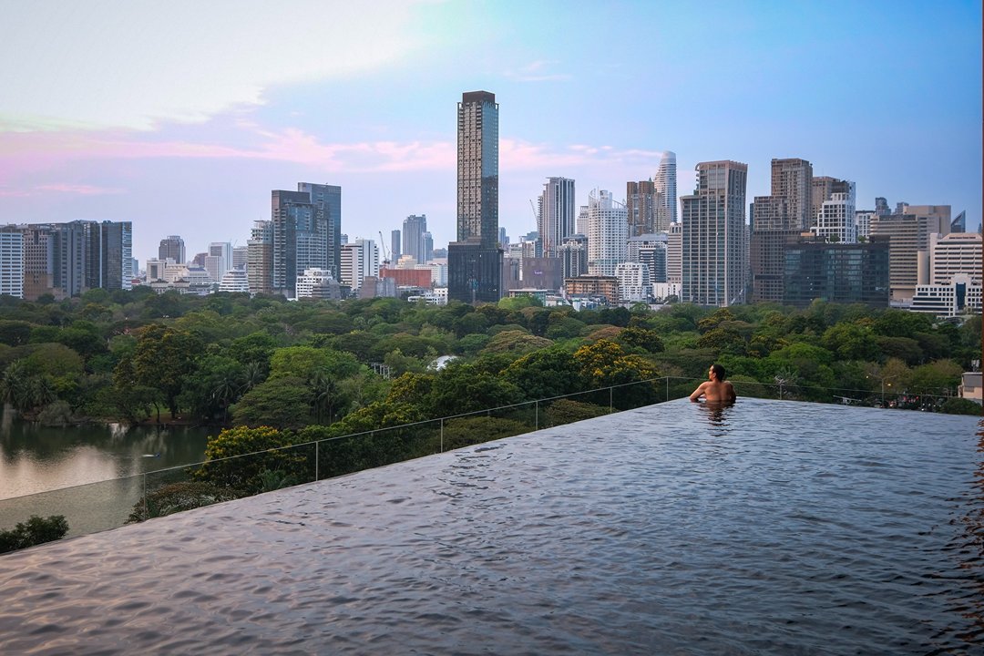 โมเมนต์ที่เราชอบที่สุด คือช่วงเย็นที่สระว่ายน้ำวิวสวนลุมพินีตรงหน้า ตัดกับ skyline ของเมือง มันเป็นภาพที่บาลานซ์ และดีต่อใจมาก ระหว่าง “ธรรมชาติ” และ “ชีวิตเมือง” เรานั่งมองอยู่นานโดยไม่รู้ตัวเหมือนหยุดเวลาให้มันเดินช้าลง พอหมดแสงพระอาทิตย์เมืองก็เริ่มมีแสงไฟ บรรยากาศก็เปลี่ยนไปอีกแบบ