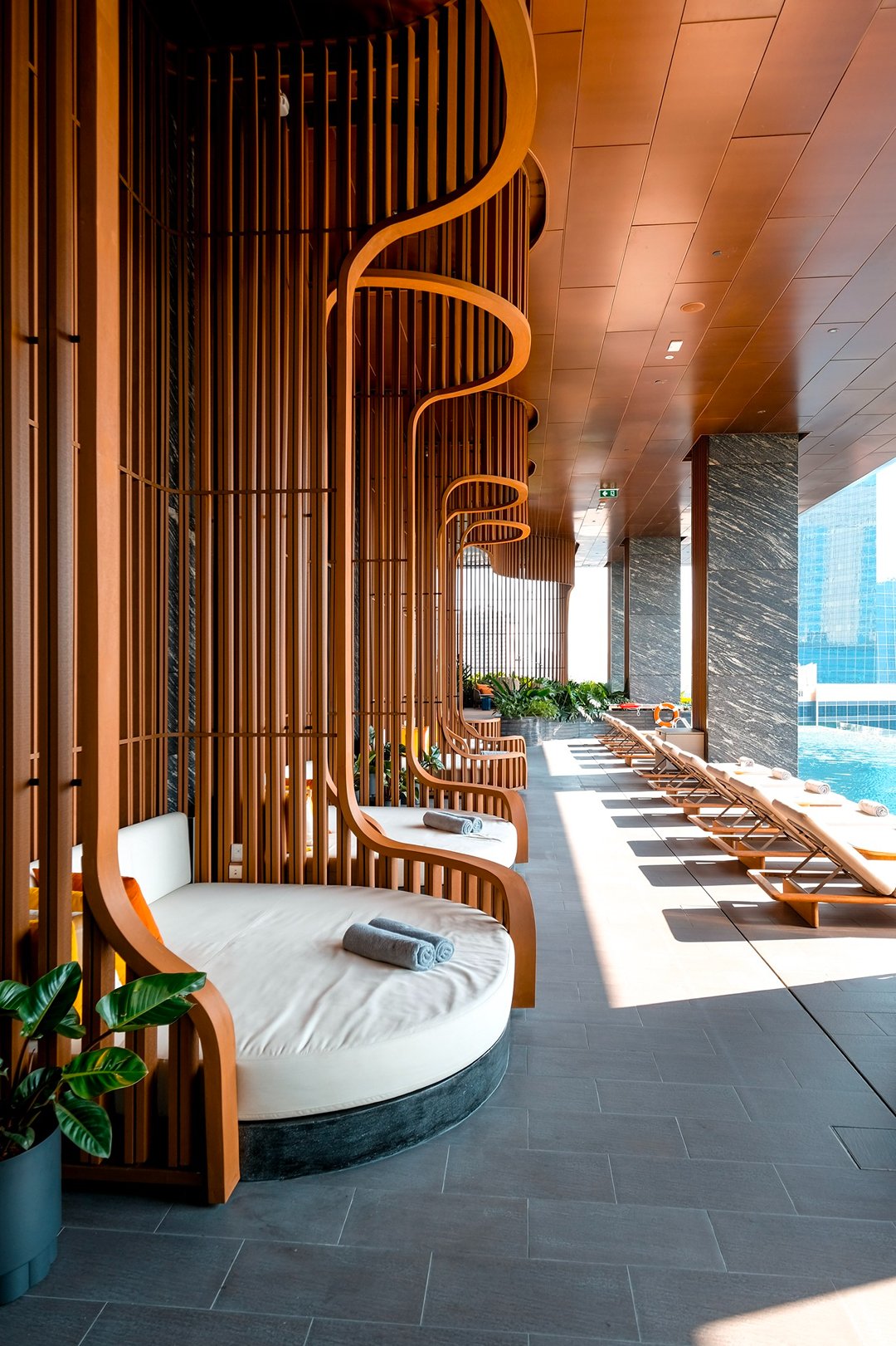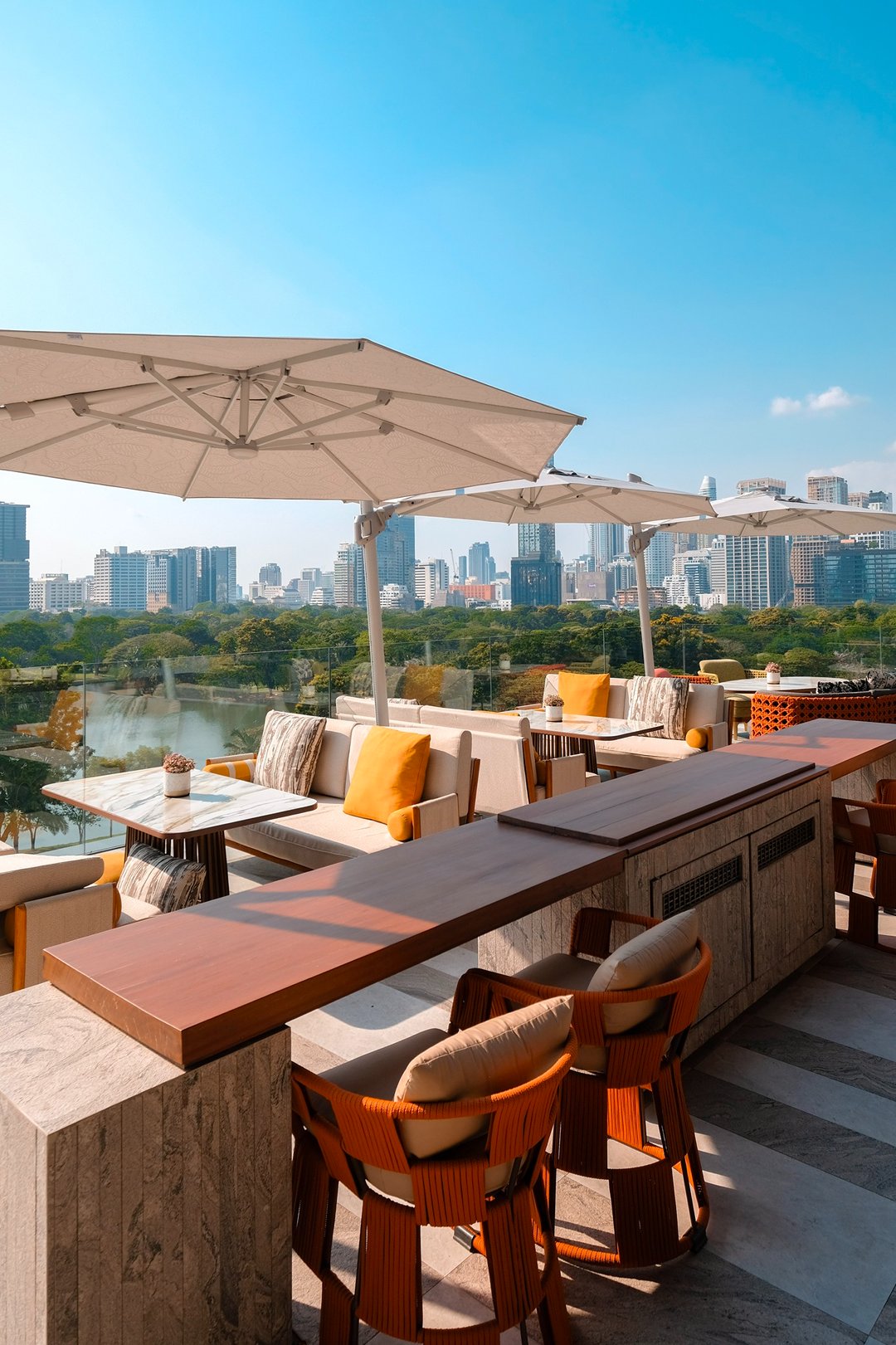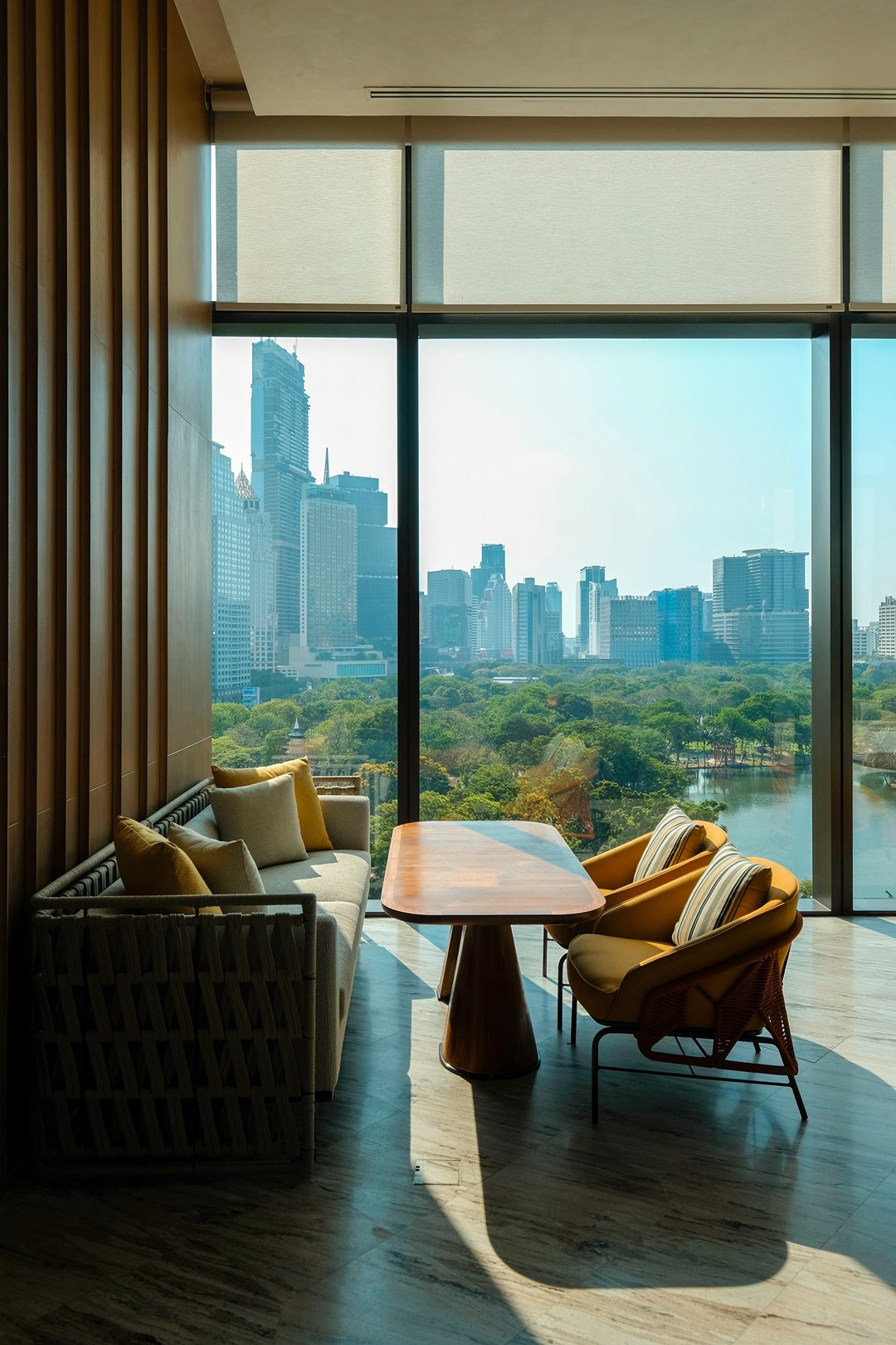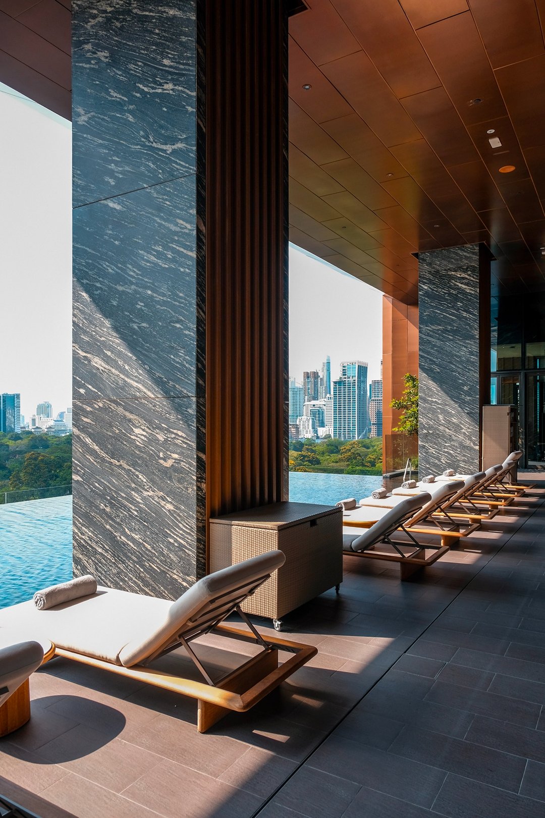 โมเมนต์ที่เราชอบที่สุด คือช่วงเย็นที่สระว่ายน้ำวิวสวนลุมพินีตรงหน้า ตัดกับ skyline ของเมือง มันเป็นภาพที่บาลานซ์ และดีต่อใจมาก ระหว่าง “ธรรมชาติ” และ “ชีวิตเมือง” เรานั่งมองอยู่นานโดยไม่รู้ตัวเหมือนหยุดเวลาให้มันเดินช้าลง พอหมดแสงพระอาทิตย์เมืองก็เริ่มมีแสงไฟ บรรยากาศก็เปลี่ยนไปอีกแบบ