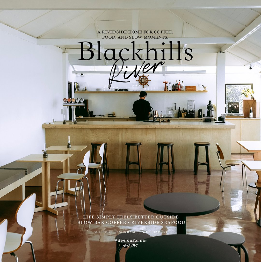 สายกาแฟอย่างเรา…จะพลาดได้ไง เมื่อรู้ว่า Blackhills River สาขาใหม่เพิ่งเปิดสดๆ ร้อนๆ ตัวร้านตั้งอยู่บนถนนพิบูลสงคราม เป็นคาเฟ่ที่เหมือนซ่อนตัวอยู่ริมแม่น้ำ นี่คือ สาขาที่ 2 ของร้านกาแฟมู้ดดีจากย่านลาดพร้าว ที่คราวนี้ย้ายฟีลมาอยู่ โลเคชันริมน้ำที่นนทบุรี บอกเลยว่าบรรยากาศดี วิวว้าวมาก