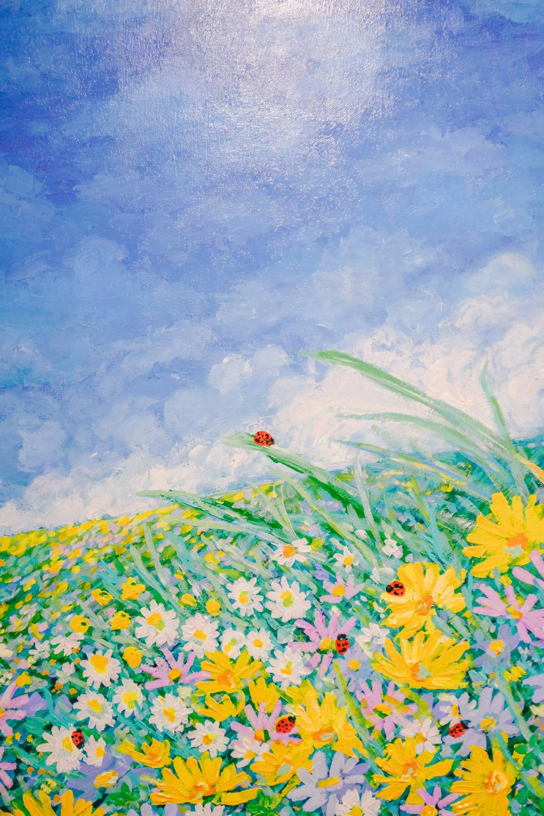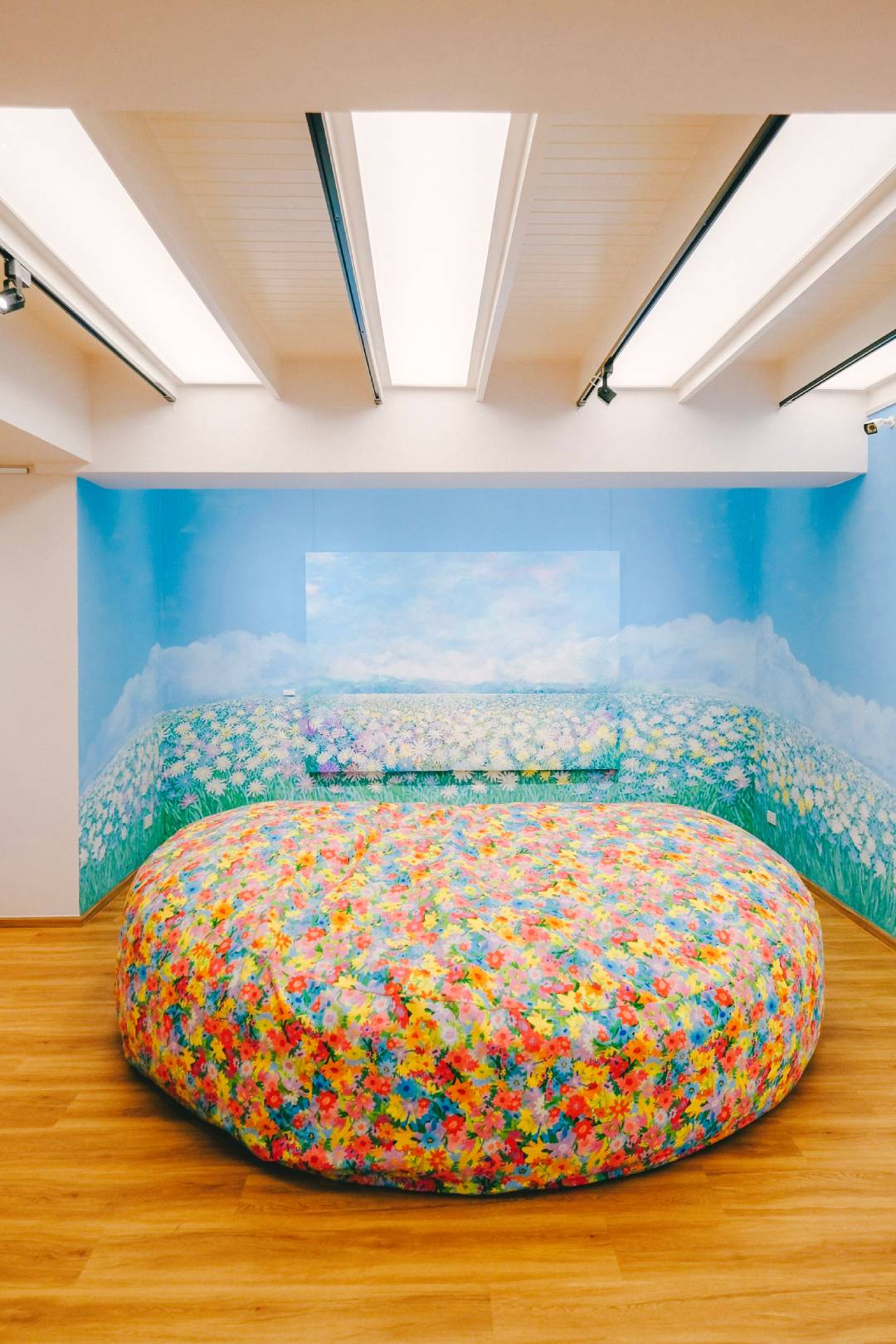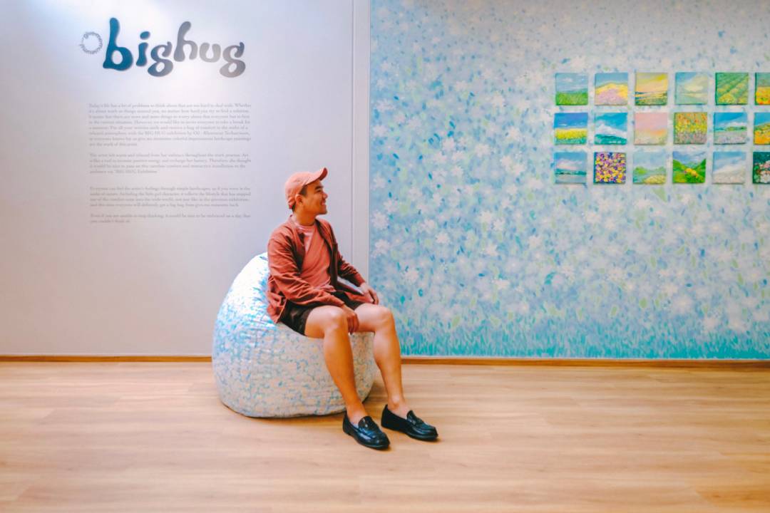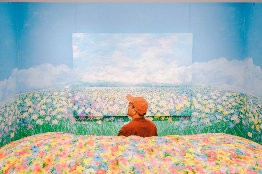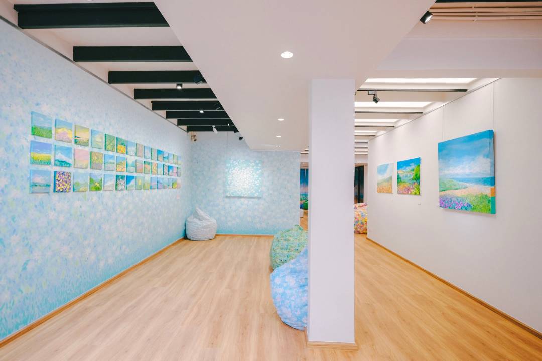 โดยงานนี้จัดอยู่ในแกลลอรี่สีขาว สไตล์มินิมอล KICHgallery ซึ่งบรรยากาศภายในมีงานอาร์ตที่ถูกรังสรรค์โดยศิลปิน ถูกจัดวางไว้ภายในห้องสีขาว สบายตา สบายใจ โดยนอกจากผลงาน installation แล้วภายในแกลลอรี่ยังให้ทุกคนสามารถนั่งถ่ายรูปกับ Beanbag นุ่มฟูที่คุมธีมสีสันเป็นลวดลายดอกไม้ เป็น interactive art ที่ถ่ายทอดพลังบวก ช่วยฮีลใจสำหรับคนที่มาเยี่ยมชมเหมือนได้รับพลังงานดีๆธรรมชาติมาโอบกอดเลยล่ะครับ