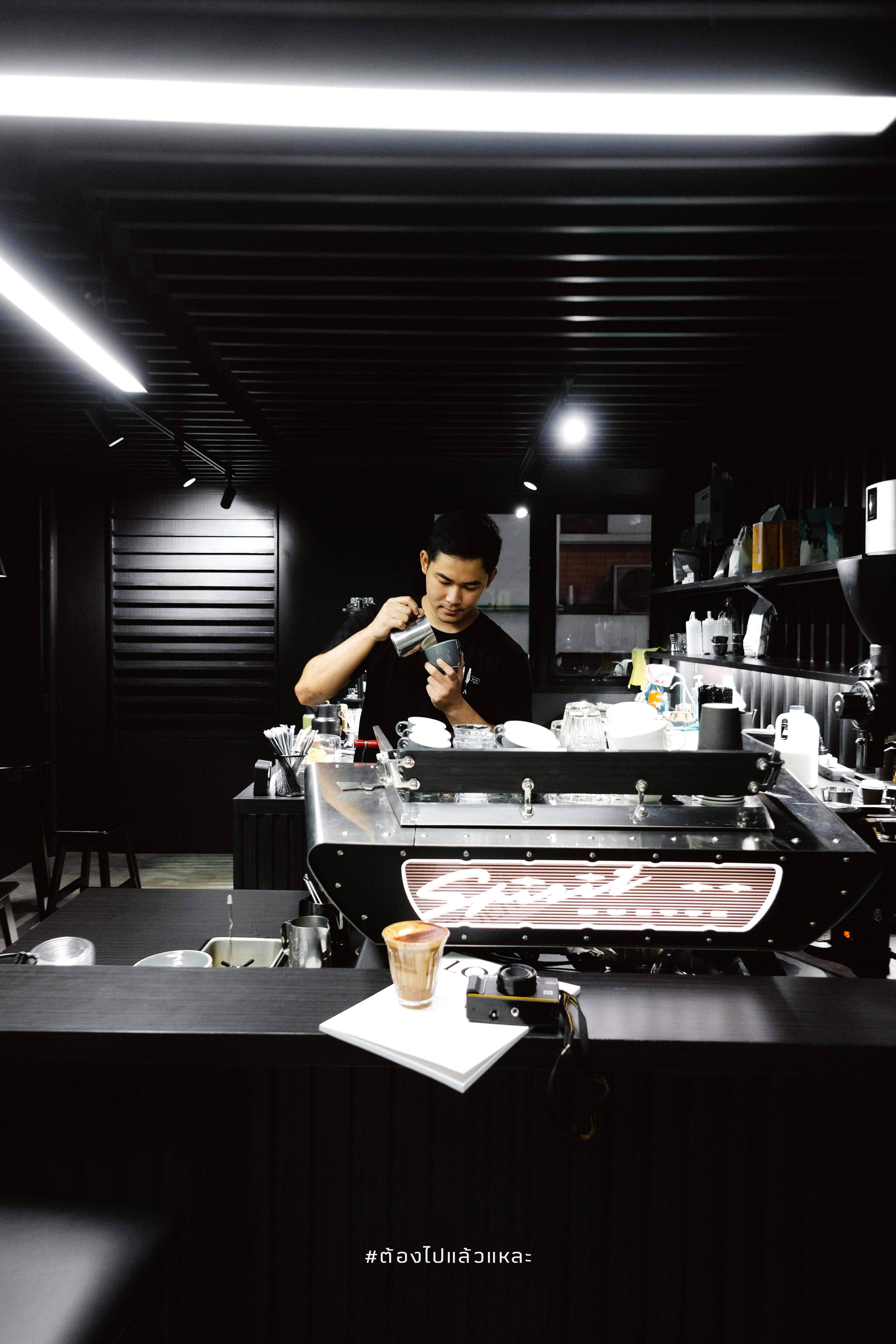 ภายในร้านตกแต่งเป็นโทนดำ เท่ห์ๆ ตัดกับแสงไฟ ที่ตกแต่งให้ดูมีมิติ ถึงภายในร้านจะโทนดาร์ค แต่สเน่ห์ของบาริสต้า ไม่ดาร์คเหมือนร้านแน่นอน เจ้าของร้านอัธยาศัยดี น่ารัก เป็นกันเองมากๆ ครับ หากใครได้พูดคุยด้วย แล้วจะหลงเสน่ห์ เหมือนการมานั่งดื่มกาแฟแล้วคุณได้เพื่อนใหม่ แลกเปลี่ยนประสบการณ์กลับไป และอยากกลับมาที่นี่อีกแน่นอนครับ