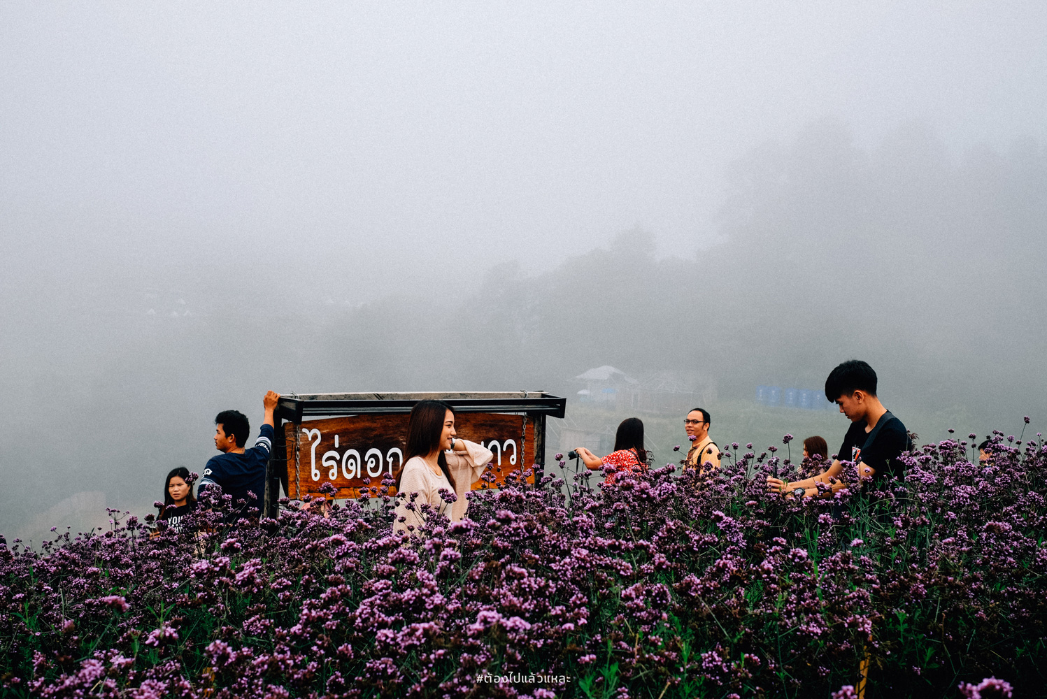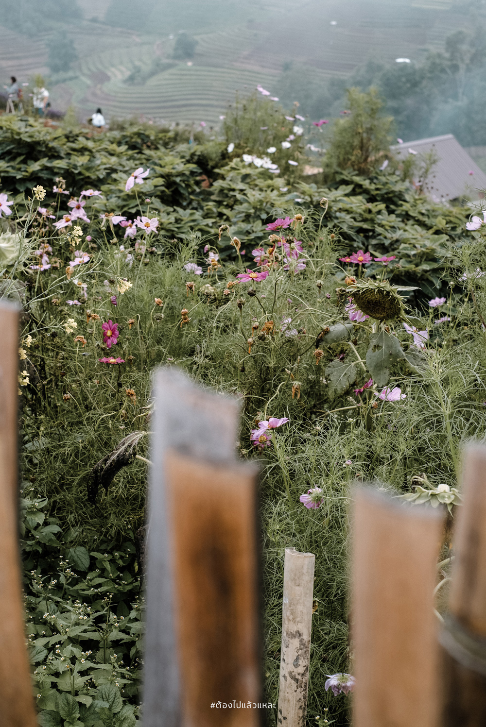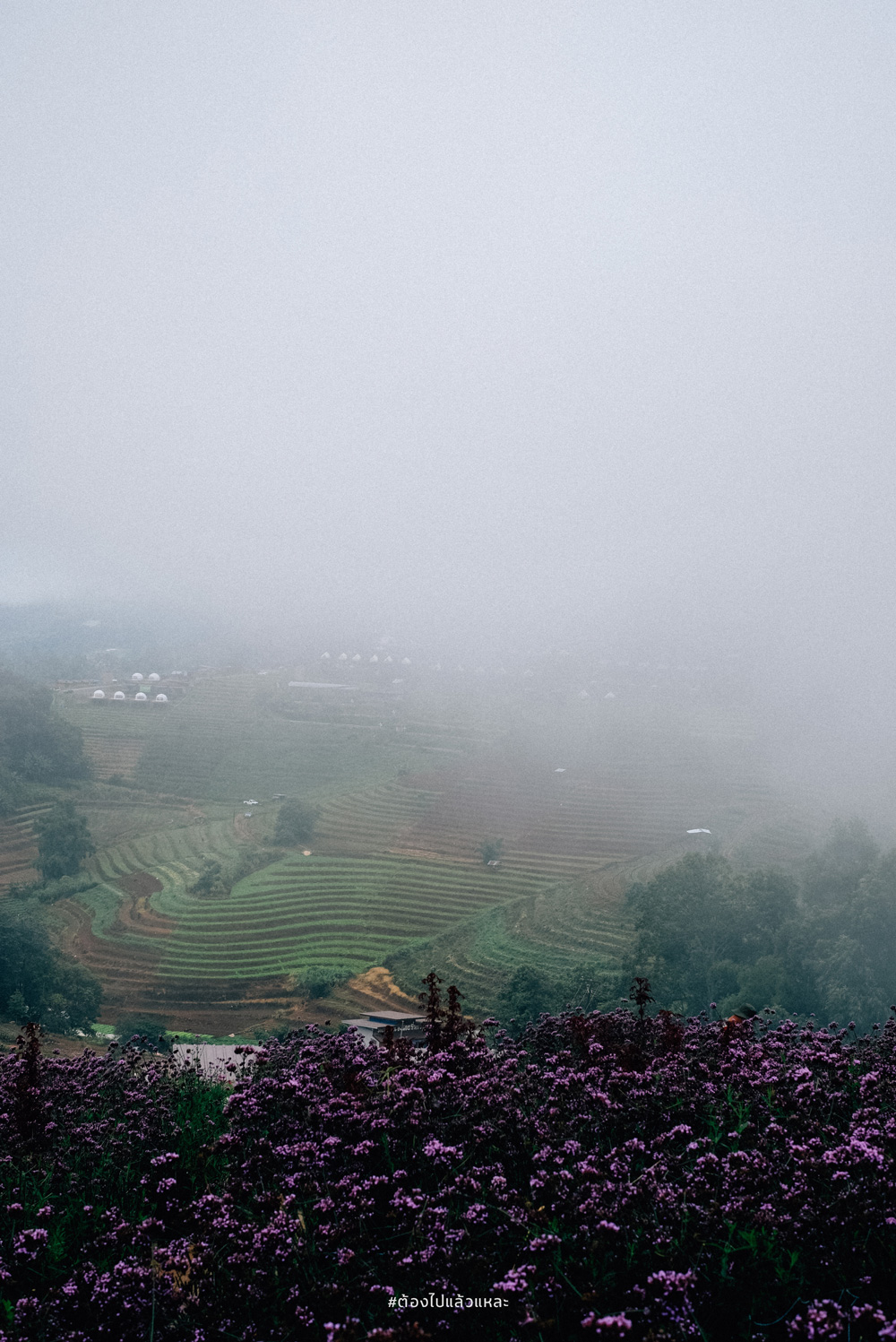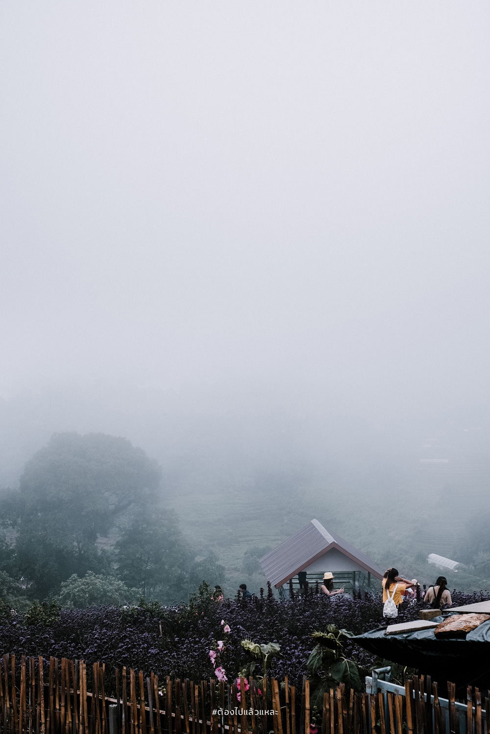 สำหรับแผนของวันที่ 2 คิดว่าออกแต่เช้าไปเก็บบรรยากาศบนดอยอีกรอบ แต่ก่อนขึ้นดอยขอแวะชิมกาแฟสักร้าน Transit Number 8 คือจุดแวะพักชิมกาแฟของเรา ร้านนี้มีเสน่ห์ คือคาเฟ่ สไตล์มินิมอล โทนขาว กับซาวน์เครื่องบิน เป็นอีกคาเฟ่สุดฮอตในเชียงใหม่ ตั้งอยู่ใกล้กับกองบิน 41 ซึ่งภายในร้าน มีเพดาน เหมือนโถง (ที่มองดูคล้าย) สนามบิน รู้สึกสบายโปร่งโล่ง มีมุมให้ถ่ายรูปเยอะมากๆ ส่วนเรื่องกาแฟนั้น ที่นี่มีให้เลือกคั่วอ่อน หรือคั่วกลางได้ตามชอบ เราไปถึงร้านช่วงเช้าลูกค้ายังไม่แน่นมาก ช่วงที่ไปแอบเห็นว่าฝั่งตรงข้ามร้าน Transit Number 8 กำลังซุ่มทำร้านอีกร้านที่น่าจะปังเหมือนกัน ไว้คราวหน้าต้องมาแวะอีกรอบ เราหลงเสน่ห์อยู่ในร้าน Transit Number 8 นานพอสมควร ได้เวลามุ่งหน้าสู่ ม่อนแจ่ม ระหว่างทางฝนตกปรอยๆ คิดว่าไม่น่าจะมีคนมาเช้าแบบเรา ฝนตกถนนลื่น ใครขับรถมาระวังเรื่องทางลื่นกันหน่อย มาถึงม่อนแจ่ม บรรยากาศคือ สดชื่นด้วย ไอหมอก ที่มองไม่เห็นแม้วิวภูเขา ถ้าถามหาผู้คนก็คือเยอะมาก นี่ขนาดมาเช้าแล้วนะครับ คิดว่ารอเวลาอีกสักหน่อย หมอกก็ค่อยๆ จางลง อากาศดีมากๆ ชอบบรรยากาศช่วงหน้าฝน แต่ไม่ชอบพื้นแฉะๆ เตือนเพื่อนๆว่าเปลี่ยนรองเท้าด้วยนะครับ