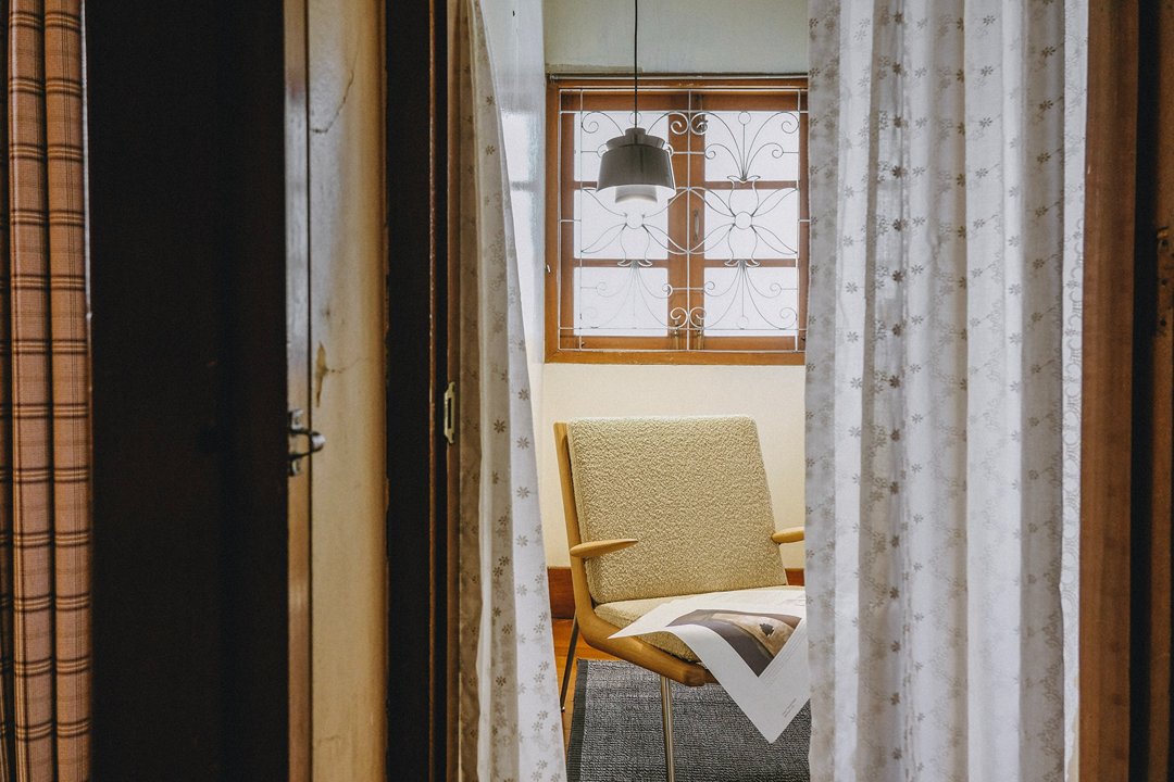 ทุกห้องคือแรงบันดาลใจ โคมไฟวางมุมพอดี โซฟาโทนอุ่น ๆ ตัดกับผนังเก่า เก้าอี้ดีไซน์เรียบแต่มีคาแรกเตอร์ เดินไปมุมไหนก็เหมือนกำลังเปิด Pinterest ในชีวิตจริง