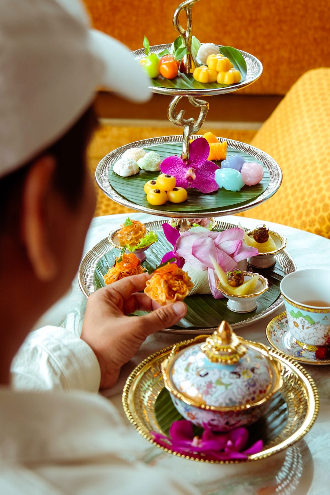 เพิ่มความฟีลไทยๆ ที่เป็นเอกลักษณ๋ไม่เหมือนใคร ด้วยบริการเช่าชุดไทยจาก Siam Costume จะใส่เดินเล่นหรือถ่ายรูปก็คือเก๋กรุบก่อนปิดท้ายด้วย Siam Afternoon Tea ที่เสิร์ฟขนมไทยสุดพรีเมียมคู่กับชาดอกไม้ ร้อนๆ ให้ฟีล royal สุดๆ หรือจะลองกาแฟไทยคราฟต์คู่กับขนมก็เข้ากันได้ลงตัวมากๆ