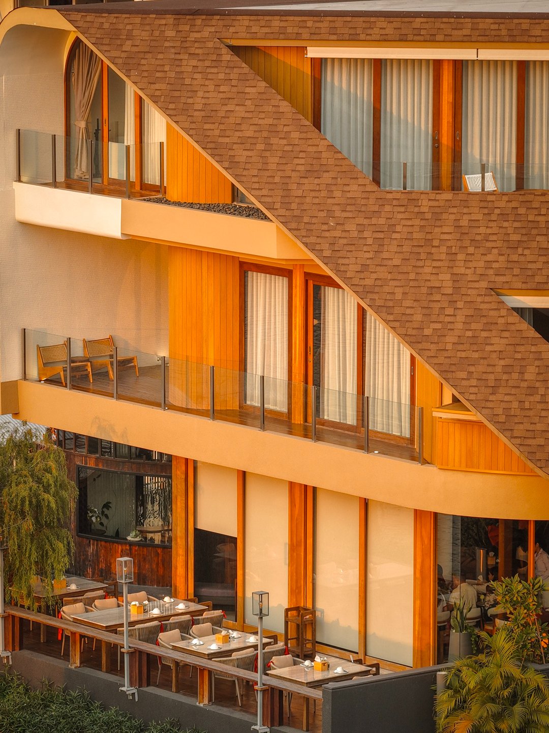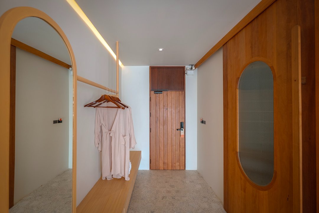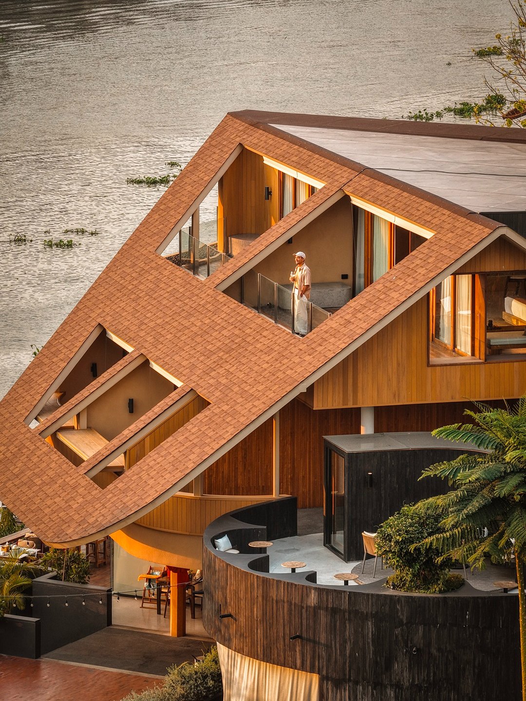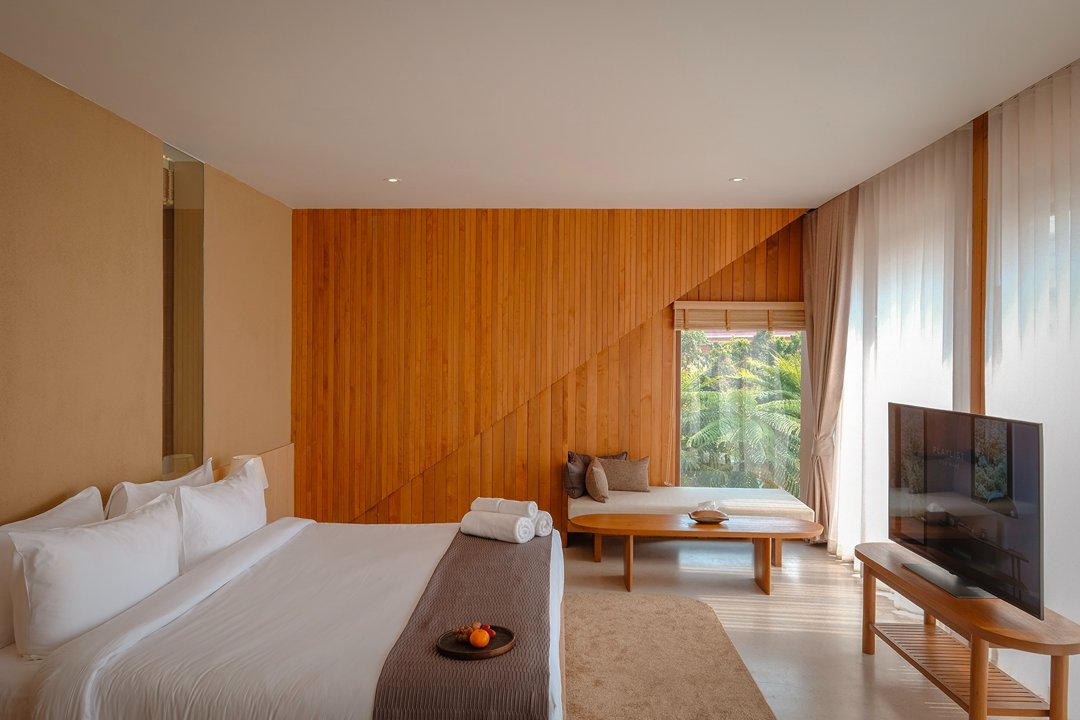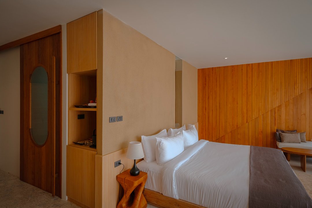 ที่นี่มีห้องพักเพียง 5 ห้องเท่านั้น สัมผัสแรกคือ “ความเงียบ” ไม่มีความวุ่นวาย ทุกห้องเป็นวิวแม่น้ำทั้งหมด โดดเด่นด้วยโครงสร้างอาคาร และ Facade ภายนอกสุดเก๋ สู่บรรยากาศ Slow Life ริมน้ำ แค่เปิดม่านก็ได้รับแสงธรรมชาติและวิวสุดจึ้งทุกห้อง ภายในห้องตกแต่งสไตล์เรียบง่าย คุมโทนด้วยสึโทนไม้ แต่มีดีเทลจัดวางเฟอร์จิเจอร์ได้แบบลงตัวทุกมุม ช่วงบ่ายคือแสงสวยมากกก แสงอุ่นๆ สะท้อนผิวน้ำ กับการ Take Time นั่งมองฟ้าดื่มด่ำ sunset ท้องฟ้าที่ค่อยไล่เฉดส้ม ชมพู มองสายน้ำที่ตกกระทบกับแสงพระอาทิตย์แบบ soft ๆเป็นความสวยที่ไม่ต้องใส่ฟิลเตอร์ บอกเลยมู้ดดีสุดๆ
