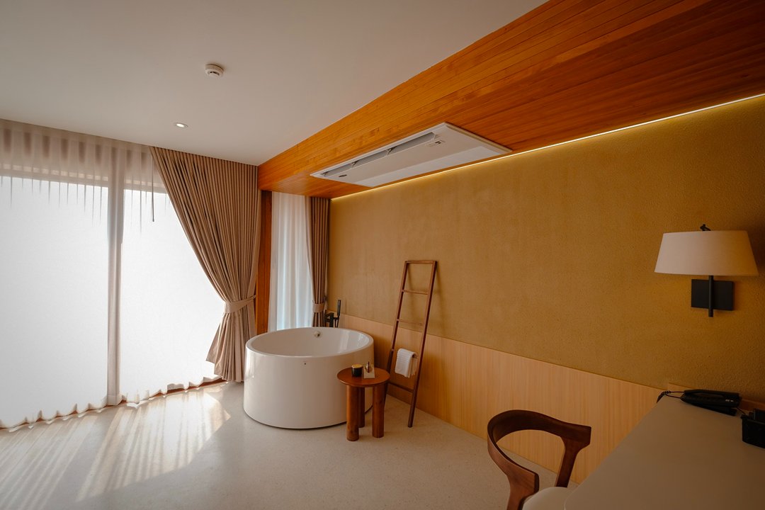 ไฮไลต์ของห้องนี้คืออ่างอาบน้ำที่สามารถวิว 180 องศา แช่น้ำอุ่น ๆ แล้วมองแม่น้ำไหลผ่าน ได้จากภายในห้อง เป็นการพักผ่อนที่ฮีลใจมากๆ