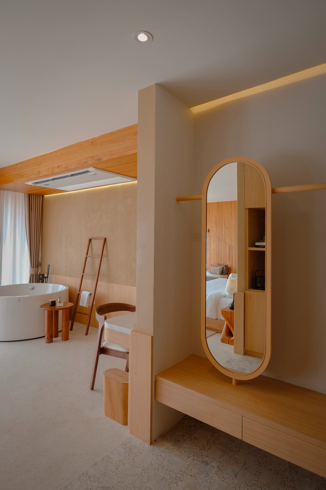 ส่วนตัวชอบคอนเซ็ปต์ของที่นี่มากๆ Slow Living by the River of Craft ออกแบบให้เป็นพื้นที่ที่ชุบชีวิตงานช่างอยุธยา ผ่านดีไซน์ที่ผสมความร่วมสมัย กับร่องรอยของกาลเวลาได้อย่างกลมกลืน เลือกใช้วัสดุธรรมชาติ เฟอร์นิเจอร์ไม้ทำมือ เป็นดีเทลเล็กๆ ที่ดูเรียบง่าย แต่เต็มไปด้วยความตั้งใจ ทุกอย่างถูกออกแบบได้อย่างลงตัว ทั้งมุมแสง การคุมโทนสีและบรรยากาศ ที่ค่อยๆ เปลี่ยน Vibes ไปตามช่วงจังหวะของวัน