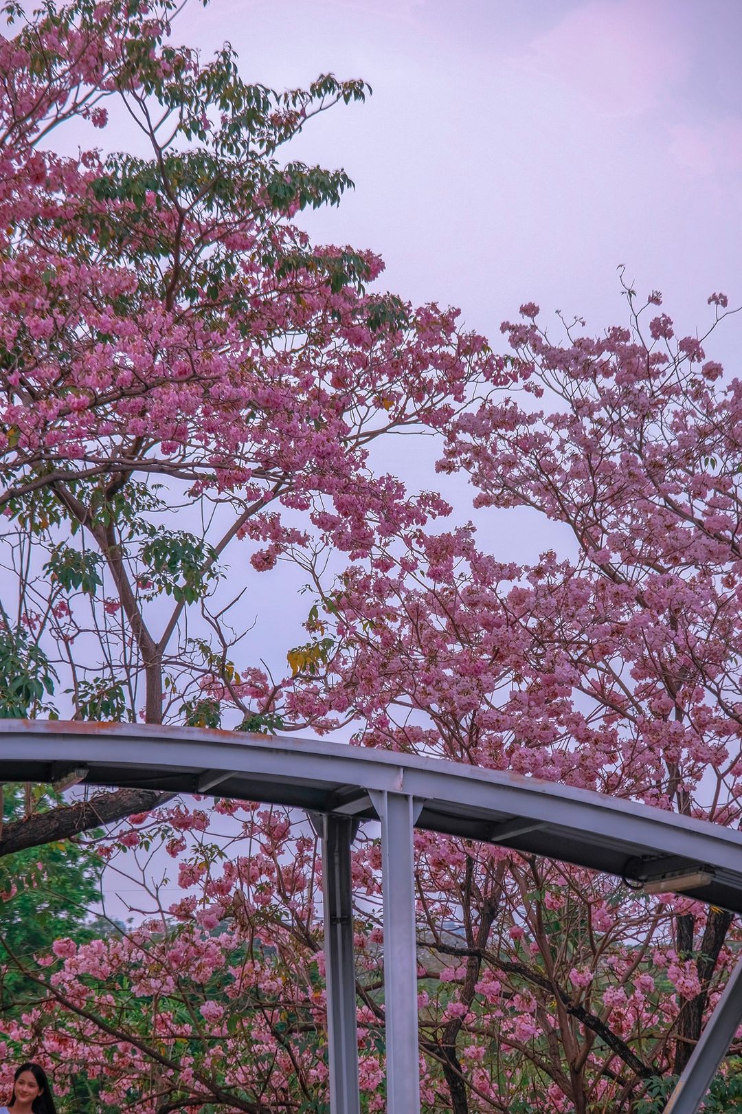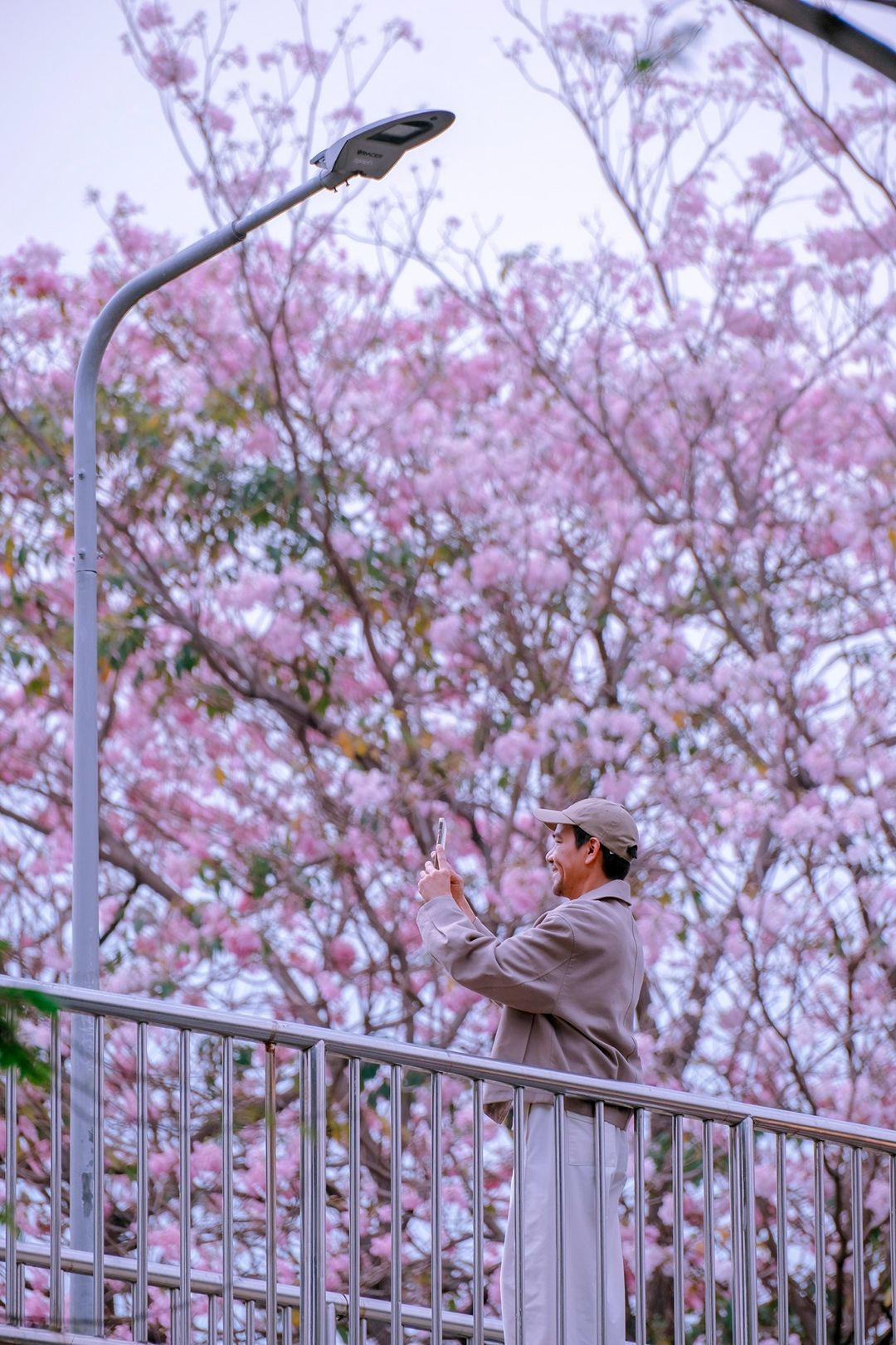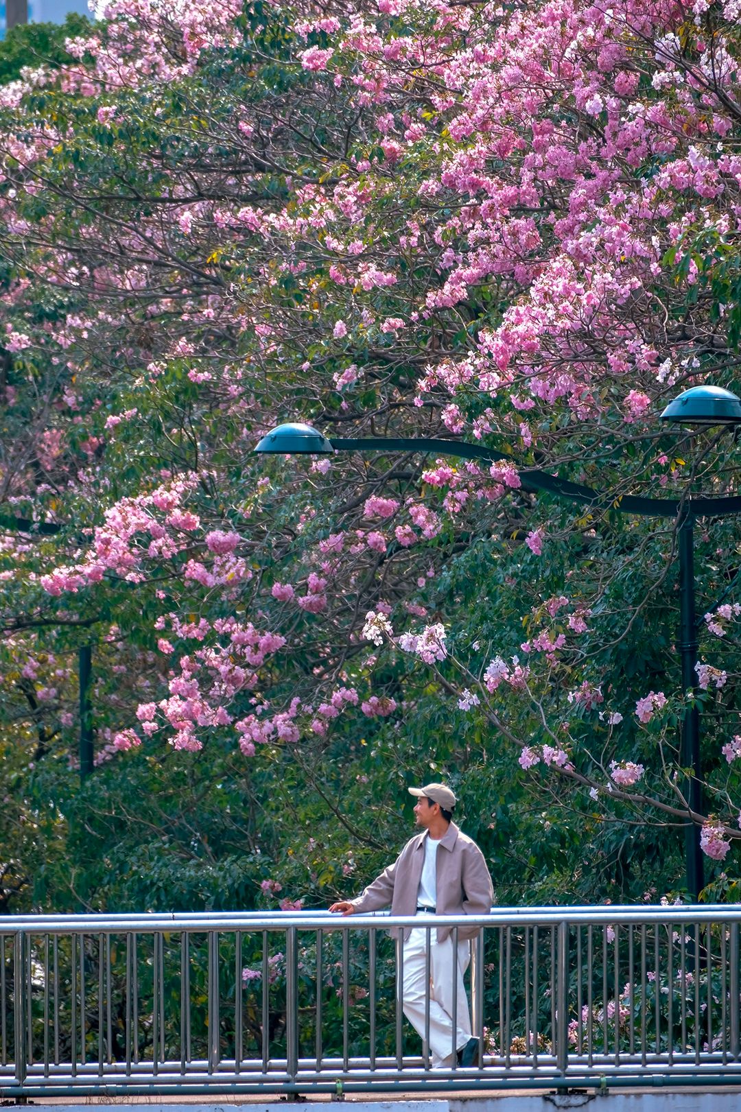 ช่วงสาย ๆ ลมพัดเบาๆ กลีบดอกปลิวร่วงตามแรงลม มองด้วยตาเนื้อคือสวยมากกกกก พื้นถนนจะมีพรมชมพูบางๆ ให้ถ่ายภาพมุมก้ม หรือจะยืนสะพานลอย ก็ปังสุด