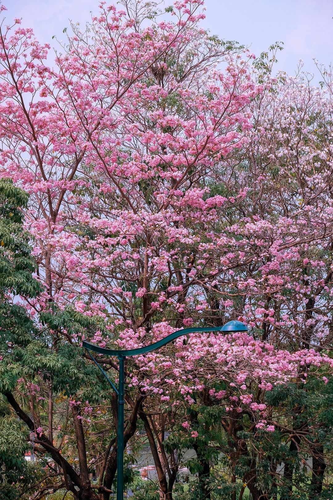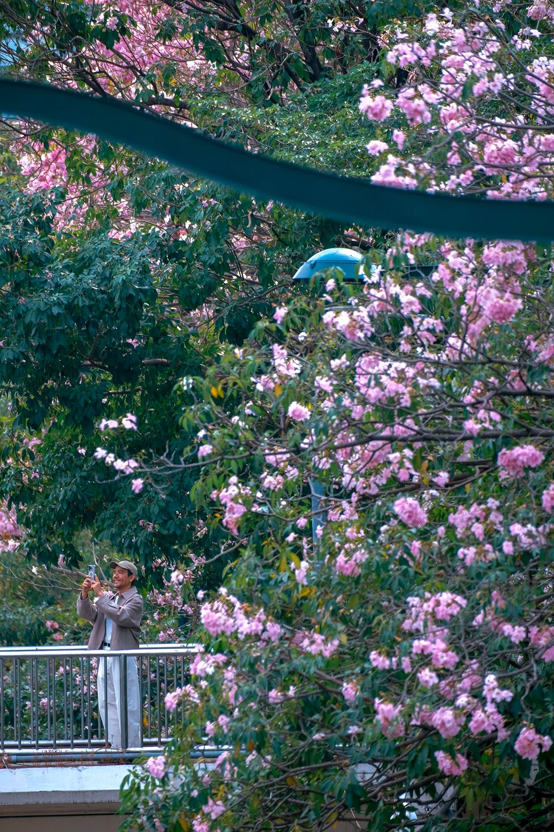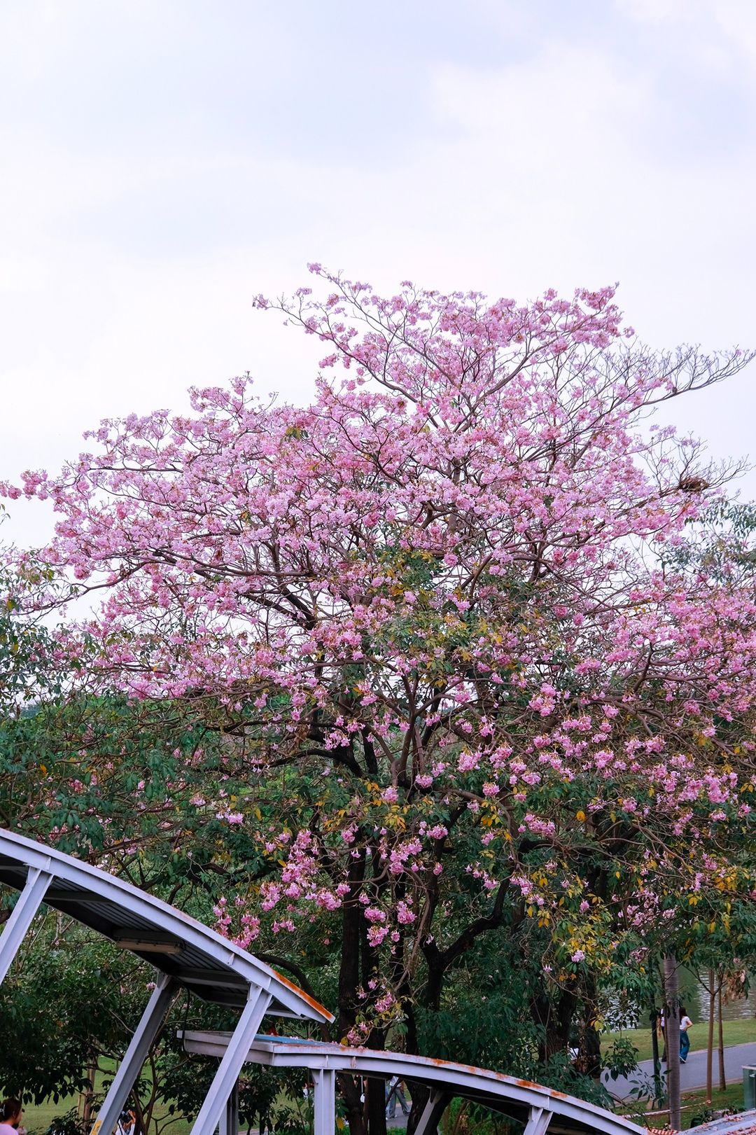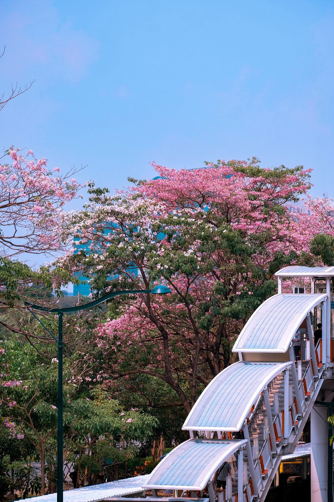 ช่วงสาย ๆ ลมพัดเบาๆ กลีบดอกปลิวร่วงตามแรงลม มองด้วยตาเนื้อคือสวยมากกกกก พื้นถนนจะมีพรมชมพูบางๆ ให้ถ่ายภาพมุมก้ม หรือจะยืนสะพานลอย ก็ปังสุด