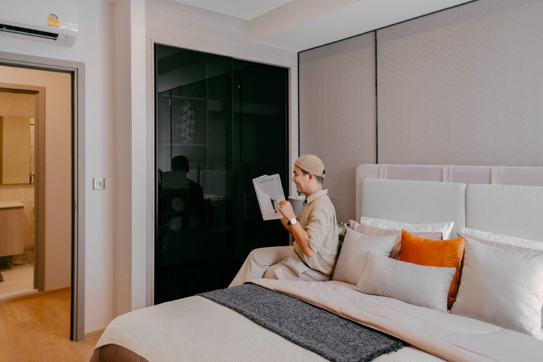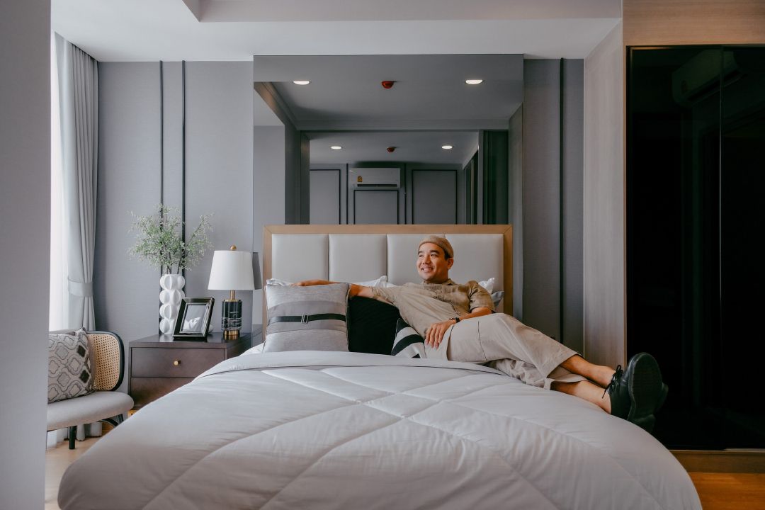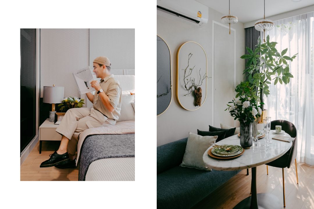 เรามีโอกาสได้เข้าไปดู Type ห้องทั้งหมด 3 แบบทั้ง 1 Bedroom 1 Bedroom+ และ 2 Bedroom ซึ่งทุกห้องถูกจัดวางพื้นที่ใช้สอยได้อย่างลงตัว มีการออกแบบระเบียงสามเหลี่ยมโดยยื่นออกมาจากตัวอาคารให้สามารถรับแสงธรรมชาติ และไม่บดบังทัศนียภาพของแต่ละห้อง ถูกออกแบบให้มองเห็นวิวและต้นไม้เขียวขจีได้รอบจากภายนอกได้แบบเต็มๆนอกจากนี้ Facility อื่นก็มีให้ครบทั้ง Rooftop Garden, EV Charger, Putting Green ไว้รองรับ Life Style ของคนรุ่นใหม่อีกด้วยนะครับ