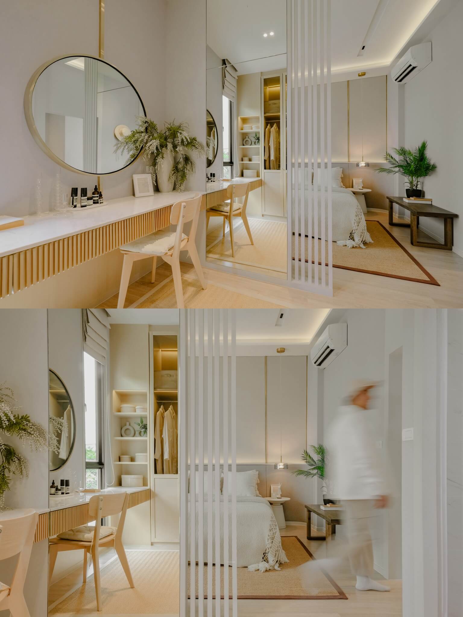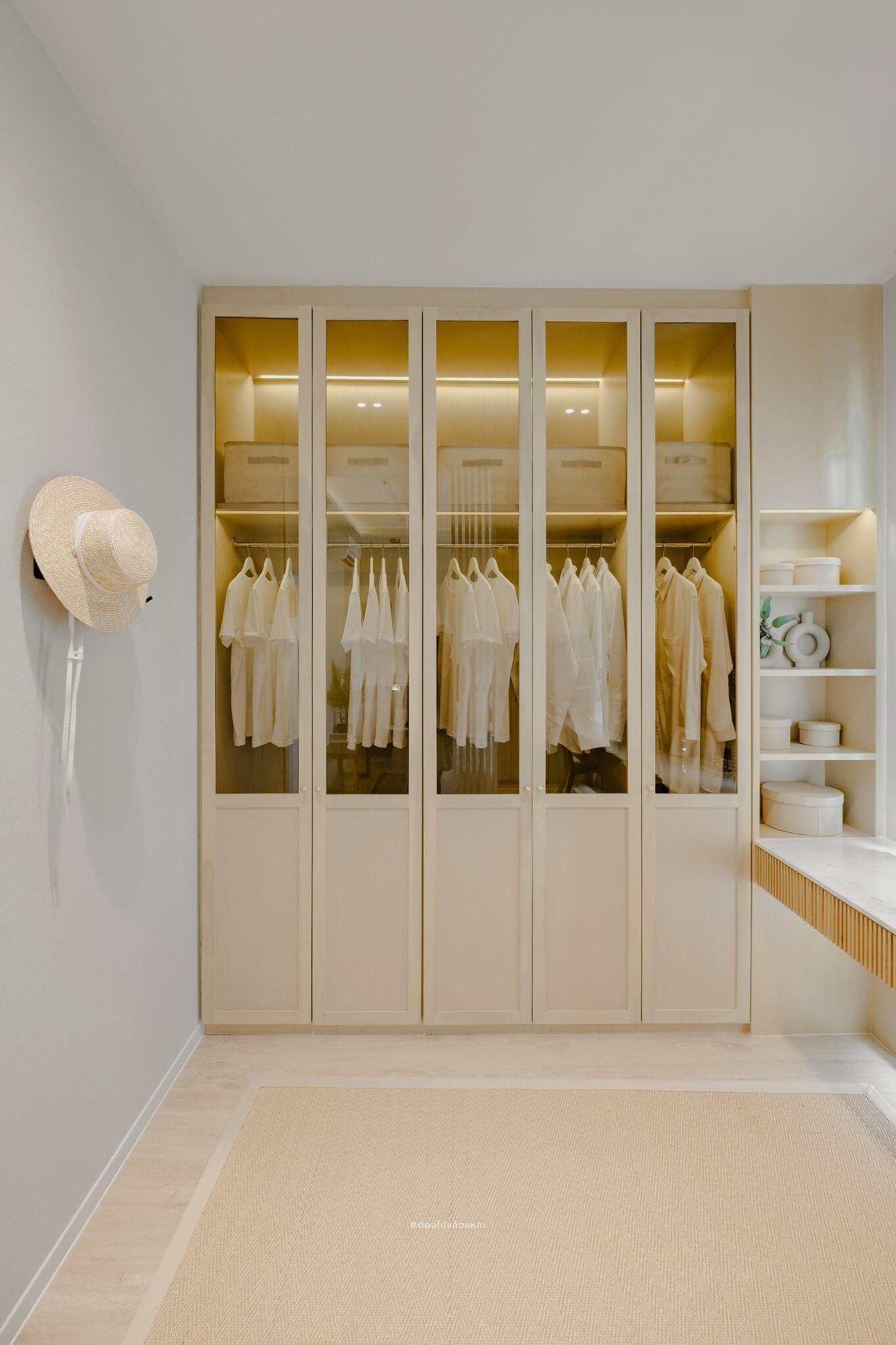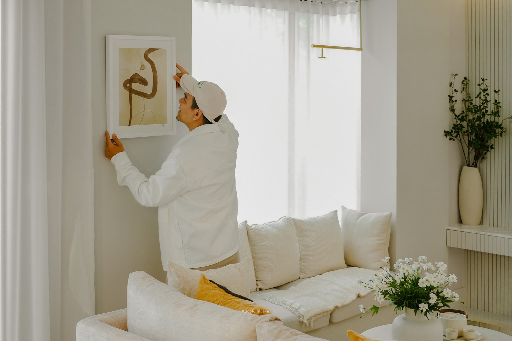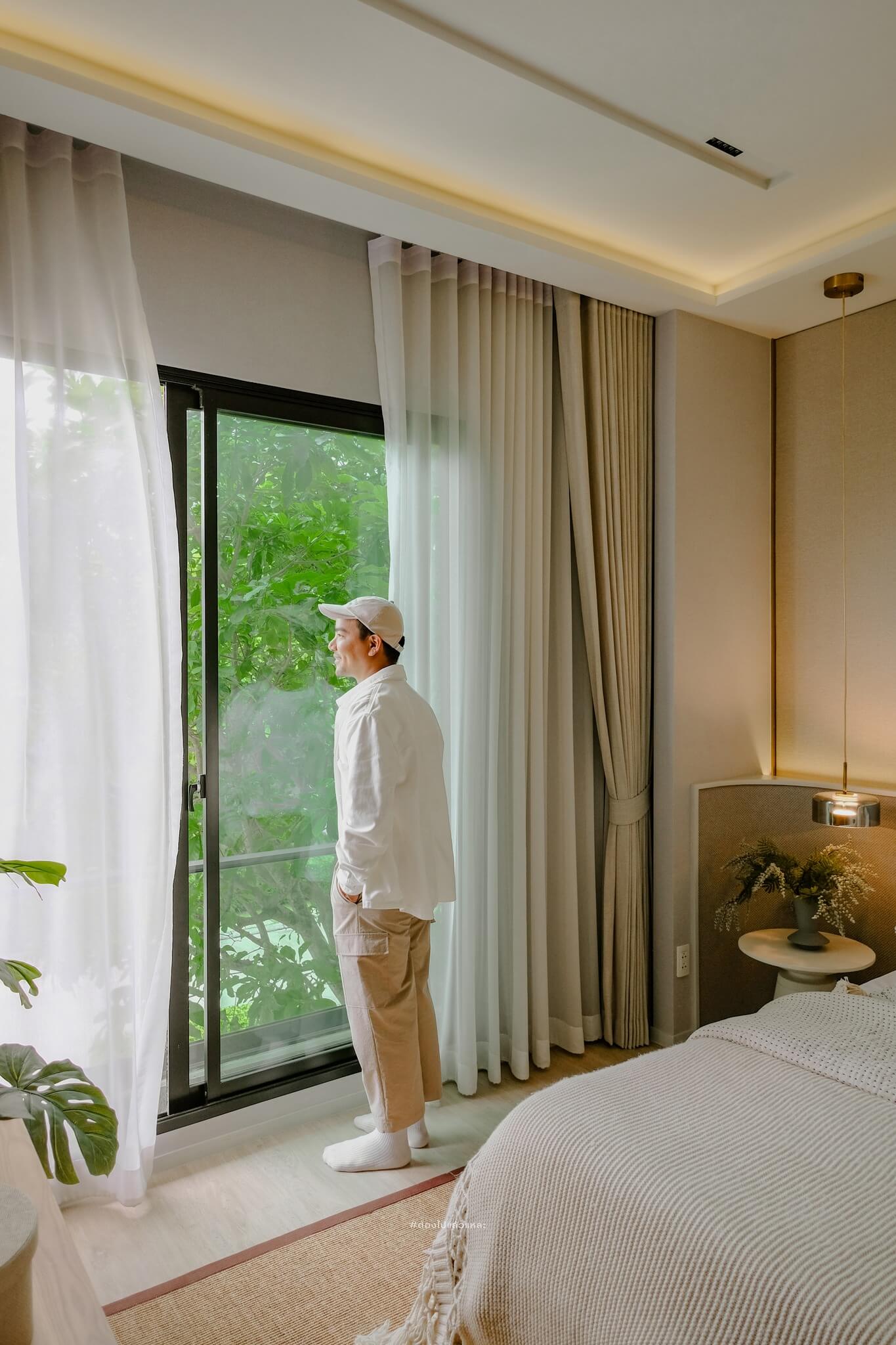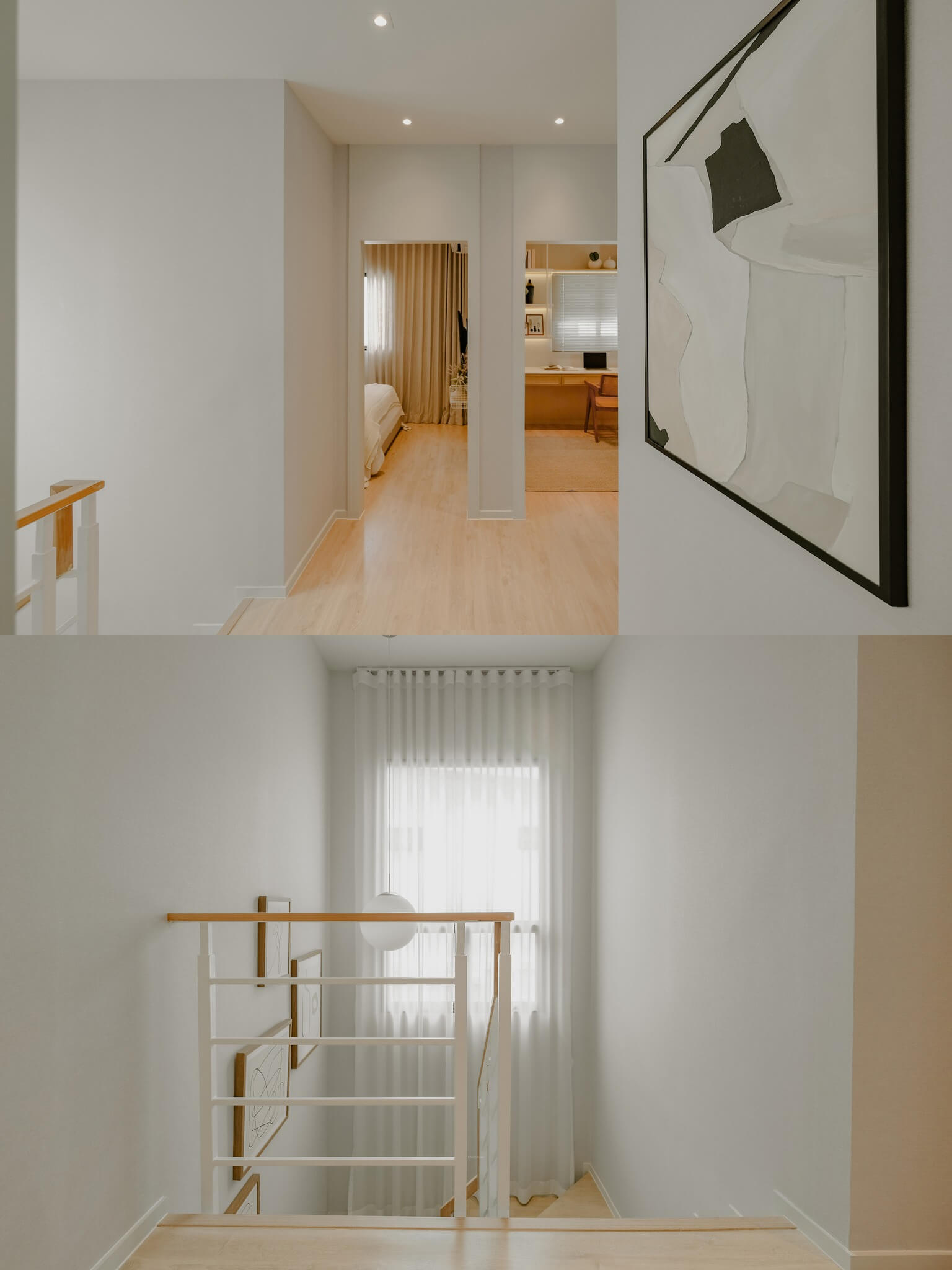 ภาพแรกที่เราเดินเข้าไปในบ้าน เรามองเห็นการให้ความสำคัญของการออกแบบการใช้ชีวิตที่บ้านมากๆ เรียกว่าทุกพื้นที่ใช้สอยเป็นฟังก์ชั่นที่ใช้งานได้จริง และตอบโจทย์กับไลฟ์สไตล์คนรุ่นใหม่ ที่อยากมีบ้านและเริ่มต้นสร้างครอบครัวมากๆ เราชอบการตกแต่งที่มีความคุมโทน สีขาว ครีม เป็นความมินิมอล เรียบง่ายแต่ดูดีและลงตัวเลยครับเพิ่มกลิ่นอายความอบอุ่นให้กับห้องด้วยเฟอร์นิเจอร์ไม้ และที่เราชอบมากที่กลางพื้นที่ของบ้าน โครงการเลือกใช้กระจก Bay Window ที่เน้นช่องแสงทำให้แสงจากธรรมชาติสาดส่องเข้ามา มันทำให้มู้ดในบ้านเต็มไปด้วยความอบอุ่นไป ช่วยทำให้เราผ่อนคลายมากขึ้นด้วย ลองนึกภาพตามหากเราได้ใช้ชีวิตที่นี่ คงอบอวลไปด้วยความสุขและรู้สึกผ่อนคลายได้อย่างแท้จริง