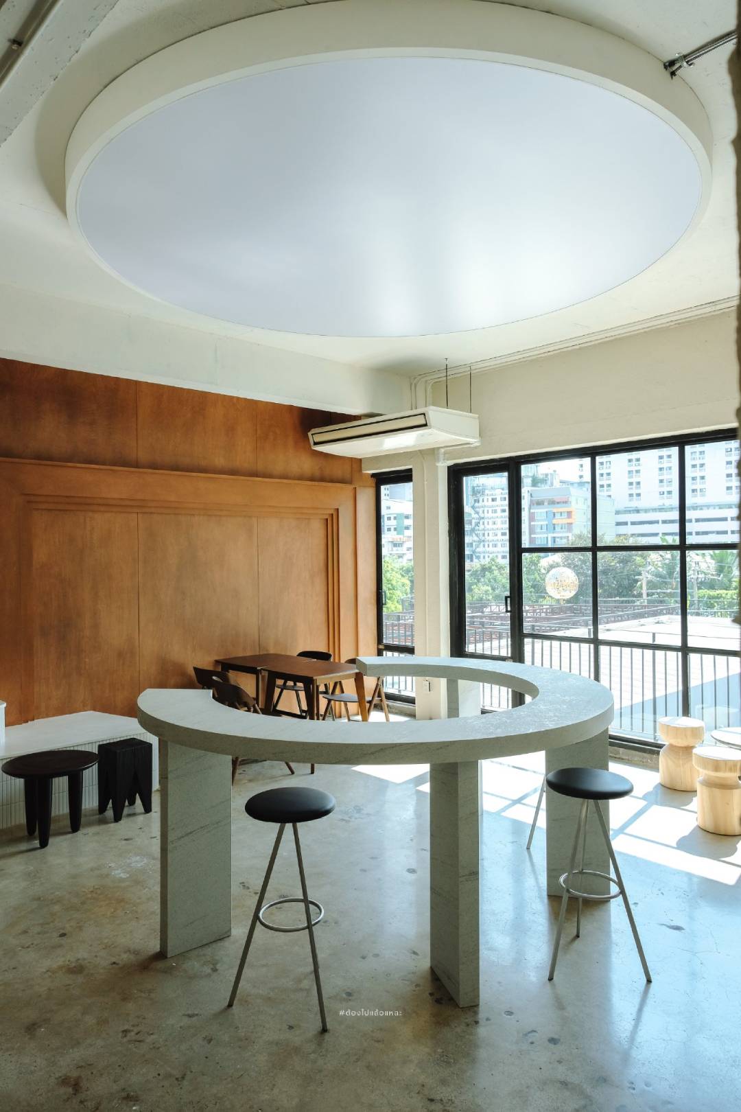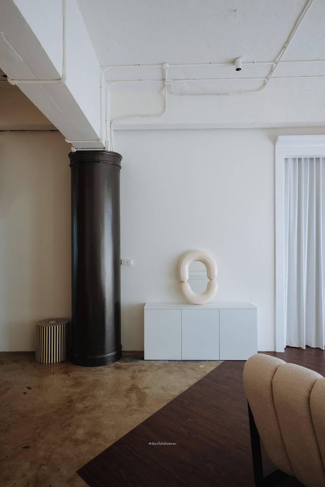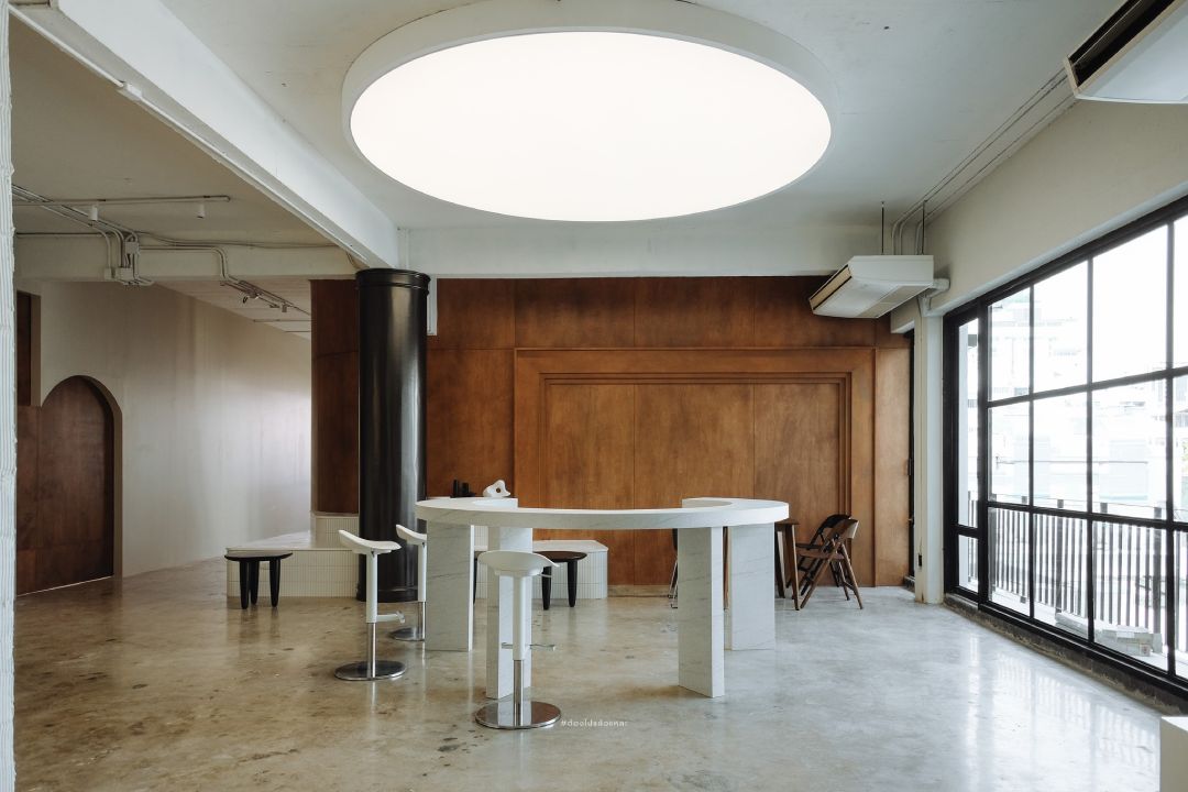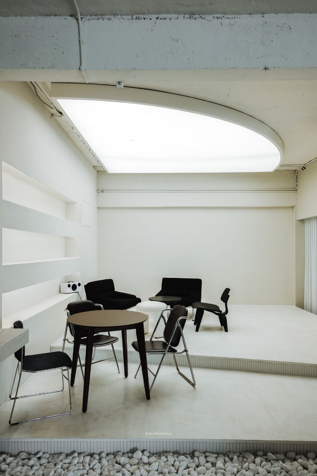 ภายในร้านมีพื้นที่กว้างขวาง ออกแบบตกแต่งให้มีความโปร่งโล่งสบายตา มีแสงธรรมชาติลอดผ่านเข้ามาแบบรอบด้านโดยเฉพาะห้องที่เป็นพื้นที่ของสตูดิโอคือแสงสาดเข้าคือดีงามมากๆ สำหรับใครที่ตกหลุมรักในการแต่งสไตล์นี้ ต้องปลาบปลื้มแน่ๆ ด้วยความคุมโทนของห้อง ที่เน้นแบบเรียบง่ายด้วยโทนสีขาวและเทา บรรยากาศสบายๆ ชิลๆ มากๆเลยครับ