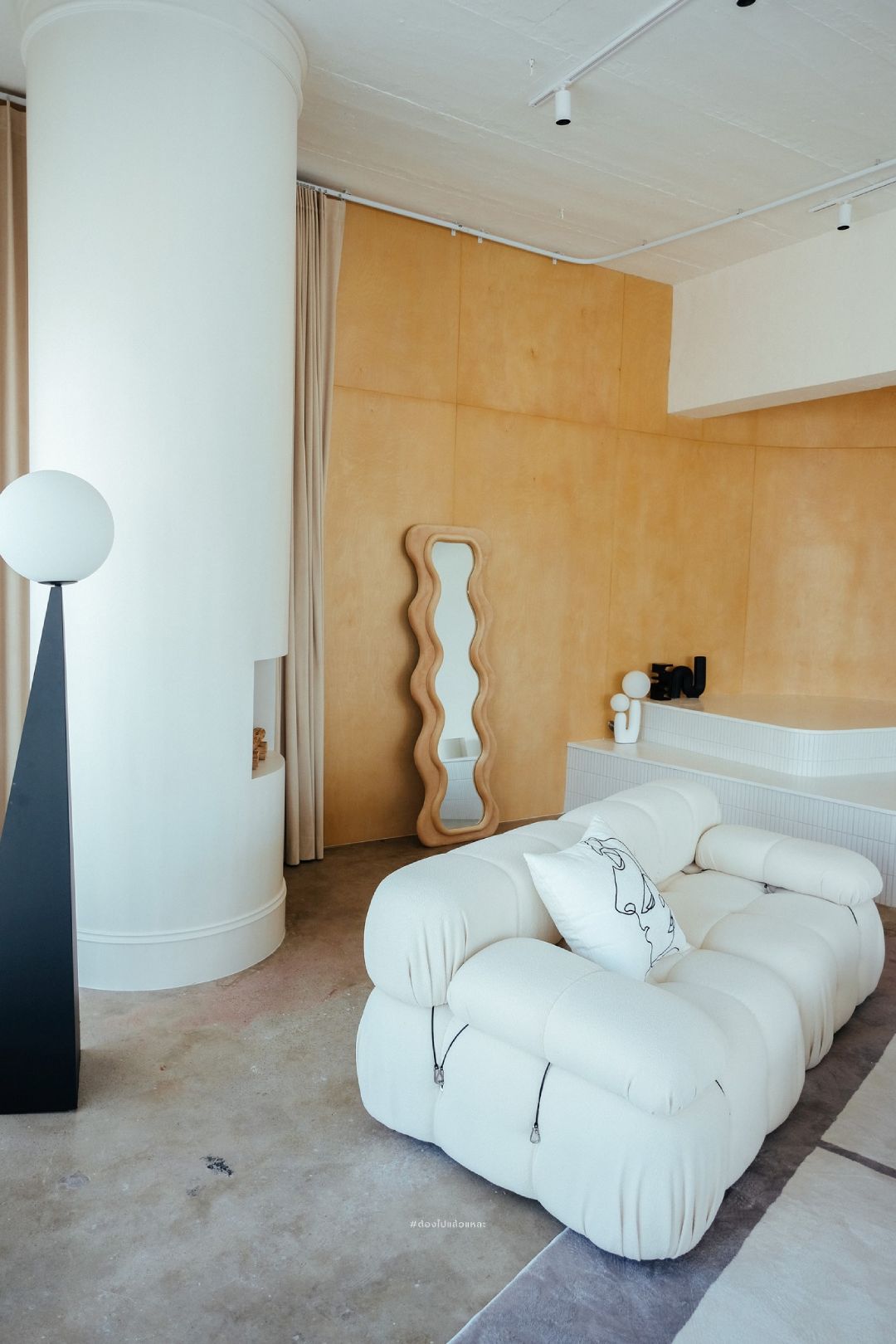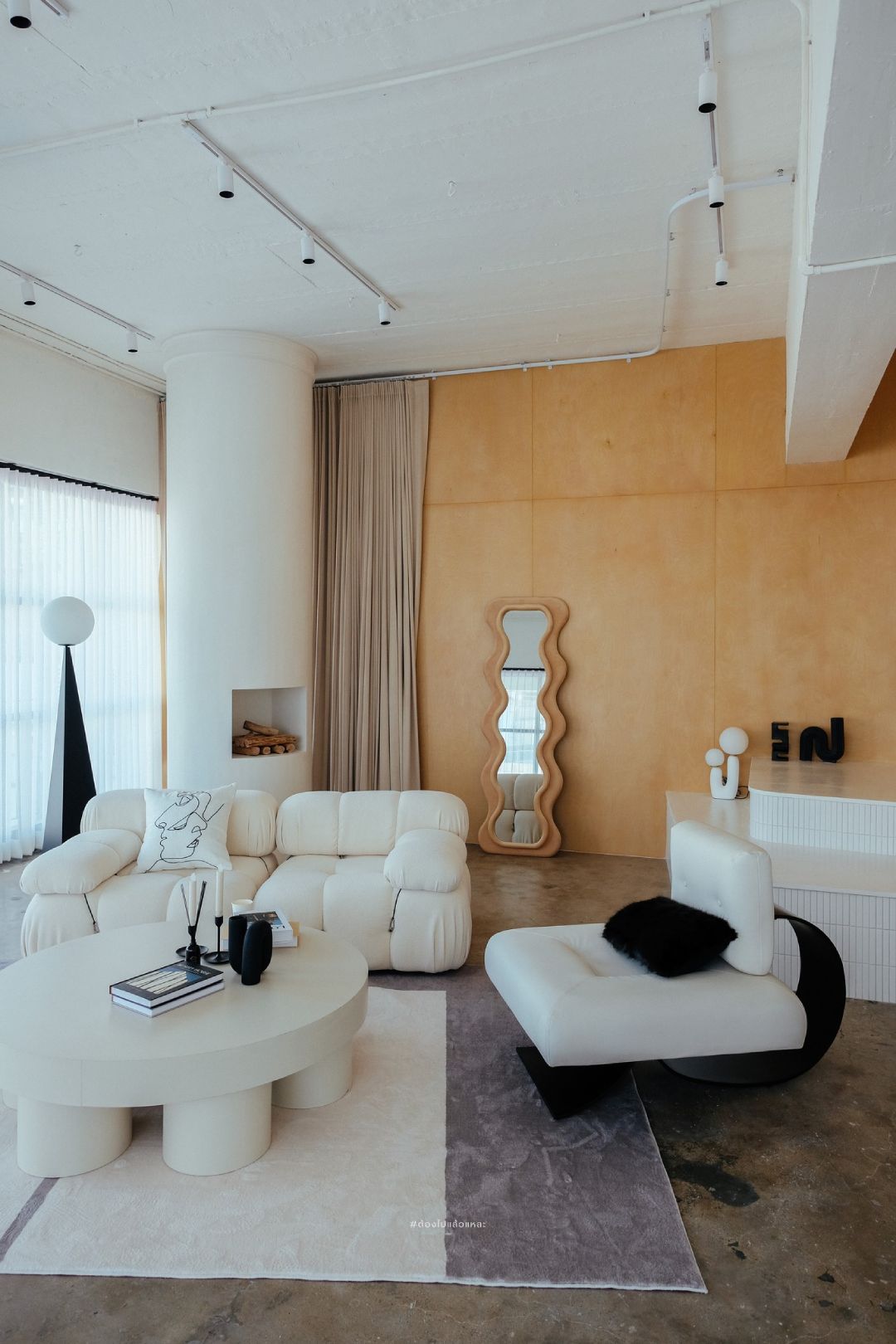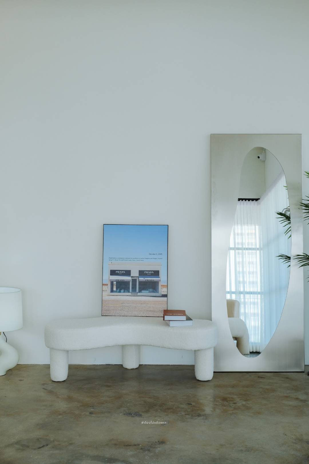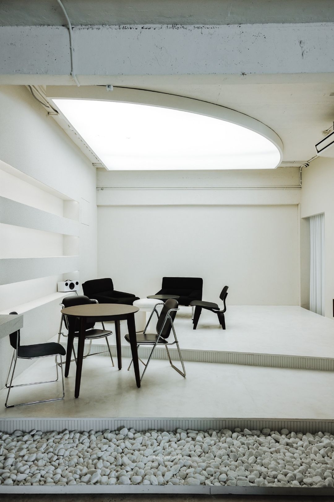 ภายในร้านมีพื้นที่กว้างขวาง ออกแบบตกแต่งให้มีความโปร่งโล่งสบายตา มีแสงธรรมชาติลอดผ่านเข้ามาแบบรอบด้านโดยเฉพาะห้องที่เป็นพื้นที่ของสตูดิโอคือแสงสาดเข้าคือดีงามมากๆ สำหรับใครที่ตกหลุมรักในการแต่งสไตล์นี้ ต้องปลาบปลื้มแน่ๆ ด้วยความคุมโทนของห้อง ที่เน้นแบบเรียบง่ายด้วยโทนสีขาวและเทา บรรยากาศสบายๆ ชิลๆ มากๆเลยครับ