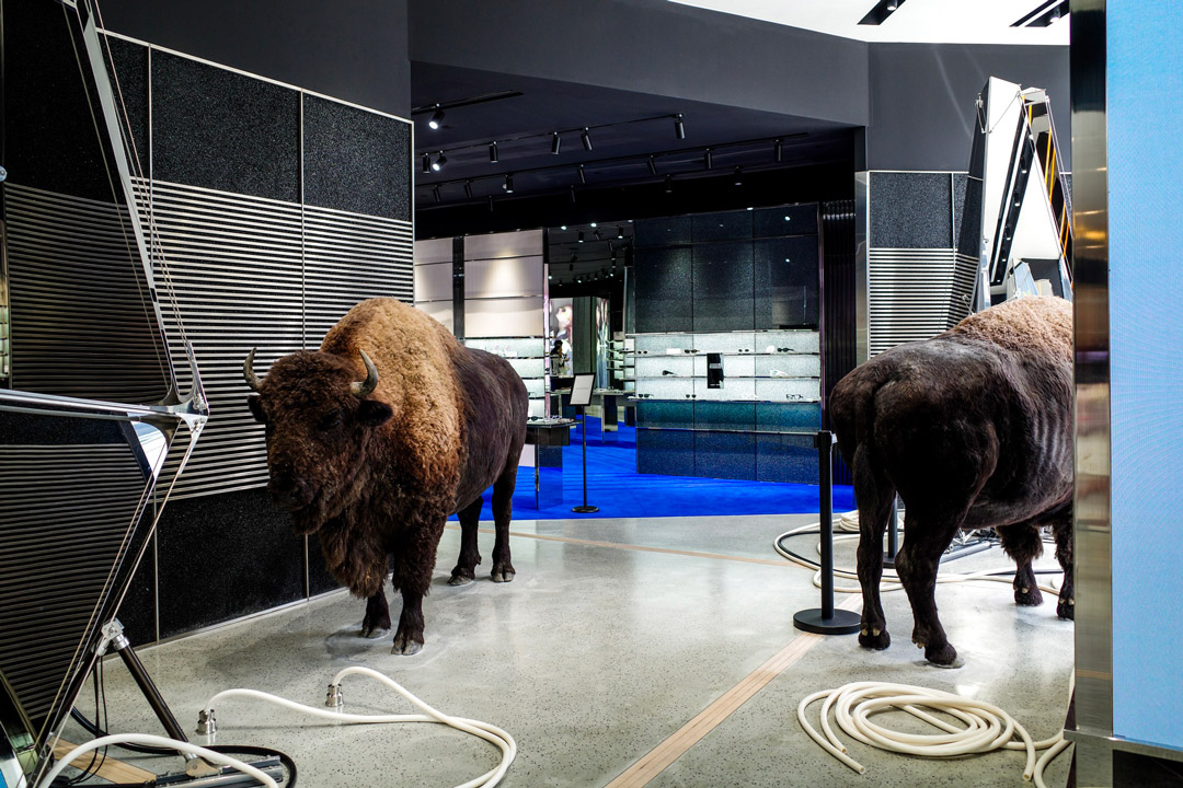 ความล้ำสุดเวอร์ตอนนี้ต้องยกให้ Gentle Monster แบรนด์แว่นตาสุดป๊อปที่ฮอตฮิตของเหล่าเซเลปท์และคนดังทั้งหลายจากกรุงโซล ประเทศเกาหลี ซึ่งตอนนี้ได้บินเปิดสาขาแรกในเมืองไทยแล้วทุกคน เชื่อว่าสายแฟตัวแม่ทั้งหลาย ต้องตาร้อน อยู่ไม่ติดแน่ๆ เพราะความปังของแบรนด์นี้มีแว่นตาเก๋ๆ ให้เลือกซื้อตามกันหลายแบบแน่นอน วันนี้เรามีโอกาสได้เข้าไปเยี่ยมชม อัพเดทสินค้าใน shop มาฝากทุกคนล๊าวว ซึ่งแบบมีเยอะมาก สวยและเก๋ทุกแบบ มีหลายรุ่นที่สามารถซื้อตาม Jackson Wang, ลิซ่า BLACKPINKได้จาก Shop เลยครับ มาพร้อมหลากหลายคอลเล็กชัน ไม่ว่าจะเป็น Gentle Monster BOLD Collection หรือจะเป็นคอลเล็กชัน Gentle Monster x Maison Margiela ที่ฮิตกันทั่วโลก ซึ่งได้ John Galliano มาร่วมดีไซน์ให้ รวมถึงเดือนกันยายนนี้จะออกแว่นสุดเอ็กซ์คลูซีฟในชื่อรุ่น Bangkok Limited อีกด้วยถือว่าเป็นแฟลกชิปสโตร์แห่งแรกของกรุงเทพฯ ที่มีพื้นที่ขนาดถึง 340 ตารางเมตร พร้อมดีไซน์อันเป็นเอกลักษณ์ไม่เหมือนที่ไหนอย่างแน่นอน ตัว Shop มีความสวยล้ำ ตกแต่งด้วยสไตล์ที่ให้ความรู้สึกเสมือนเดินอยู่ในอาร์ตแกลเลอรี่แบบไฮเปอร์เรียลลิซึ่ม เป็น Curated Creative Space นำเอาฝูงควายไบซันขนาดใหญ่ที่กระพริบตา กระดิกหางไปมาเหมือนมีชีวิต มาไว้ใน Shop ถึง 3 ตัว, มีแท่นหินสีขาวขนาดใหญ่ในรูปทรงหุ่นยนต์แมงมุม อีกหนึ่งไฮไลท์ คือมุมถ่ายรูปด้านข้างหน้ารูปปั้นดวงตาที่ขยับได้ มุมยอดฮิตอลังการสุดๆ มันเก๋แปลกตายืนหนึ่งไม่แพ้ shop ที่เกาหลีเลยครับ นำเอาการผสมผสานเรื่องราวของศิลปะ แฟชั่น ดีไซน์ และเทคโนโลยีเข้าด้วยกันได้อย่างเก๋ไก๋สุดๆ