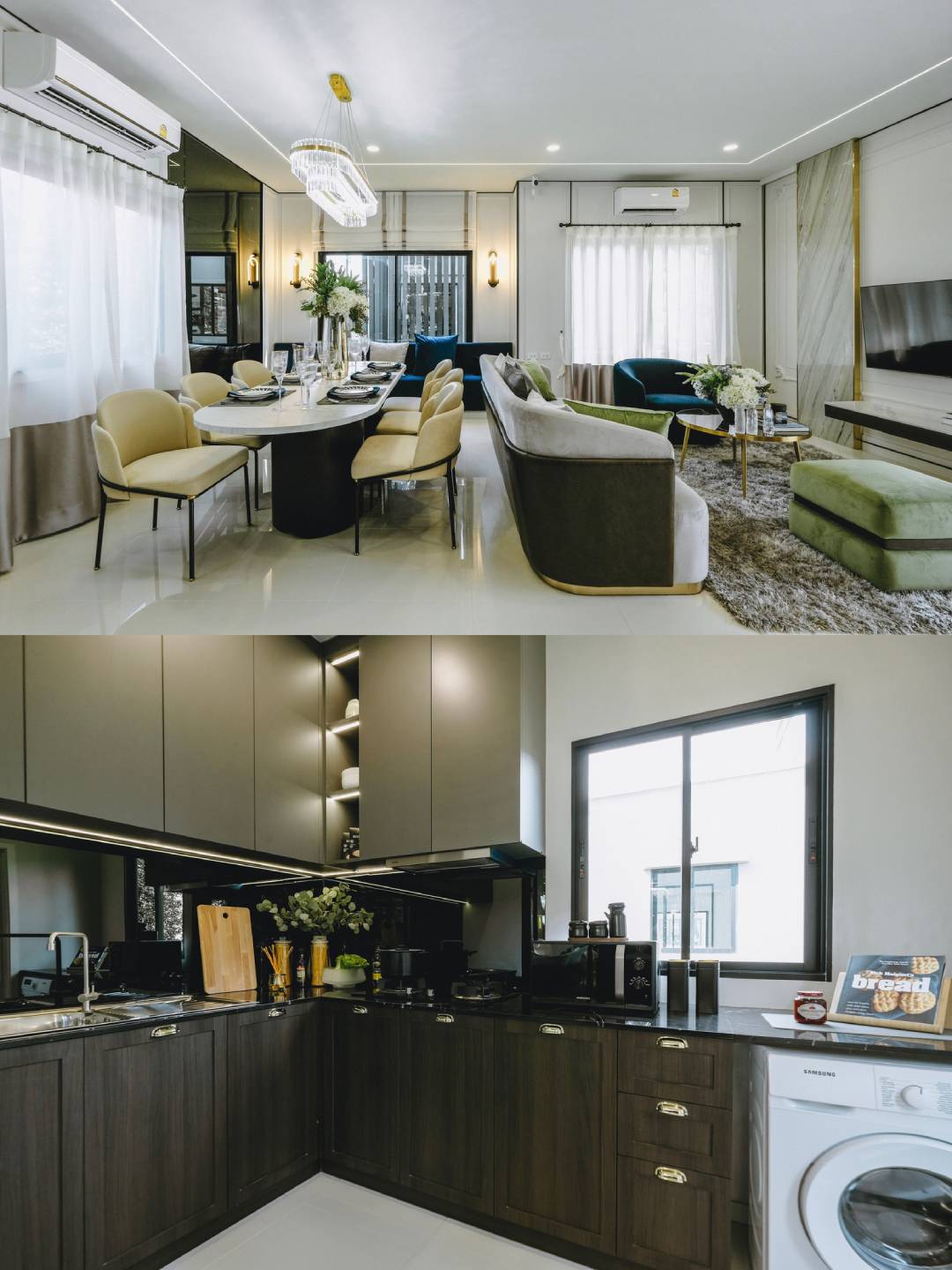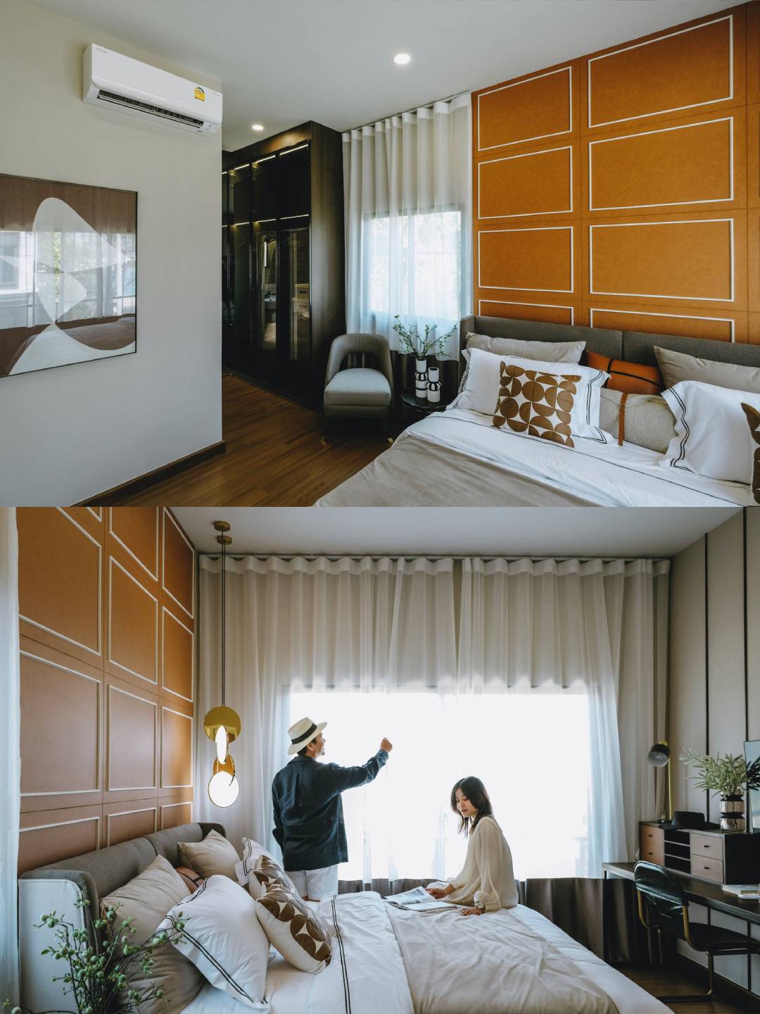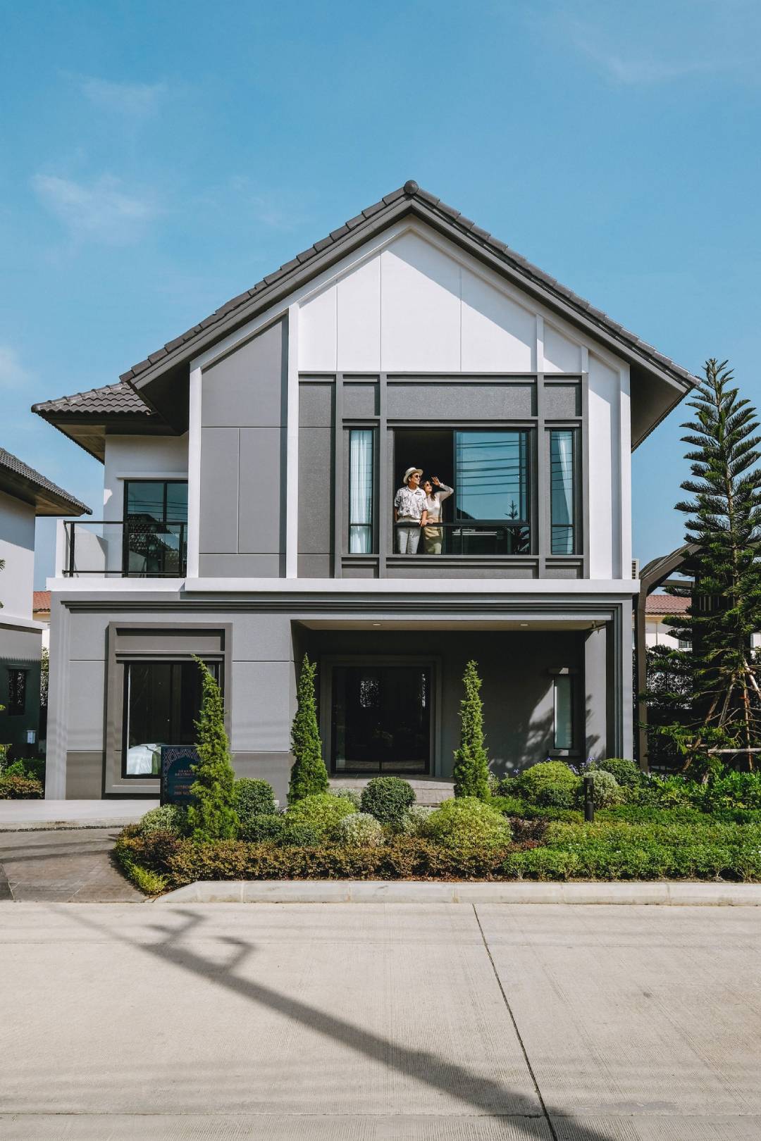 อีกทั้งยังรองรับ Smart Home Innovation รองรับ EV Charger, Solar Rooftop*, Digital Door Lock, IP Camera Motion Sensor, Smoke/Heat Detector, Smart Siren Alarm, USB Port Outletออกแบบและวางพื้นที่ด้วยเทคนิค Open Plan โดยเชื่อมต่อทุกห้องทั้งโซนรับแขก และโซนโต๊ะรับประทานอาหาร เชื่อมต่อกันได้ ซึ่งเป็นพื้นที่ขนาดใหญ่ ทำให้เจ้าของบ้านสามารถ Customize Function ได้ตามไลฟ์สไตล์เลยครับเป็นอีกโซนที่สมาชิกในครอบครัวได้มีกิจกรรมร่วมกันได้จากพื้นที่แห่งนี้ในบ้านหลังนี้ห้องครัวของบ้านหลังนี้ ถูกออกแบบเป็นห้องกระจก สามารถเปิดโล่งหรือปิดในขณะทำอาหารเพื่อลดกลิ่นรบกวนได้เลยครับทางเดินที่ออกแบบให้เชื่อมต่อถึงกันได้ทุกพื้นที่ด้านในสุดเป็นห้องอเนกประสงค์อีกห้องห้องอเนกประสงค์ที่สามารถปรับเปลี่ยนเป็นห้องนอน ที่มีฟังก์ชั่นที่ลงตัวง่ายต่อการใช้งาน เหมาะกับผู้สูงอายุในบ้านที่ไม่ต้องขึ้นลงบันไดขึ้นมาบริเวณชั้น 2 ก็จะเจอกับห้อง Master Bedroom ซึ่งออกแบบให้มีหน้ากว้างไปกับตัวบ้าน ให้สามารถใช้งานกับทุก Function ได้อย่างครบครัน มีกระจกบานใหญ่ที่เปิดรับแสงจากธรรมชาติ ทำให้ห้องดูสว่าง และโปร่งมากๆครับภายในห้องมีพื่นที่กว้าง สามารถวางเตียงขนาด King size และยังสามารถวางโต๊ะหัวเตียง หรือโต๊ะทำงานได้สบายๆ มีทางเดินที่สามารถเดินเชื่อมถึงการได้ทุกพื้นที่ในห้องมุมทำงานในห้อง Master Bedroom ที่สามารถตอบโจทย์กับทุกไลฟ์สไตล์ของทุกคนในบ้านถัดมาจากห้อง Master Bedroom เป็นอีกหนึ่งห้องอเนกประสงค์ที่ถูกปรับเปลี่ยนมาเป็นพื้นที่ห้องทำงาน หรือสามารถนำไปปรับเปลี่ยนตามการใช้งานของผู้อยู่อาศัยได้เลยนะครับบ้านคือจุดเริ่มต้นของครอบครัว นี่ก็เป็นอีกหนึ่งห้องสำหรับคนที่วางแผนในการสร้างครอบครัวไว้รอต้อนรับลูกน้อยของบ้านหลังนี้คลับเฮ้าส์และสวนขนาดใหญ่ ที่มาพร้อมฟังก์ชั่นการใช้งานที่ครบครัน เป็นอาคารคลับเฮ้าส์ 2 ชั้น ดีไซน์หรูสไตล์อังกฤษ โดยได้รับแรงบันดาลใจจาก Luxury English Gable ออกแบบตกแต่งด้วยโทนสีที่ใช้ทำให้ตัวคลับเฮาส์เป็นอาคารที่มีหรูหรา โอบล้อมไปด้วยพื้นที่สีเขียวขนาดใหญ่ ที่เป็นสวนสาธารณะให้เราได้พักผ่อนหย่อนใจกับทุกพื้นที่ส่วนกลางส่วนภายในอาคารจะประกอบไปด้วย สระว่ายน้ำระบบเกลือ Yoga Studio, Wellness Service Room, Fitness, Co-Working Space, และ Meeting Room ให้ทุกคนในบ้านสามารถมาใช้งานได้ตาม Lifestyle เลยครับพื้นที่ชั้นล่างของอาคารคลับเฮ้าส์ จะเป็น Lobby ให้เราได้นั่งพักหรือนัดคุยงาน หรือใช้รับแขกเพื่อความเป็นส่วนตัว และยังมี Kid’s Room ไว้รองรับสำหรับพาเด็กๆ มาวิ่งเล่นเสริมพัฒนาการกันได้ครับห้องฟิตเนสมีเครื่องเล่นครบทุกส่วนทั้งเวนเทรนนิ่งและคาดิโอ มีกระจกเปิดรับแสงขนาดใหญ่ให้เราสามารถมองเ