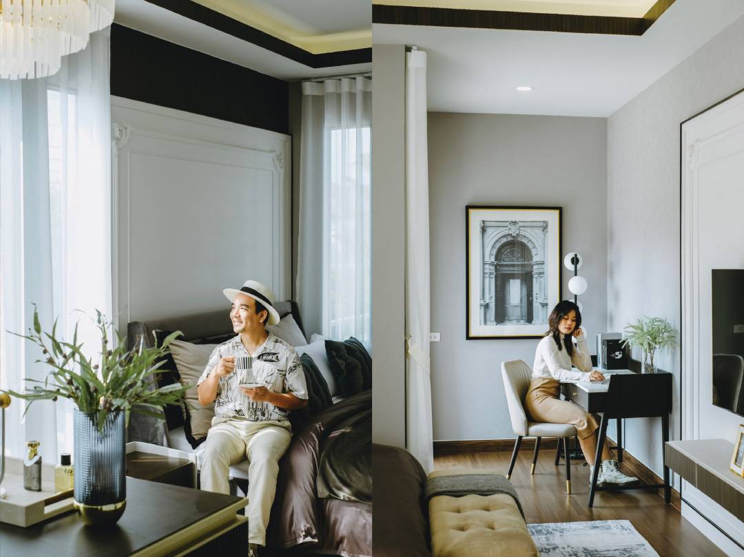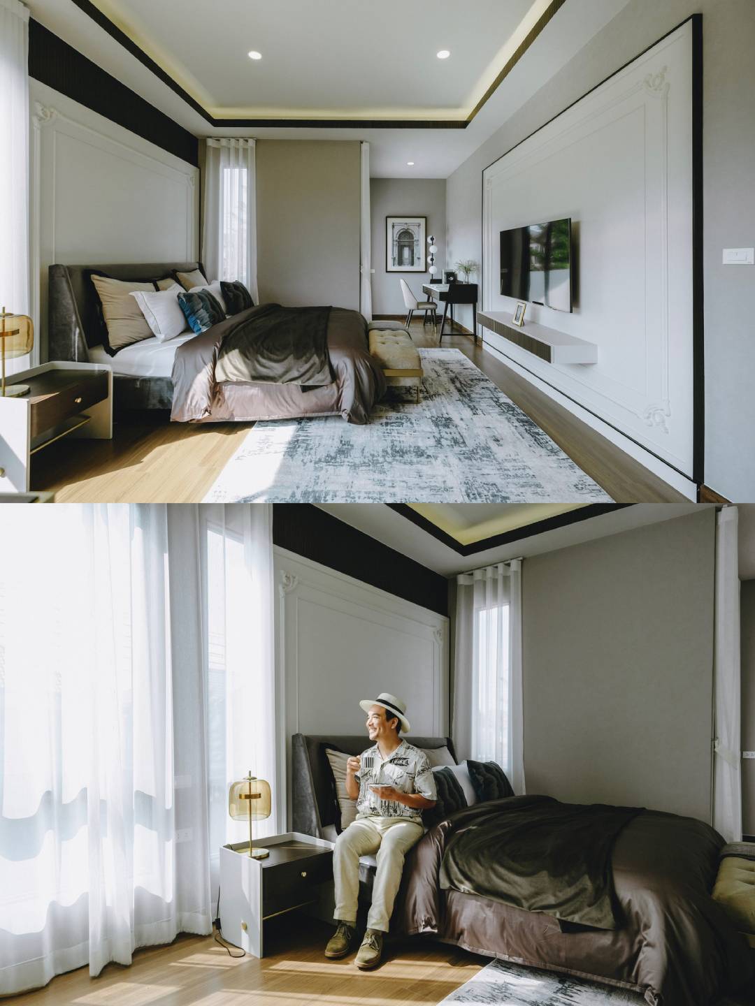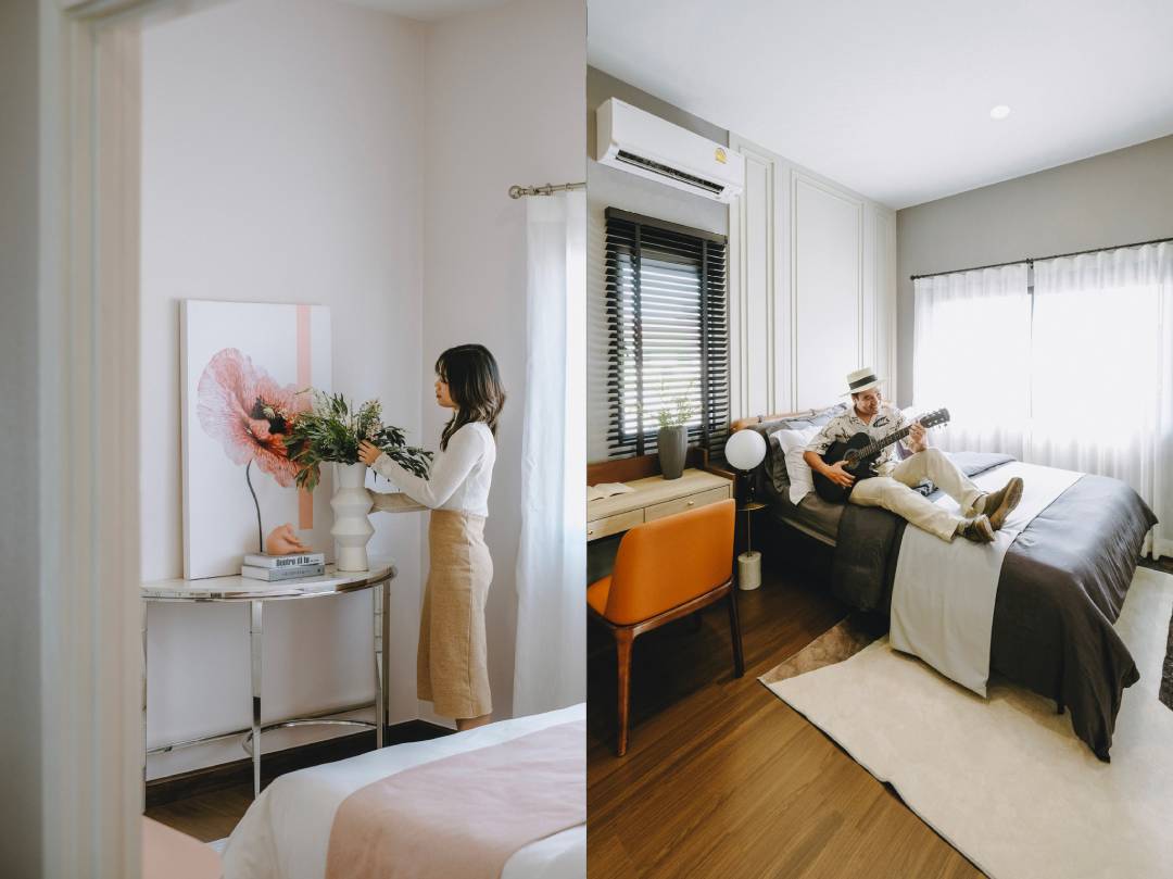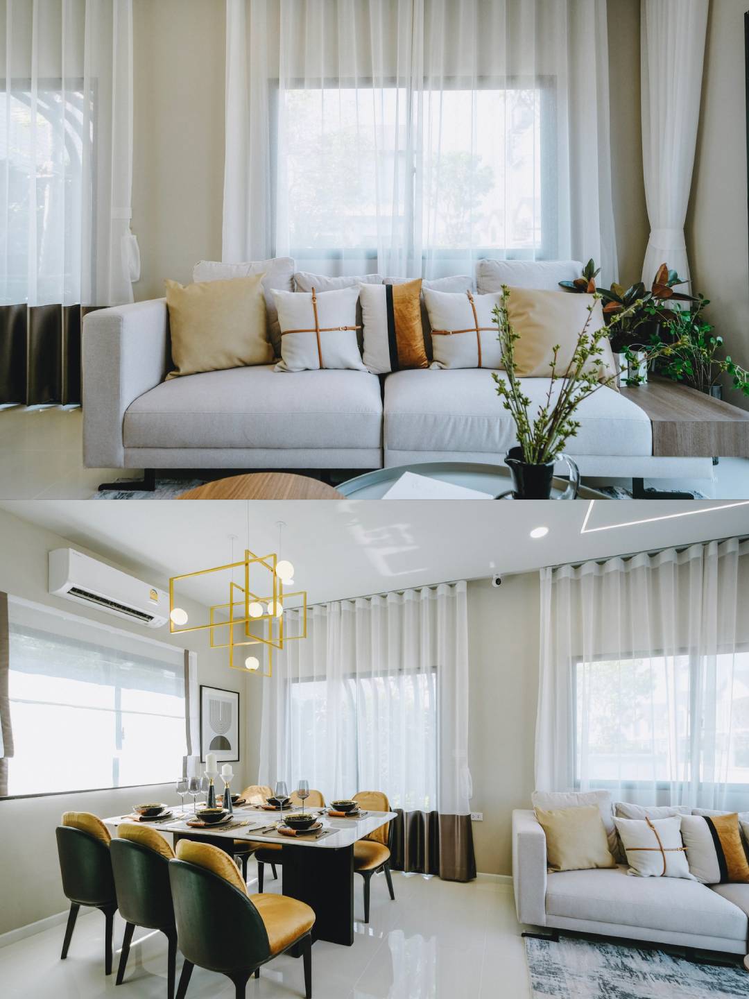 อีกทั้งยังรองรับ Smart Home Innovation รองรับ EV Charger, Solar Rooftop*, Digital Door Lock, IP Camera Motion Sensor, Smoke/Heat Detector, Smart Siren Alarm, USB Port Outletออกแบบและวางพื้นที่ด้วยเทคนิค Open Plan โดยเชื่อมต่อทุกห้องทั้งโซนรับแขก และโซนโต๊ะรับประทานอาหาร เชื่อมต่อกันได้ ซึ่งเป็นพื้นที่ขนาดใหญ่ ทำให้เจ้าของบ้านสามารถ Customize Function ได้ตามไลฟ์สไตล์เลยครับเป็นอีกโซนที่สมาชิกในครอบครัวได้มีกิจกรรมร่วมกันได้จากพื้นที่แห่งนี้ในบ้านหลังนี้ห้องครัวของบ้านหลังนี้ ถูกออกแบบเป็นห้องกระจก สามารถเปิดโล่งหรือปิดในขณะทำอาหารเพื่อลดกลิ่นรบกวนได้เลยครับทางเดินที่ออกแบบให้เชื่อมต่อถึงกันได้ทุกพื้นที่ด้านในสุดเป็นห้องอเนกประสงค์อีกห้องห้องอเนกประสงค์ที่สามารถปรับเปลี่ยนเป็นห้องนอน ที่มีฟังก์ชั่นที่ลงตัวง่ายต่อการใช้งาน เหมาะกับผู้สูงอายุในบ้านที่ไม่ต้องขึ้นลงบันไดขึ้นมาบริเวณชั้น 2 ก็จะเจอกับห้อง Master Bedroom ซึ่งออกแบบให้มีหน้ากว้างไปกับตัวบ้าน ให้สามารถใช้งานกับทุก Function ได้อย่างครบครัน มีกระจกบานใหญ่ที่เปิดรับแสงจากธรรมชาติ ทำให้ห้องดูสว่าง และโปร่งมากๆครับภายในห้องมีพื่นที่กว้าง สามารถวางเตียงขนาด King size และยังสามารถวางโต๊ะหัวเตียง หรือโต๊ะทำงานได้สบายๆ มีทางเดินที่สามารถเดินเชื่อมถึงการได้ทุกพื้นที่ในห้องมุมทำงานในห้อง Master Bedroom ที่สามารถตอบโจทย์กับทุกไลฟ์สไตล์ของทุกคนในบ้านถัดมาจากห้อง Master Bedroom เป็นอีกหนึ่งห้องอเนกประสงค์ที่ถูกปรับเปลี่ยนมาเป็นพื้นที่ห้องทำงาน หรือสามารถนำไปปรับเปลี่ยนตามการใช้งานของผู้อยู่อาศัยได้เลยนะครับบ้านคือจุดเริ่มต้นของครอบครัว นี่ก็เป็นอีกหนึ่งห้องสำหรับคนที่วางแผนในการสร้างครอบครัวไว้รอต้อนรับลูกน้อยของบ้านหลังนี้คลับเฮ้าส์และสวนขนาดใหญ่ ที่มาพร้อมฟังก์ชั่นการใช้งานที่ครบครัน เป็นอาคารคลับเฮ้าส์ 2 ชั้น ดีไซน์หรูสไตล์อังกฤษ โดยได้รับแรงบันดาลใจจาก Luxury English Gable ออกแบบตกแต่งด้วยโทนสีที่ใช้ทำให้ตัวคลับเฮาส์เป็นอาคารที่มีหรูหรา โอบล้อมไปด้วยพื้นที่สีเขียวขนาดใหญ่ ที่เป็นสวนสาธารณะให้เราได้พักผ่อนหย่อนใจกับทุกพื้นที่ส่วนกลางส่วนภายในอาคารจะประกอบไปด้วย สระว่ายน้ำระบบเกลือ Yoga Studio, Wellness Service Room, Fitness, Co-Working Space, และ Meeting Room ให้ทุกคนในบ้านสามารถมาใช้งานได้ตาม Lifestyle เลยครับพื้นที่ชั้นล่างของอาคารคลับเฮ้าส์ จะเป็น Lobby ให้เราได้นั่งพักหรือนัดคุยงาน หรือใช้รับแขกเพื่อความเป็นส่วนตัว และยังมี Kid’s Room ไว้รองรับสำหรับพาเด็กๆ มาวิ่งเล่นเสริมพัฒนาการกันได้ครับห้องฟิตเนสมีเครื่องเล่นครบทุกส่วนทั้งเวนเทรนนิ่งและคาดิโอ มีกระจกเปิดรับแสงขนาดใหญ่ให้เราสามารถมองเ