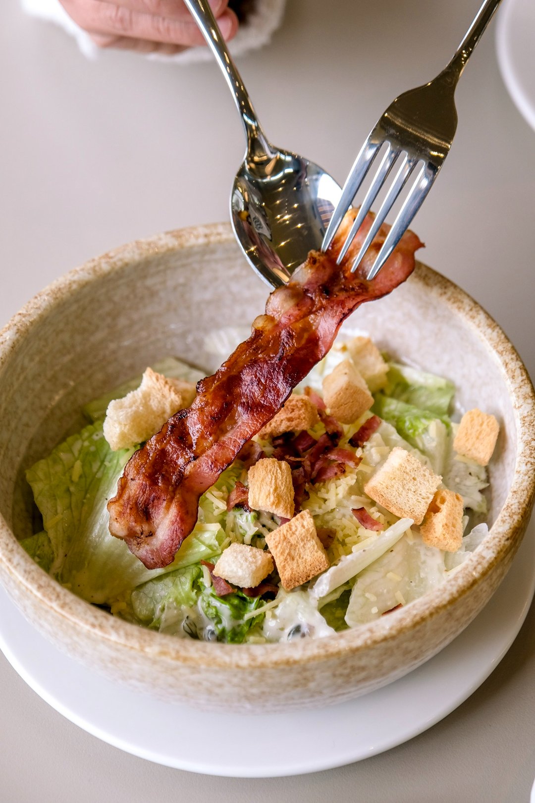 • Caesar Salad – ซีซาร์สลัดเบค่อนกรอบๆ คลุกด้วยซอสสูตรพิเศษ รสเปรี้ยวนัวตัดเลี่ยนได้ดีเลยครับ