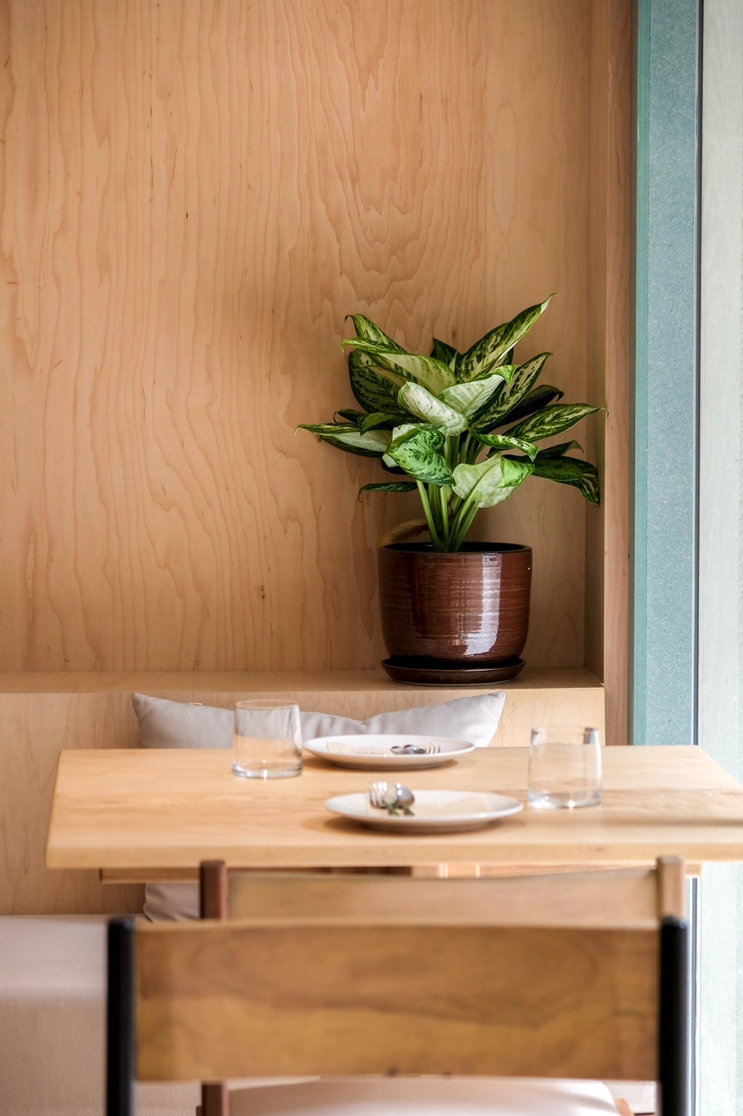 ภายในร้านตกแต่งสไตล์มูจิ โทนอบอุ่น มินิมอล เรียบง่ายแต่มีดีเทล พื้นที่กว้างขวาง มีปลั๊กทุกโต๊ะ เหมาะสำหรับ Work From Cafe มากๆ