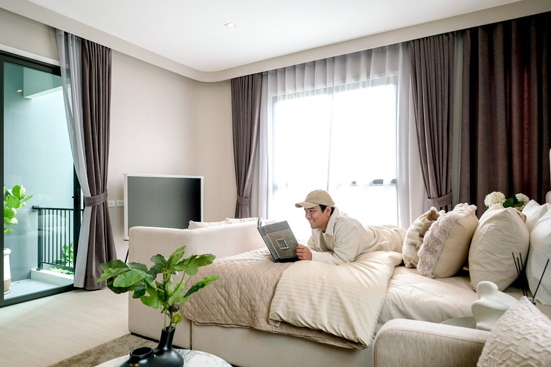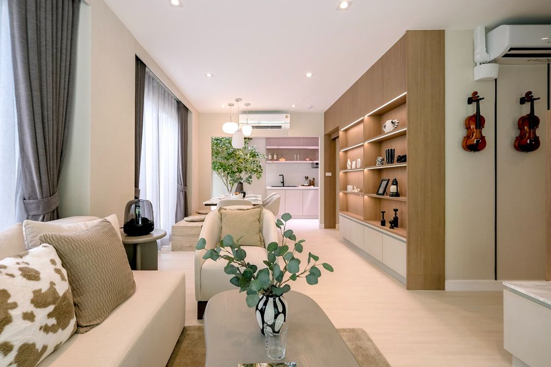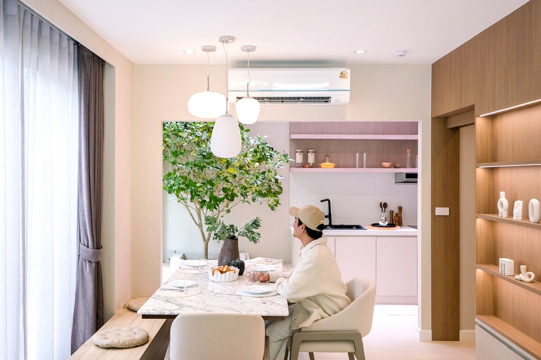 ดีไซน์เรียบเท่ ที่ให้ฟีลเหมือนบ้านพักผ่อนในเมือง – โทนสี Earth Tone ช่วยสร้างมู้ดบรรยากาศให้บ้านมีฟีลอบอุ่นแต่ยังคงความมีสไตล์ เหมาะกับชีวิตของคนเมืองที่ต้องการความสงบเป็นของตัวเอง ที่นี่ไม่ได้มีแค่ดีไซน์ที่สวยงาม แต่ทุกพื้นที่ถูกคิดมาเพื่อตอบโจทย์ “การใช้ชีวิตจริง“