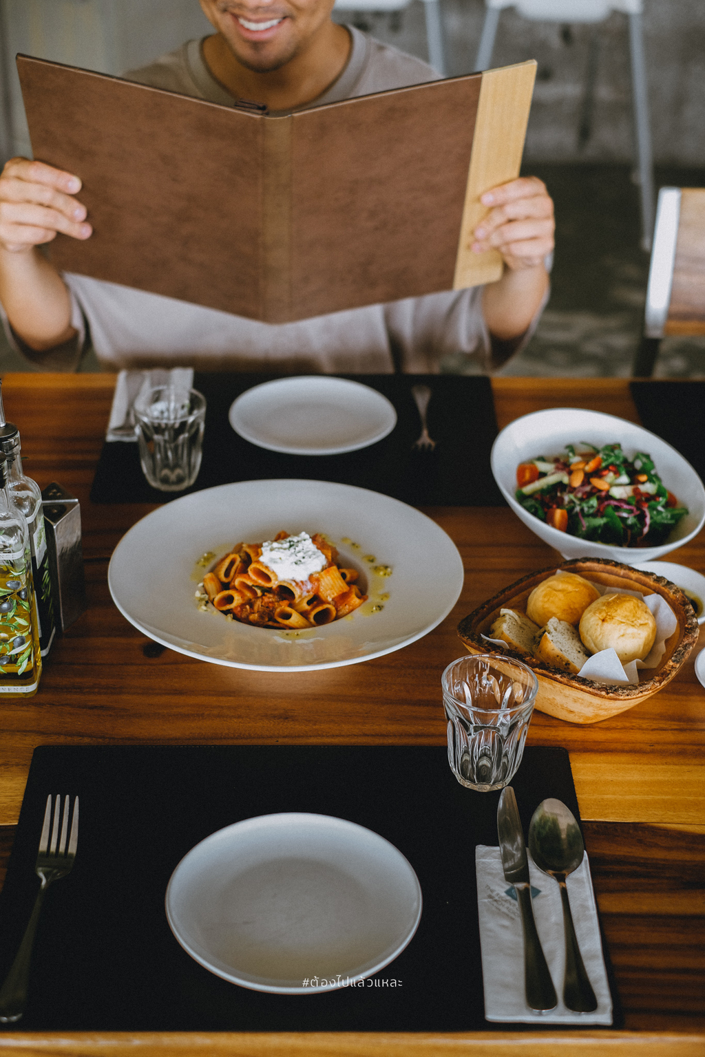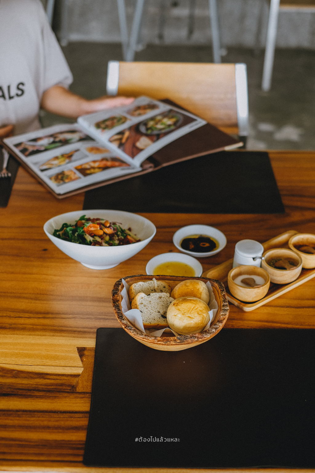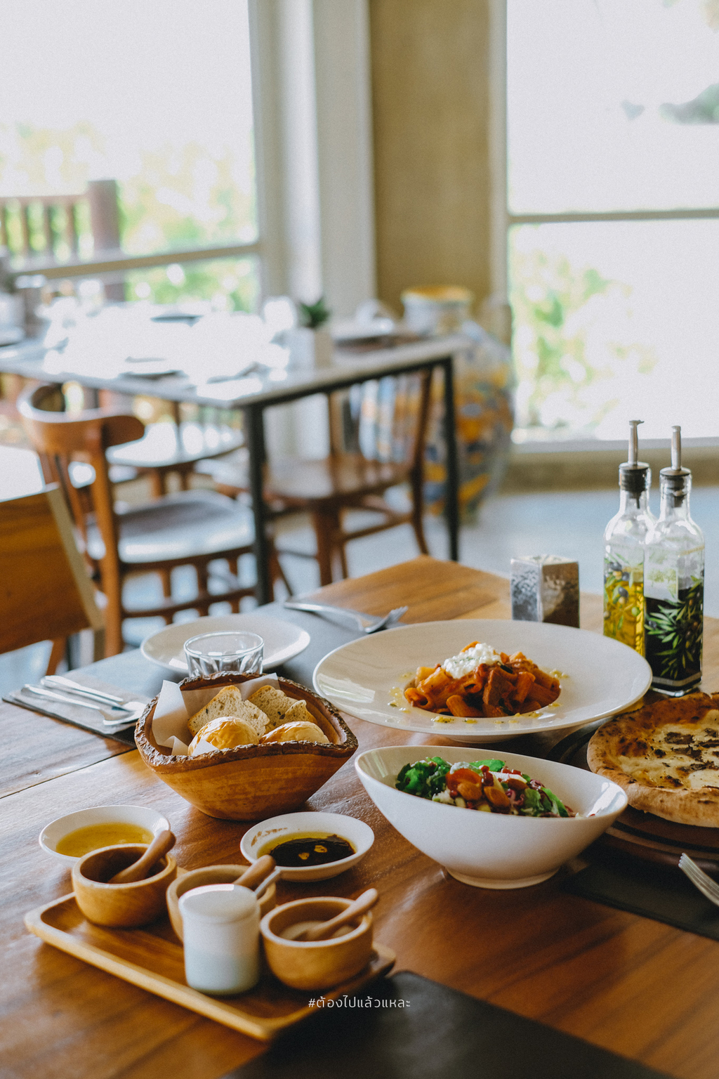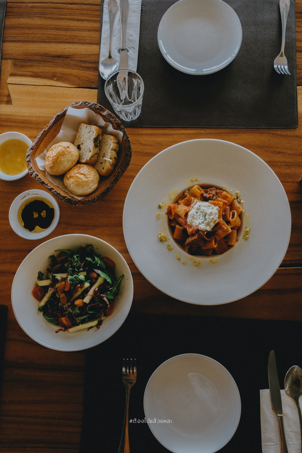 • ขนมปังอบร้อน Dinner Roll มาพร้อม นำ้มันมะกอก / balsamic vinegar เป็นออเดิร์ฟ