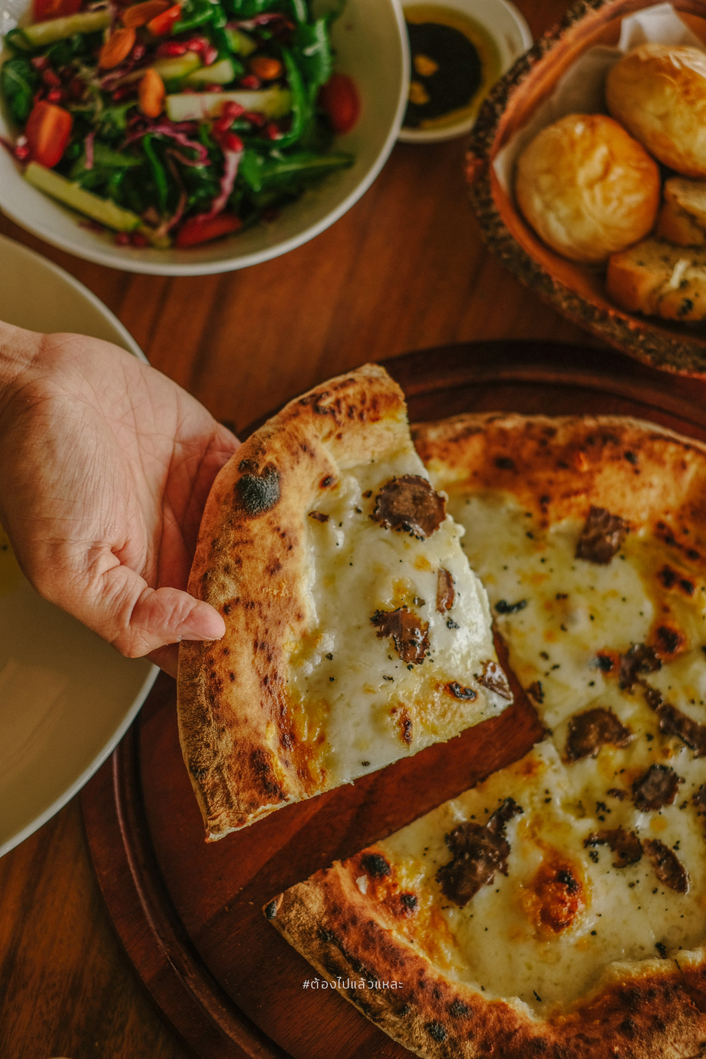 • Original Neapolitan Truffle pizza: แป้งพิซซ่าที่นี่ เป็นแป้งบางแบบพิเศษ อบใหม่ สดๆ ร้อน ๆ จากเตาจึงได้รสชาติอิตาเลี่ยนแท้ๆ กรอบและหอมชีสมากๆ โดยเฉพาะความหอมของเห็ดทรัฟเฟิล ที่โรยหน้ามาแบบไม่อั้น ฟินเต็มๆคำ เลยครับ