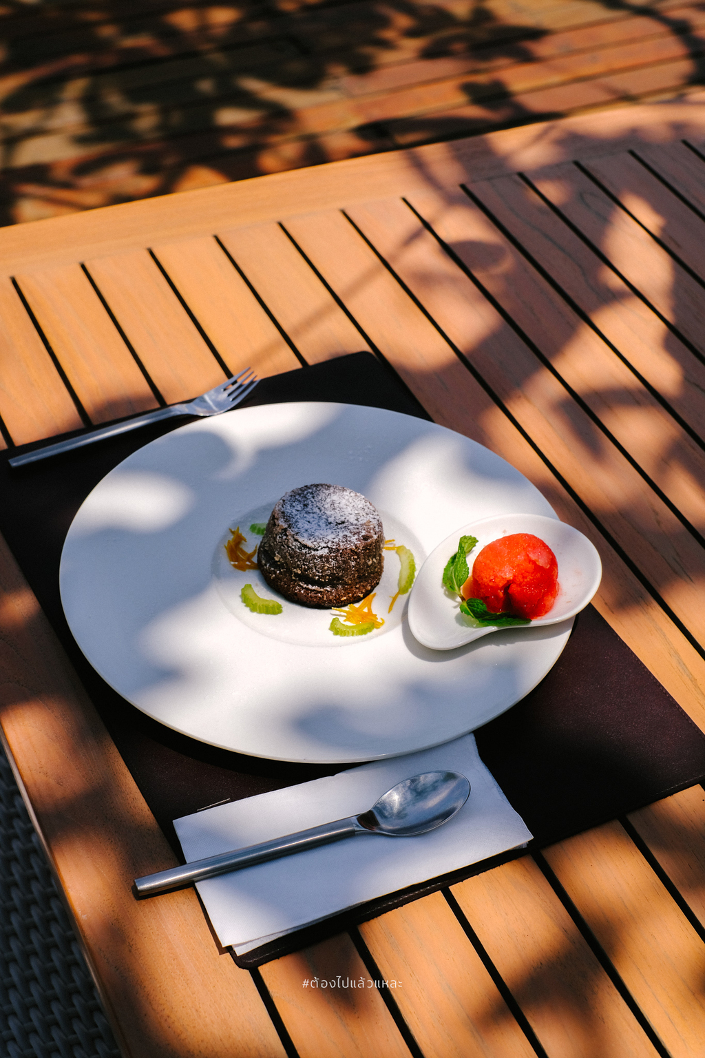 สำหรับเมนูของหวาน Molten Chocolate Cake เนื้อเค้กสัมผัสด้านในมีความเยิ้มไหลกำลังพอดีได้รสชาติเข้มข้นจากช็อกโกแลตทานได้แบบเพลินๆ เหมาะกับทานปิดท้ายได้ดีมากๆ ครับ