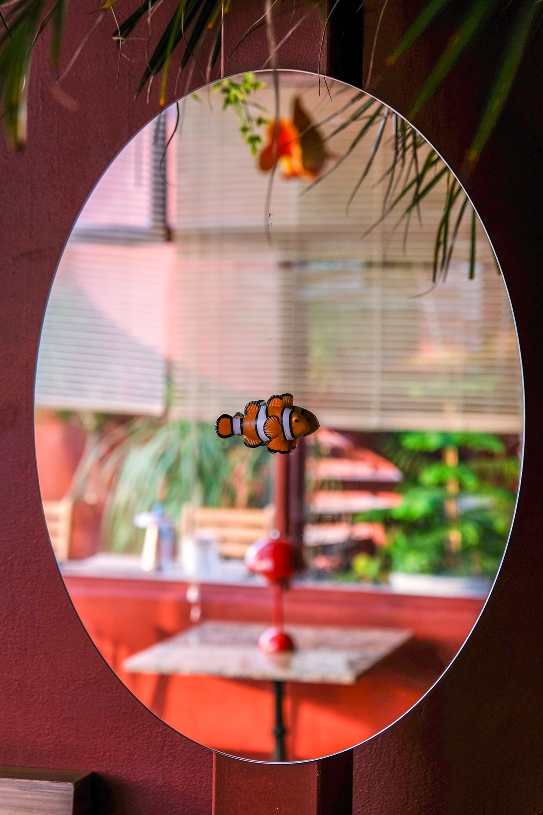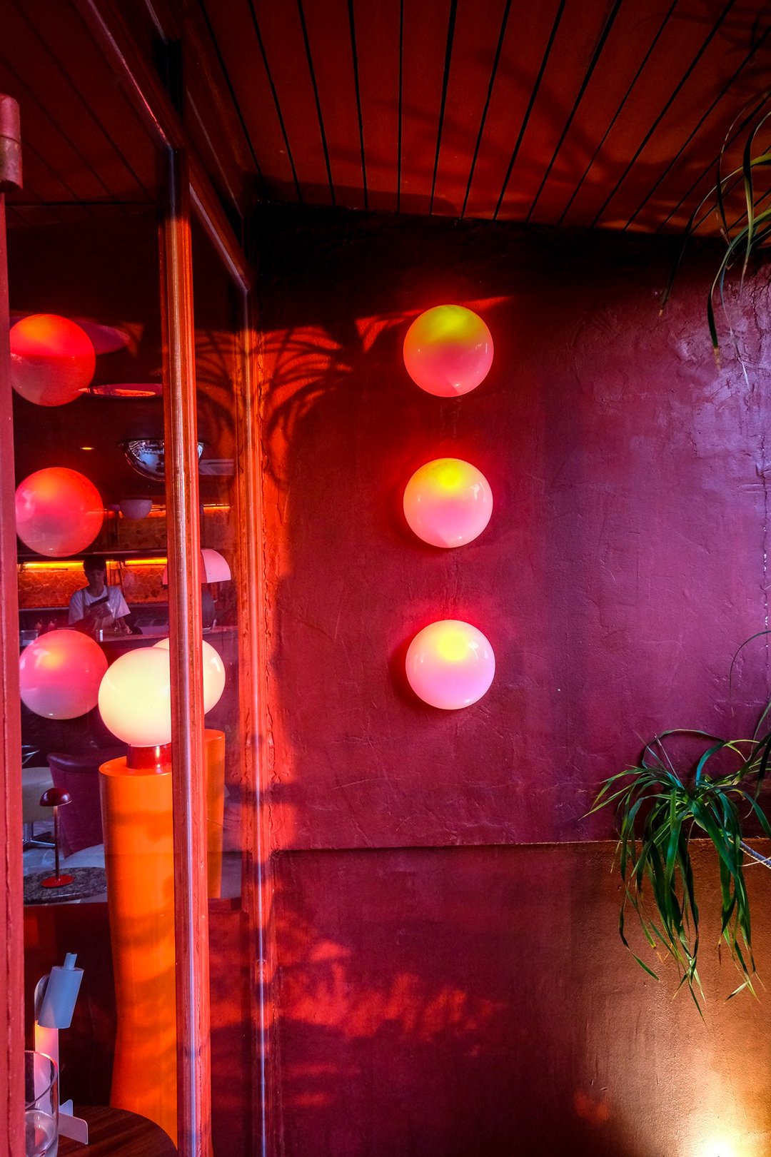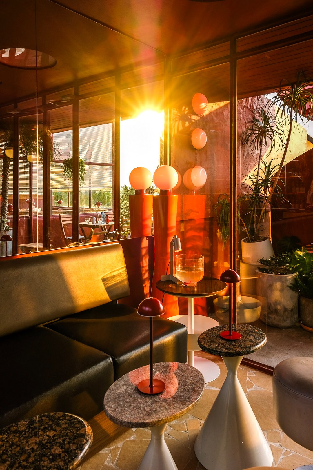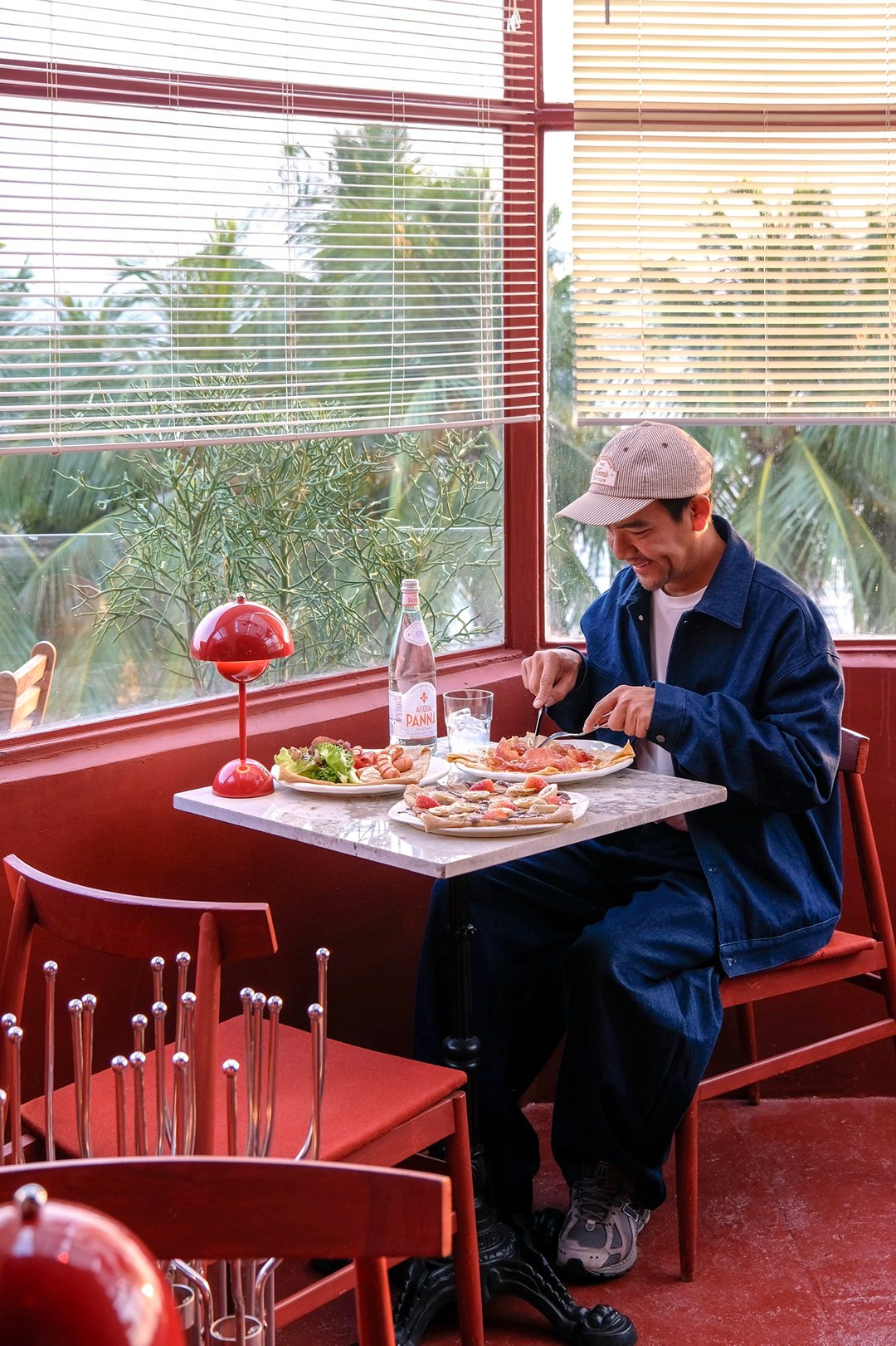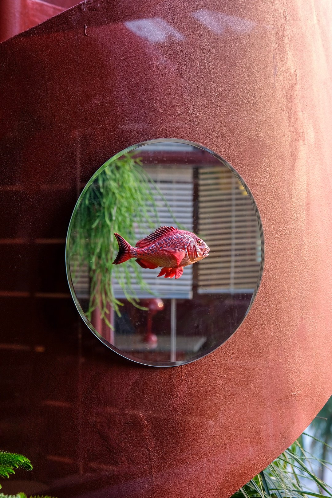 ที่นี่เป็นคาเฟ่กึ่งบาร์ริมทะเลในสไตล์ Mid-Century Modern ตกแต่งด้วยโทนแดงจัดจ้าน ตัดกับสีฟ้าของทะเล มี installation น้องปลาทอง ลอยกลางอากาศที่กลายเป็นซิกเนเจอร์ กับมุมเคาน์เตอร์ที่มีตู้ปลาทองตัวจริงแหวกว่ายท่ามกลางแสงไฟสีแดง โคตรจึ้ง ถ่ายรูปมุมไหนก็สวย เหมือนวาร์ปไปต่างประเทศเลยครับ