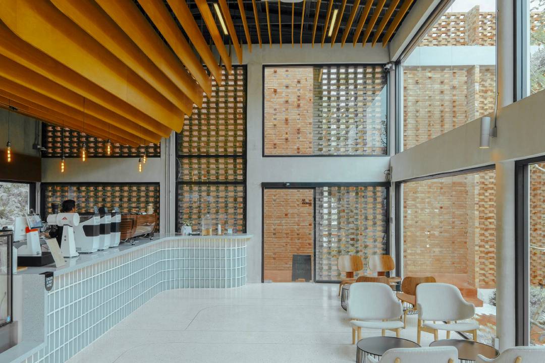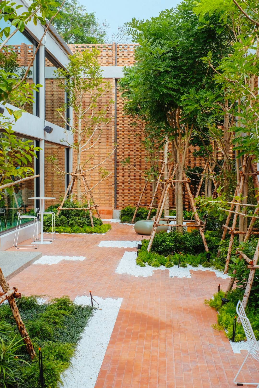 ปังมากไม่ไหว จนเราต้องพุ่งตัวไปจากกรุงเทพ ใช้เวลาเดินทางแค่ 1 ชั่วโมงเพื่อมาอัพเดทคาเฟ่เปิดใหม่ที่โดดเด่นด้วยรูปทรงตัวตึกทรงสี่เหลี่ยมขนาดใหญ่ ที่มีเอกลักษณ์ดีไซต์ด้วยอิฐส้ม แว๊บแรกที่ผ่านตาคิดว่านี่มัน อยุธยาแน่ๆ แต่นี่มันแค่โซนชลบุรีแค่นี้เองครับ
