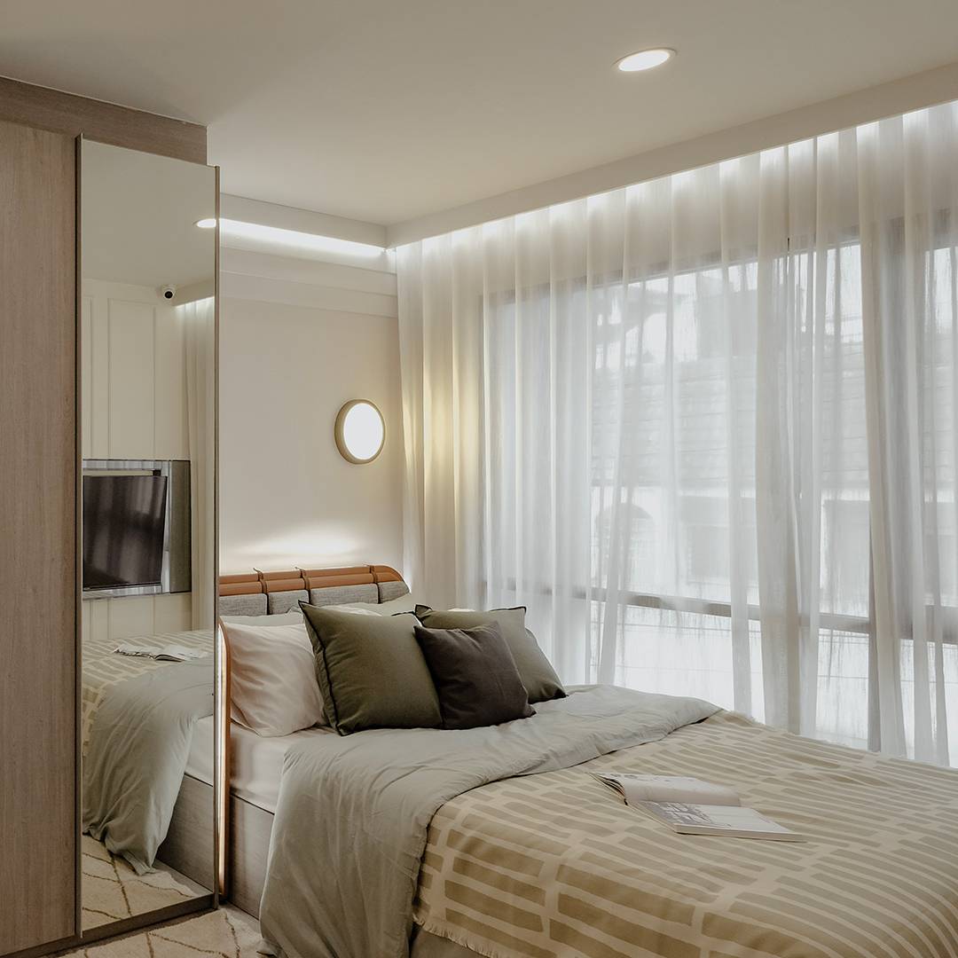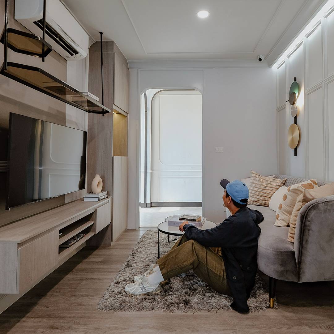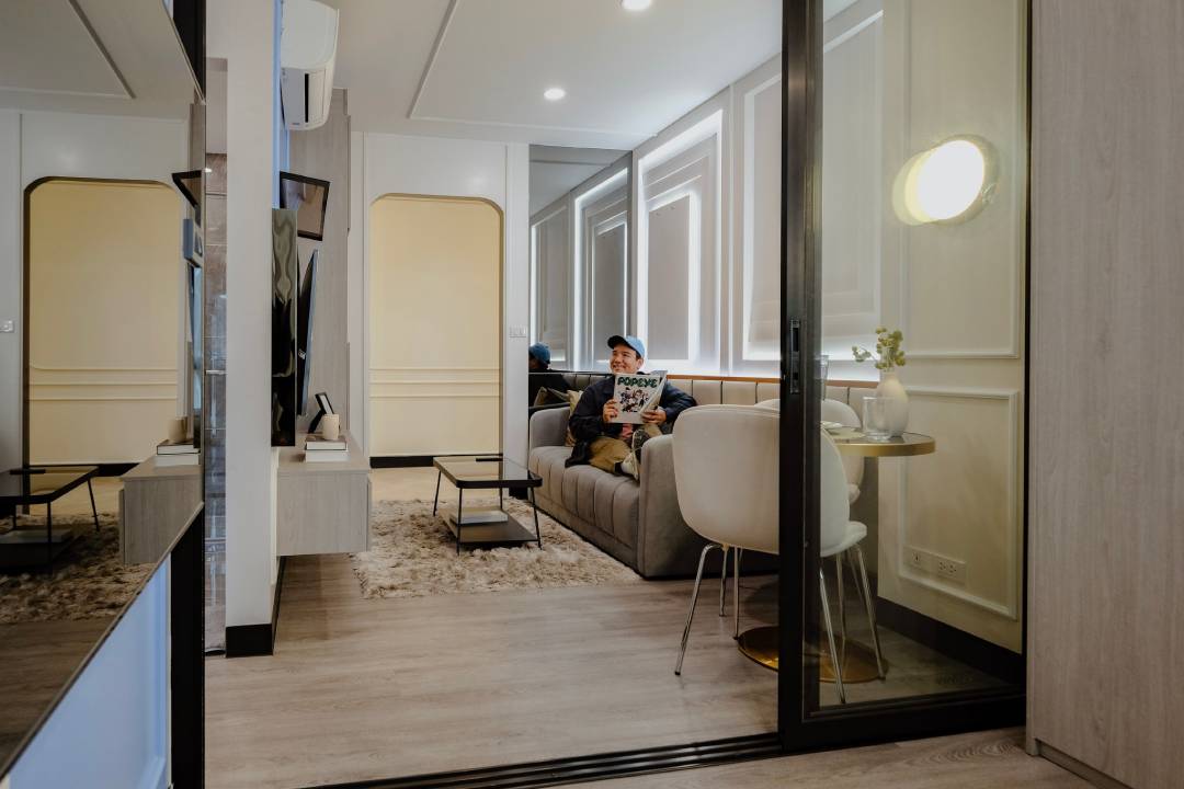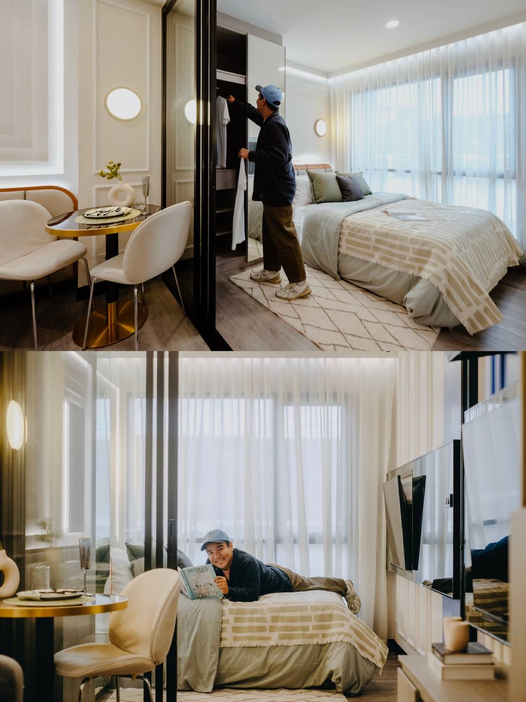 เป็นโครงการที่อยู่ติดถนนพหลโยธินเดินทางง่าย สะดวกสบายสุดๆ อยู่ใกล้รถไฟฟ้าสถานีสายหยุดแบบเดินชิลๆเพียงแค่ 50 เมตร* และสามารถเดินทางไปสนามบินดอนเมืองเพียง 10 นาที* เท่านั้นเองครับ เป็นอีกหนึ่งโครงการที่ออกแบบมาเพื่อรองรับและตอบโจทย์การใช้ชีวิตของคนเมืองมากๆ เราชอบการออกแบบตกแต่งภายในที่ถูกดีไซต์มาในสไตล์ที่เรียบง่ายและเลือกใช้วัสดุเป็นโทนสีคุมโทนมันเลยกลายเป็นภาพที่ดูแล้วสบายตา อบอุ่นหัวใจมากเลยทีเดียวครับ บางทีความสุขง่ายๆ ที่เราต้องการก็คือการนั่งฟังเพลง อ่านหนังสือเล่มโปรดอยู่บนเตียง หรือนอนดูซี่รี่ส์ อยู่บนโซฟา เพียงแค่นี้ก็เป็นสุขที่เงียบง่ายของชีวิตของเราแล้วล่ะครับ และในวันที่ต้องออกไปทำงานในทุกๆ ตอนเช้า เราก็แค่เลือกใช้เส้นทางรถไฟฟ้า เพียงไม่กี่นาที ทั้งรวดเร็วและไม่ต้องรีบเร่งอีกต่อไป ไม่ต้องเผื่อเวลาเยอะๆ เพราะเพียงแค่กลัวรถติด เราเลยเห็นภาพความความรีบร้อนของเราอย่างบางตา ทำให้เรายังพอมีเวลาเหลือเฟือกับการออกมาใช้ชีวิตมีเวลาเดินเล่นในสวนพื้นที่ส่วนกลางในคอนโด SO ORIGIN PHAHOL 69 STATION แห่งนี้