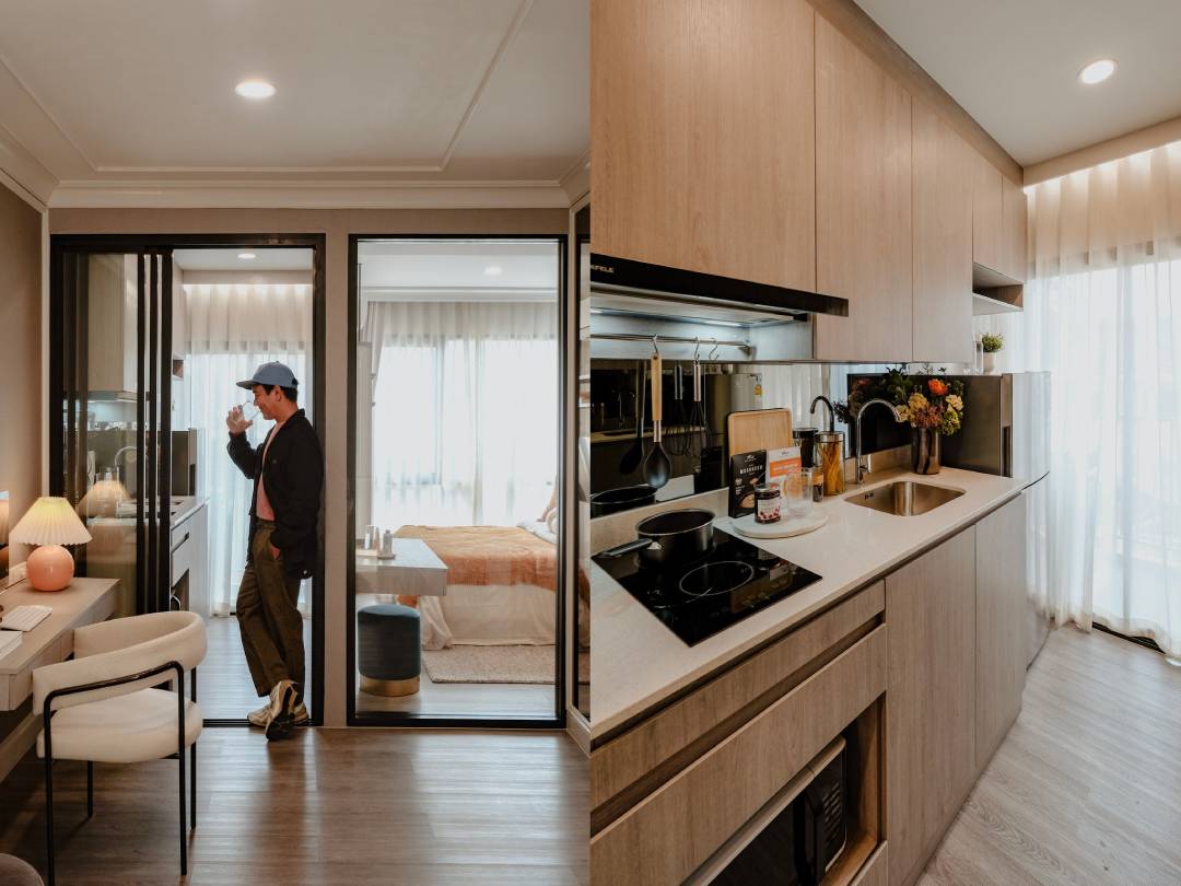โดยมีการแบ่งสัดส่วนพื้นที่การใช้งานทั้งห้องนอน ห้องนั่งเล่น และห้องครัวได้ดีมากๆ ครับ