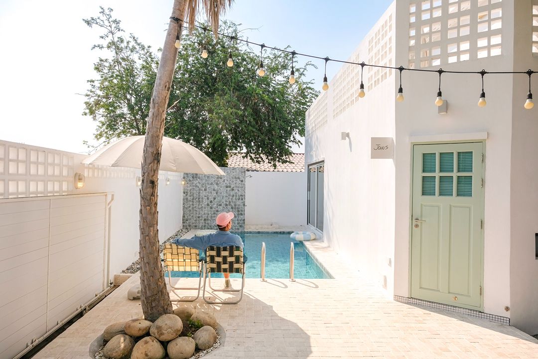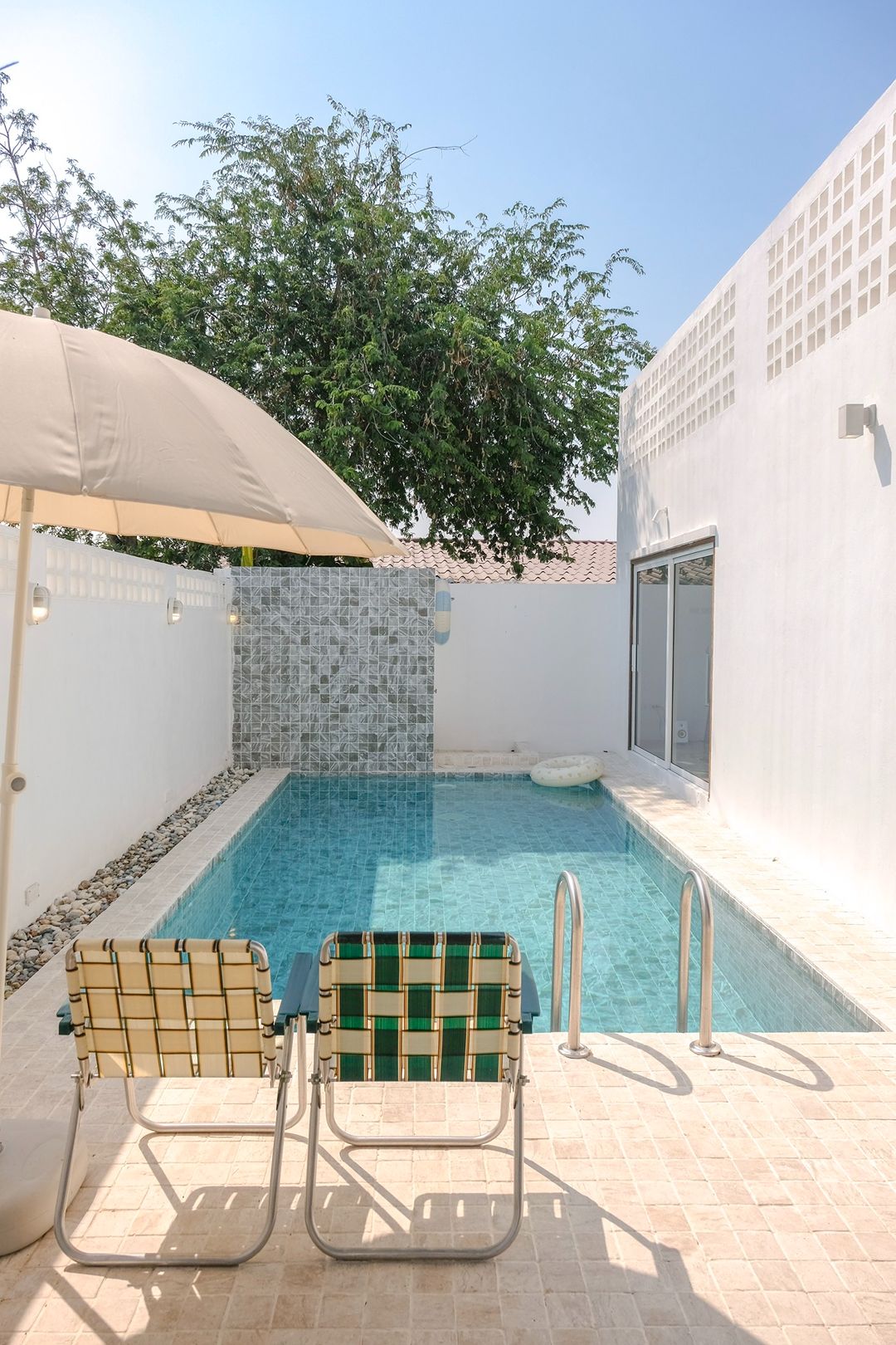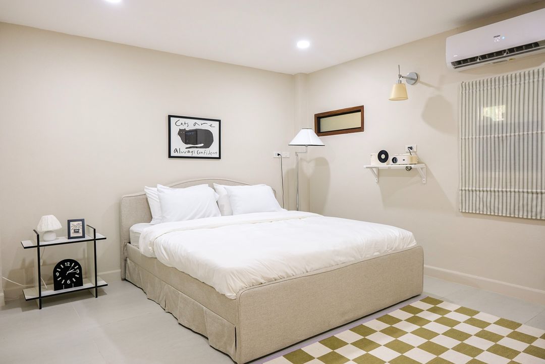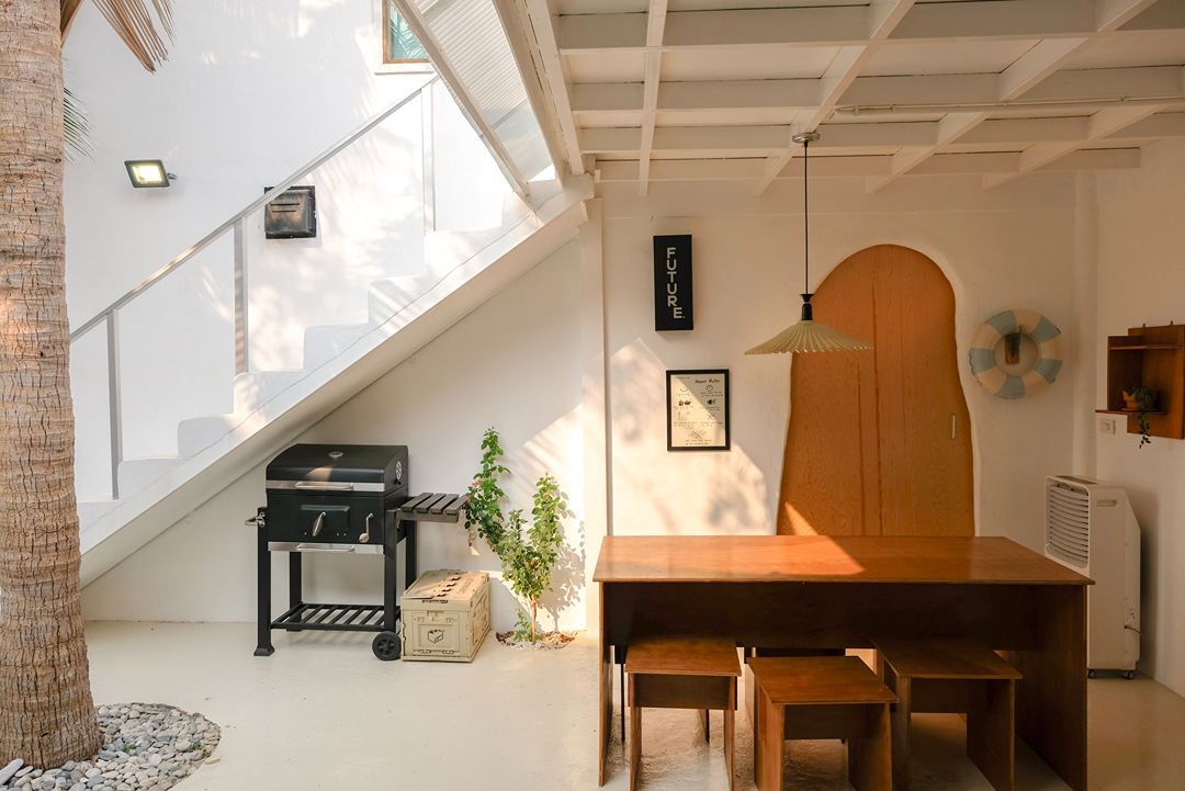 บรรยากาศภายในบ้านพักมีความ homey café มีความคุมโทน ถ่ายรูปมุมไหนก็คือดีงามไปหมด Mood แต่ละห้องก็มีการตกแต่งกันออกไป เฟอร์นิเจอร์แต่ละห้องคือน่ารักปุ๊กปิ๊กทุกชิ้น! ให้ฟีลเหมือนสตูดิโอที่หลุดมาจาก Pinterest เลยครับ ภายในบ้านยังจัดเต็มไปด้วยอุปกรณ์เครื่องครัว และชุดดริปกาแฟ รับบทเป็นบาริสต้าจำเป็น เหมาะกับคนตื่นเช้าที่ชอบดริปกาแฟทานเอง รับรองชิลสุดๆ ตกบ่ายก็ยังมีมุมพักผ่อนสามารถออกมานั่งจิบเครื่องดื่มเย็นๆ ริมสระ vibes คือดีมาก ได้ฟีลเหมือนอยู่บ้านพักตากอากาศที่เกาหลี แสงฉ่ำทั้งเช้าบ่ายเลยครับ ช่วงค่ำยังสามารถตั้งโต๊ะ outdoor เปิดไฟสลัวๆ บน rooftop นั่งกินปิ้งย่าง ใดใดคืออบอุ่นสุดๆ