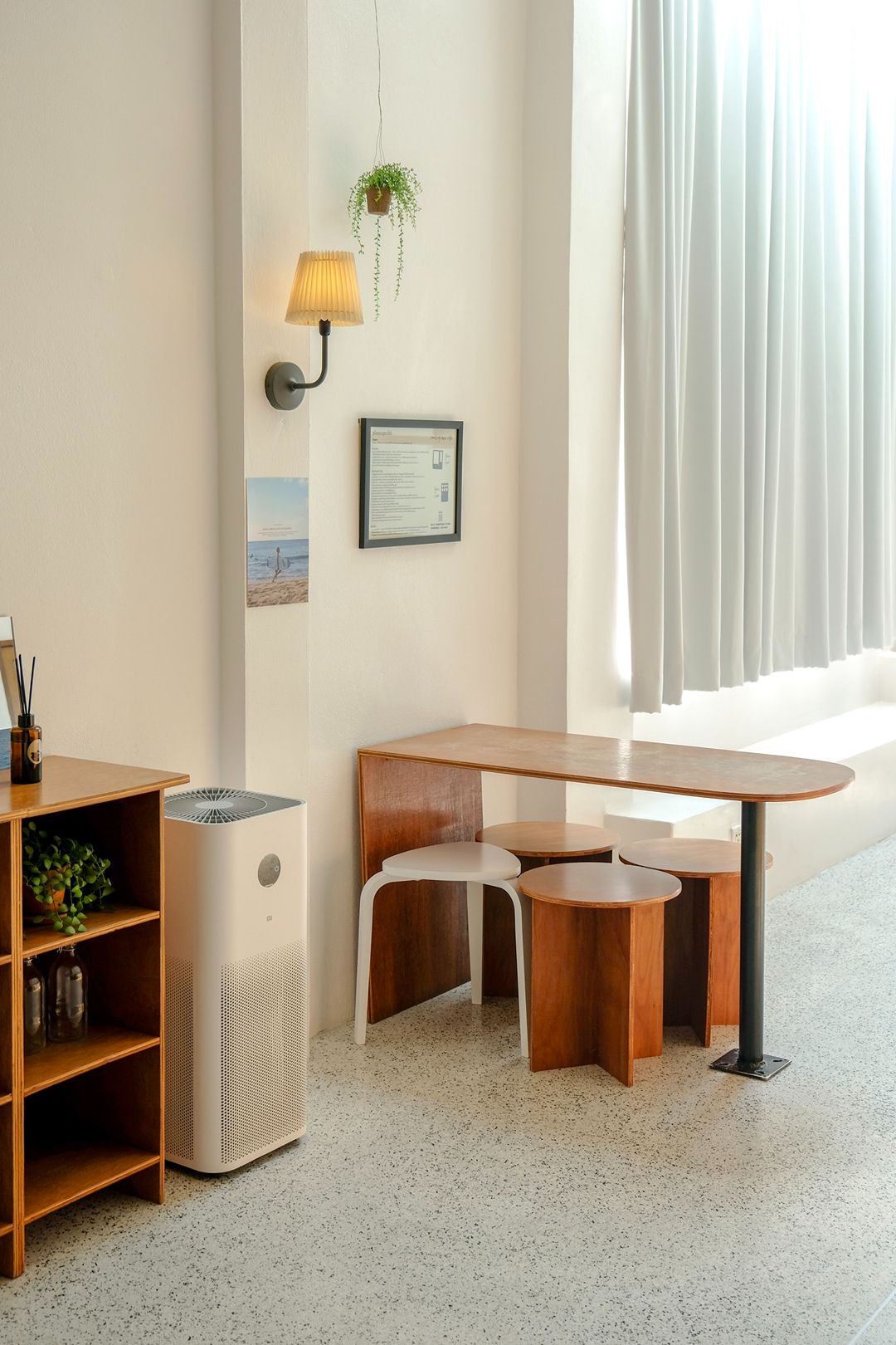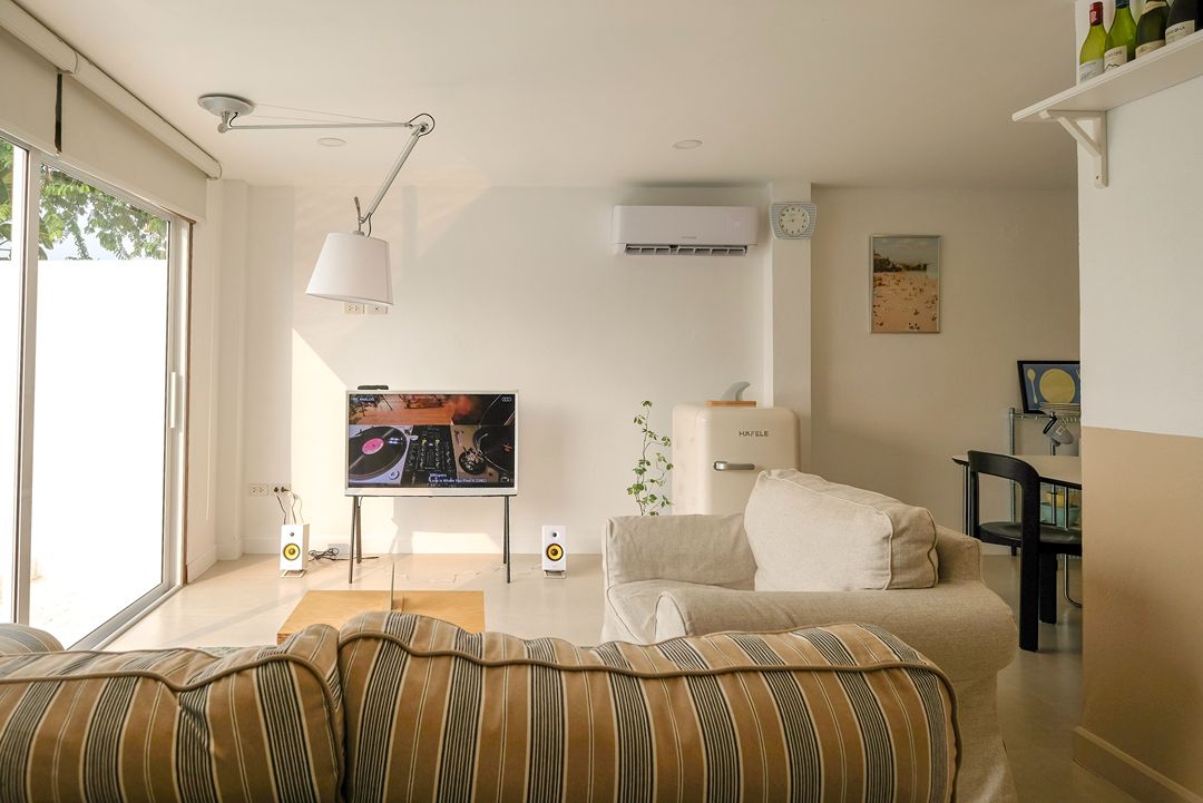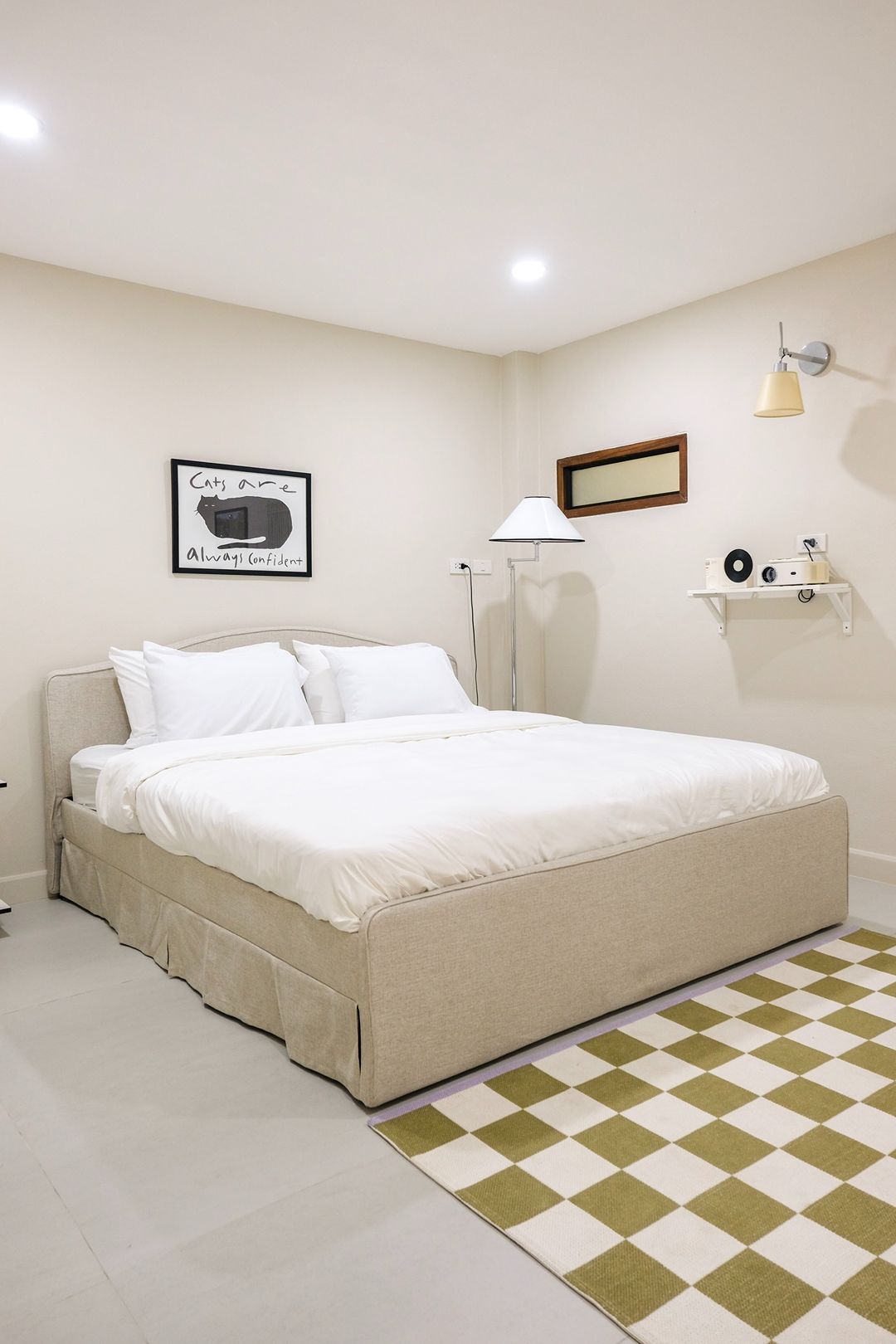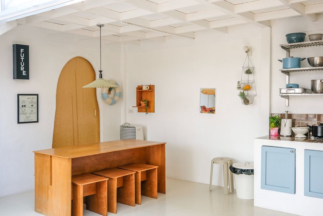 บรรยากาศภายในบ้านพักมีความ homey café มีความคุมโทน ถ่ายรูปมุมไหนก็คือดีงามไปหมด Mood แต่ละห้องก็มีการตกแต่งกันออกไป เฟอร์นิเจอร์แต่ละห้องคือน่ารักปุ๊กปิ๊กทุกชิ้น! ให้ฟีลเหมือนสตูดิโอที่หลุดมาจาก Pinterest เลยครับ ภายในบ้านยังจัดเต็มไปด้วยอุปกรณ์เครื่องครัว และชุดดริปกาแฟ รับบทเป็นบาริสต้าจำเป็น เหมาะกับคนตื่นเช้าที่ชอบดริปกาแฟทานเอง รับรองชิลสุดๆ ตกบ่ายก็ยังมีมุมพักผ่อนสามารถออกมานั่งจิบเครื่องดื่มเย็นๆ ริมสระ vibes คือดีมาก ได้ฟีลเหมือนอยู่บ้านพักตากอากาศที่เกาหลี แสงฉ่ำทั้งเช้าบ่ายเลยครับ ช่วงค่ำยังสามารถตั้งโต๊ะ outdoor เปิดไฟสลัวๆ บน rooftop นั่งกินปิ้งย่าง ใดใดคืออบอุ่นสุดๆ