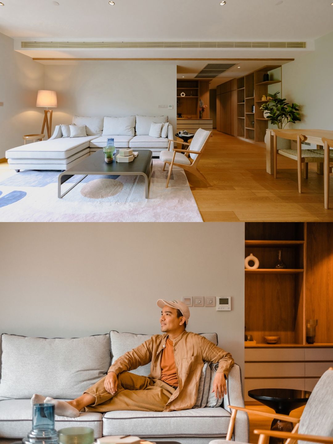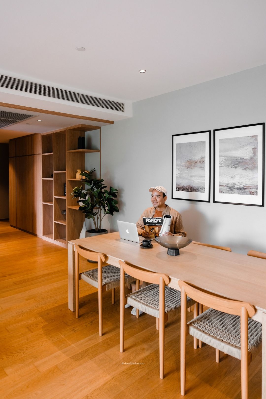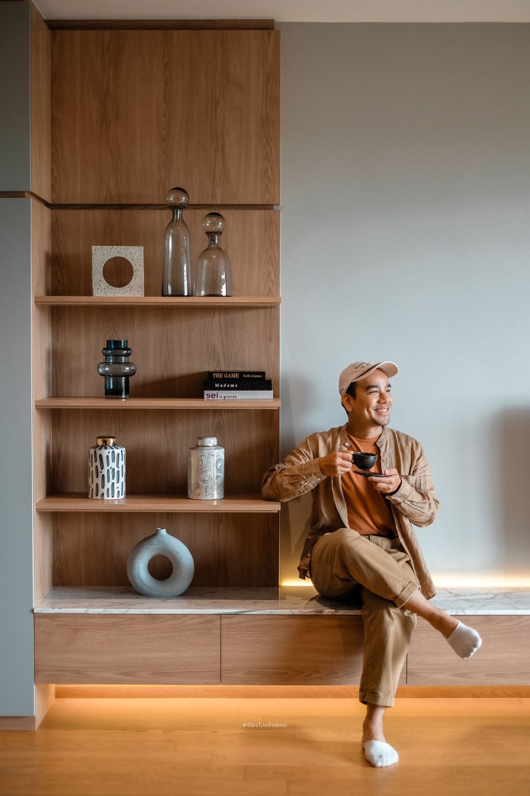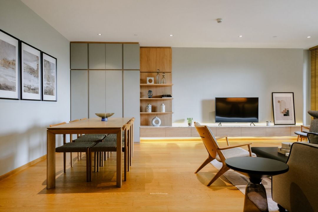 บรรยากาศและความรู้สึกแรกที่เราสัมผัสได้คือมีความเป็นบ้านมากกว่าห้องสี่เหลี่ยมแคบๆ ด้วยขนาดห้องที่ค่อนข้างใหญ่ ทำให้ทุก Space มีการออกแบบให้มีพื้นที่และฟังก์ชั่นที่คำนึงถึงการใช้งานออกมาให้พื้นที่ส่วนตัวและส่วนรวมเชื่อมต่อถึงกันได้อย่างลงตัว เราชอบในตัวดีไซน์และคอนเซ็ปต์การตกแต่งภายในห้องมากๆ ถึงกับว้าวทุกมุมและทุกรายละเอียด ตั้งแต่การเลือกใช้โทนสีร้อน-เย็น เรียกว่าถูกจริตกับความชอบ และความน่ารักเฟอร์นิเจอร์ สไตล์เกาหลีมากๆ ที่ใครเข้ามารับรองว่าต้องตกหลุมรักในทุกดีเทลที่เมื่อมาอยู่ด้วยกันแล้วคือลงตัว ดูละมุนตาไปหมดเลยครับและนอกจากนี้ยังมีความเป็นส่วนตัวอีกด้วย เพราะยูนิตที่นี่ค่อนข้างน้อย รองรับกับหลากหลายกิจกรรมของคนในครอบครัวและไลฟ์สไตล์ที่ของคนรุ่นใหม่ที่เปลี่ยนไปได้ดีเลยครับ