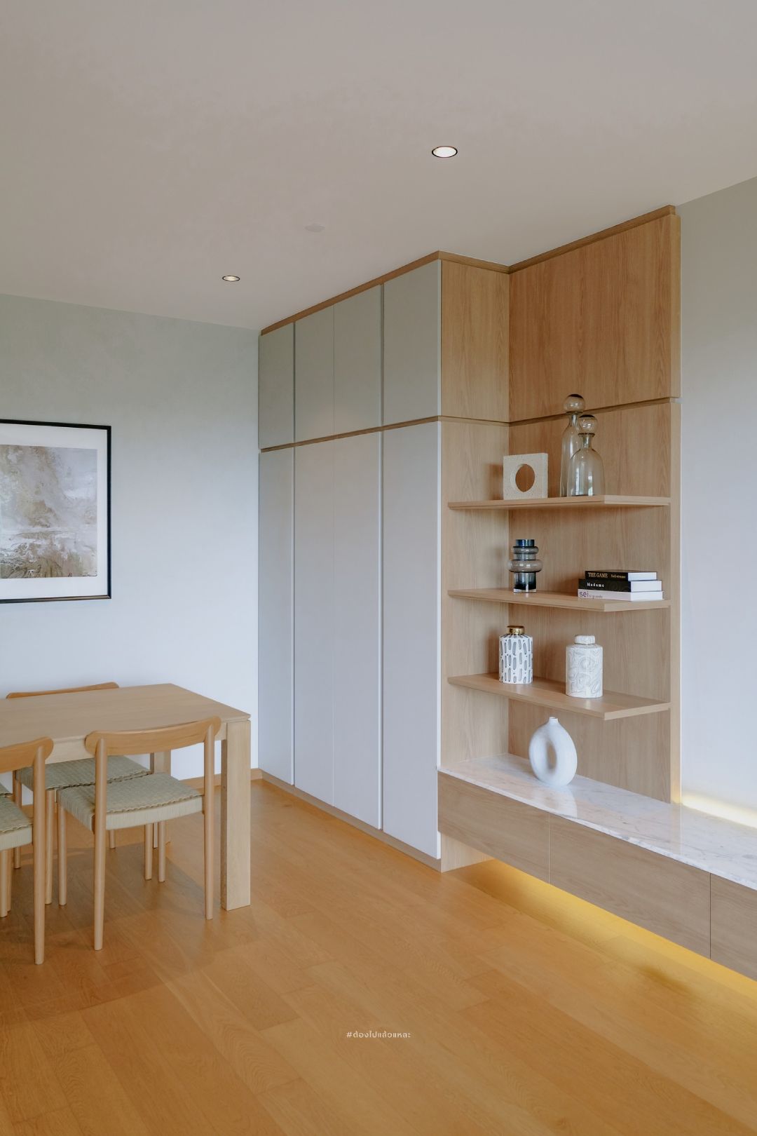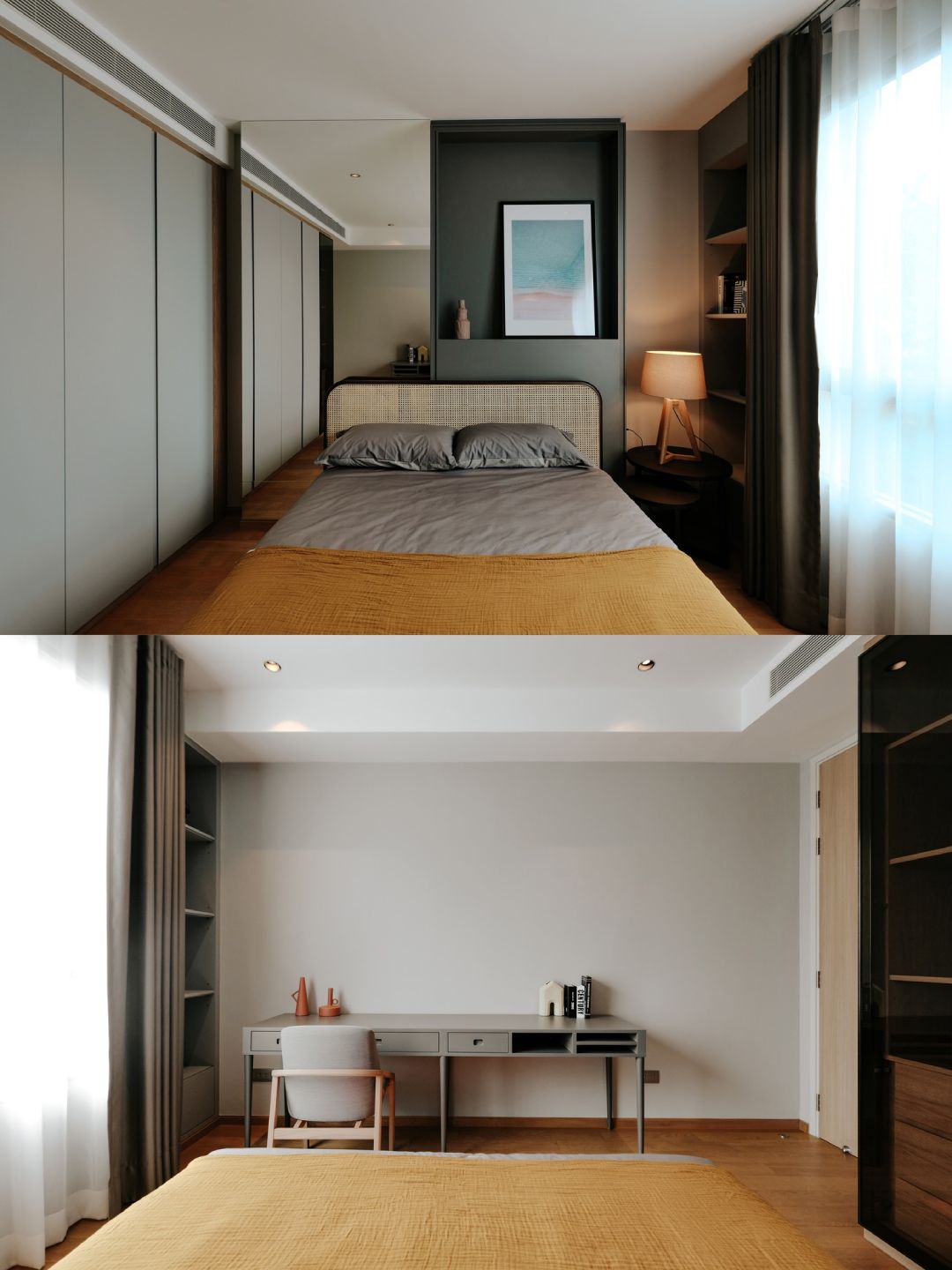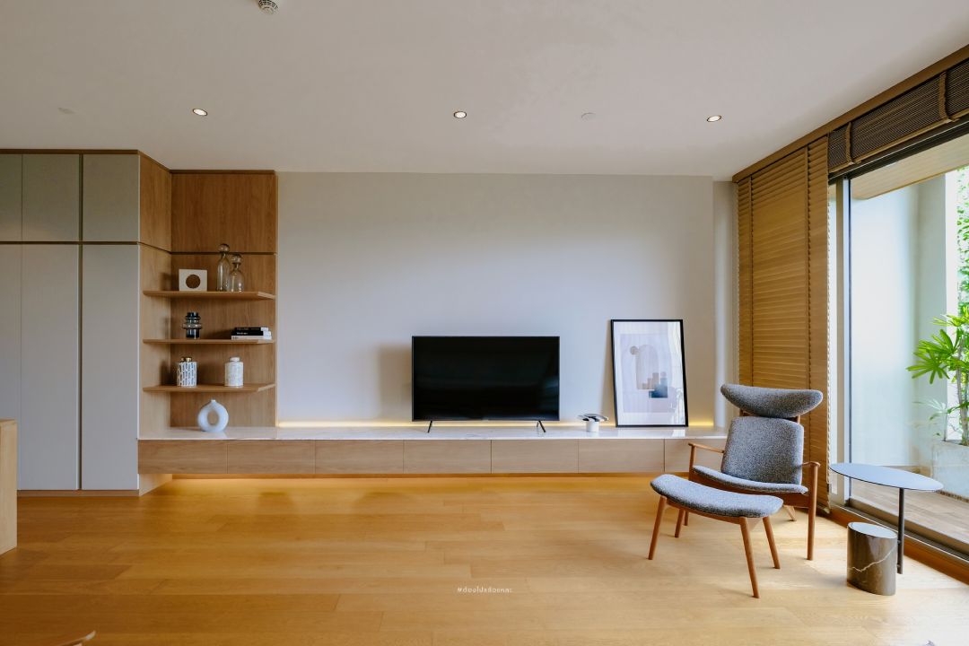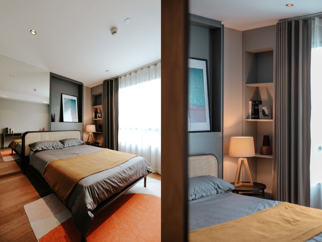 บรรยากาศและความรู้สึกแรกที่เราสัมผัสได้คือมีความเป็นบ้านมากกว่าห้องสี่เหลี่ยมแคบๆ ด้วยขนาดห้องที่ค่อนข้างใหญ่ ทำให้ทุก Space มีการออกแบบให้มีพื้นที่และฟังก์ชั่นที่คำนึงถึงการใช้งานออกมาให้พื้นที่ส่วนตัวและส่วนรวมเชื่อมต่อถึงกันได้อย่างลงตัว เราชอบในตัวดีไซน์และคอนเซ็ปต์การตกแต่งภายในห้องมากๆ ถึงกับว้าวทุกมุมและทุกรายละเอียด ตั้งแต่การเลือกใช้โทนสีร้อน-เย็น เรียกว่าถูกจริตกับความชอบ และความน่ารักเฟอร์นิเจอร์ สไตล์เกาหลีมากๆ ที่ใครเข้ามารับรองว่าต้องตกหลุมรักในทุกดีเทลที่เมื่อมาอยู่ด้วยกันแล้วคือลงตัว ดูละมุนตาไปหมดเลยครับและนอกจากนี้ยังมีความเป็นส่วนตัวอีกด้วย เพราะยูนิตที่นี่ค่อนข้างน้อย รองรับกับหลากหลายกิจกรรมของคนในครอบครัวและไลฟ์สไตล์ที่ของคนรุ่นใหม่ที่เปลี่ยนไปได้ดีเลยครับ
