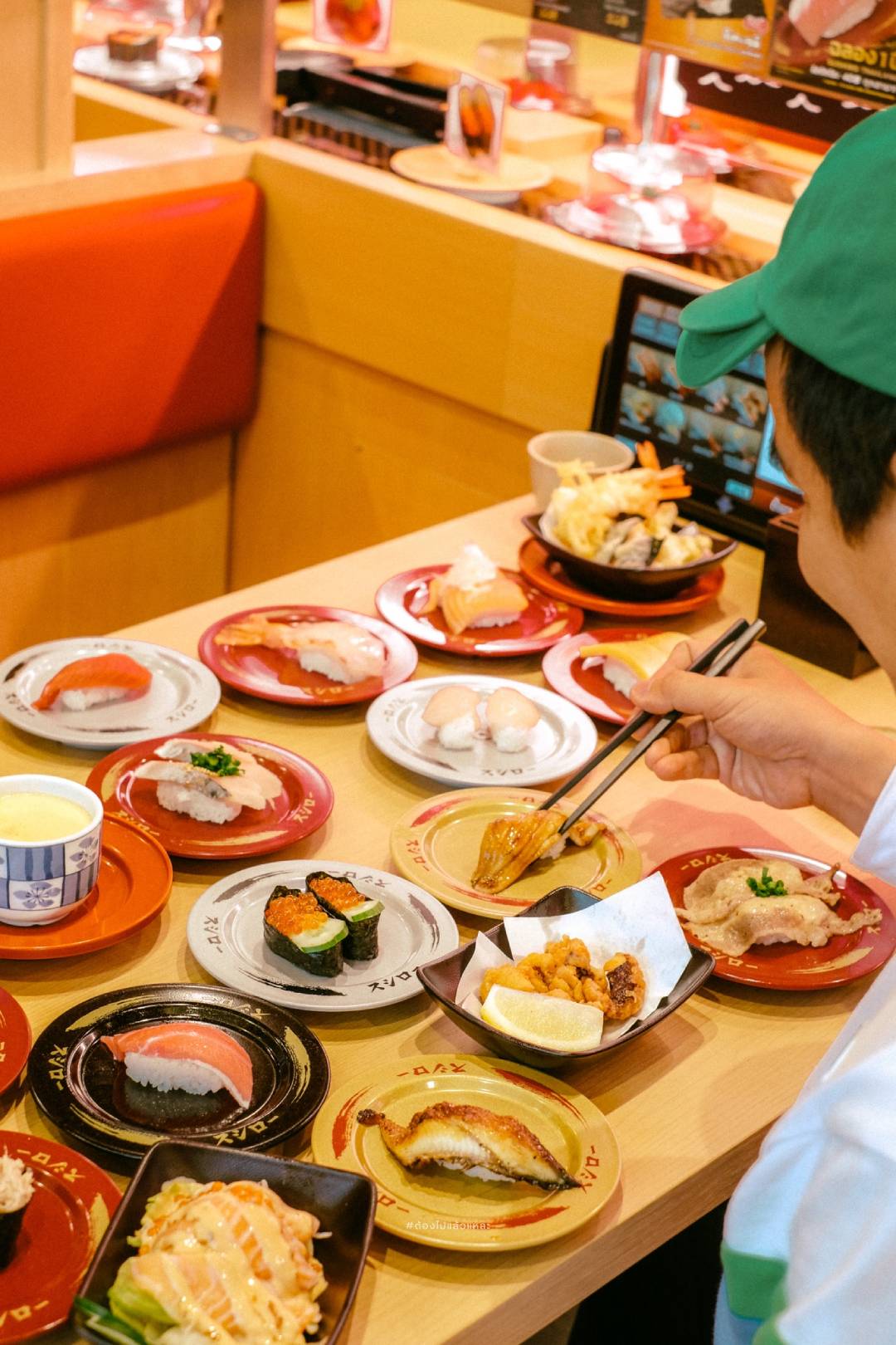 ให้สามารถเลือกหยิบทุกเมนูได้เลยหรือจะสั่งผ่านจอ Tablet บนโต๊ะ ราคาเริ่มต้นที่จานละ 40 บาท ในเมนูซูชิคำใหญ่และรสชาติเดียวกันของญี่ปุ่นเลยครับ ซึ่งเราชอบในมีเมนูที่หลากหลายมาก ๆ ซึ่งแต่ละเมนูก็ถือว่าดีมากๆ ถือว่าคุ้มค่ากับราคามากๆ นอกจากได้ฟินกับ เมนูซูชิแล้ว ยังฟินกับวิวหลักล้านนนนน สามารถมองเห็น ทัศนียภาพมุมสูง เห็นตึกระฟ้าของมหานครกรุงเทพและท่ามกลางสวนใจกลางสุขุมวิท บนชั้น 4 ของฝั่งดิเอ็มโพเรียมกันอีกด้วยนะครับ