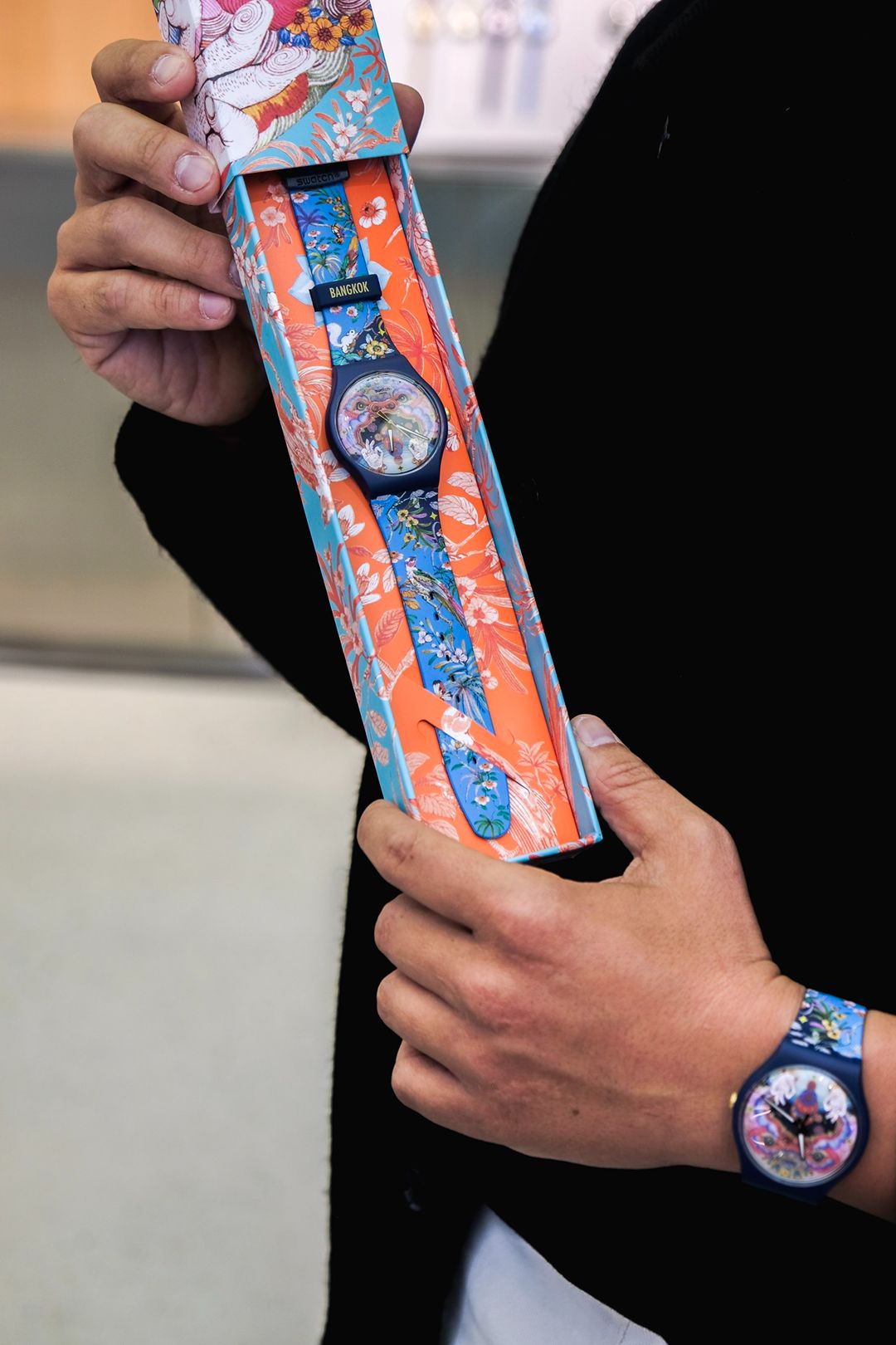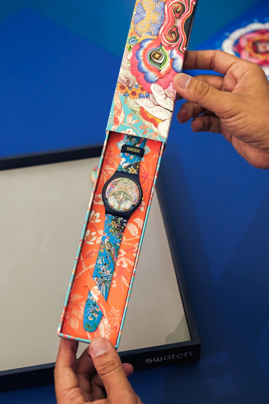 พร้อมจับจองเป็นเจ้าของแฟชั่นไอเทมสุดไอคอนิก ที่มีชิ้นเดียวในโลกกับนาฬิกา Swatch Destination Art Bangkok รุ่น THE WANDERER ซึ่งออกแบบดีไซน์ โดยไทยดีไซเนอร์สุดเก๋ ยูน-ปัณพัท เตชเมธากุล (@phannapast) ศิลปินนักวาดที่มีลายเส้นเป็นเอกลักษณ์ นำเสนอผลงานผ่านตัวละคร ‘หนุมาน’ คาแรคเตอร์เอกจากเรื่องรามเกียรติ์ ไปจนถึงลายไทยอันวิจิตรบรรจง ที่มีเอกลักษณ์เฉพาะตัว โดยสื่อถึงมรดกทางวัฒนธรรมอันงดงามของไทย เพื่อมอบประสบการณ์สุดเอ็กซ์คลูซีฟแก่ผู้มาเยือน เป็น unique item ที่น่าเก็บสะสมมากๆครับ