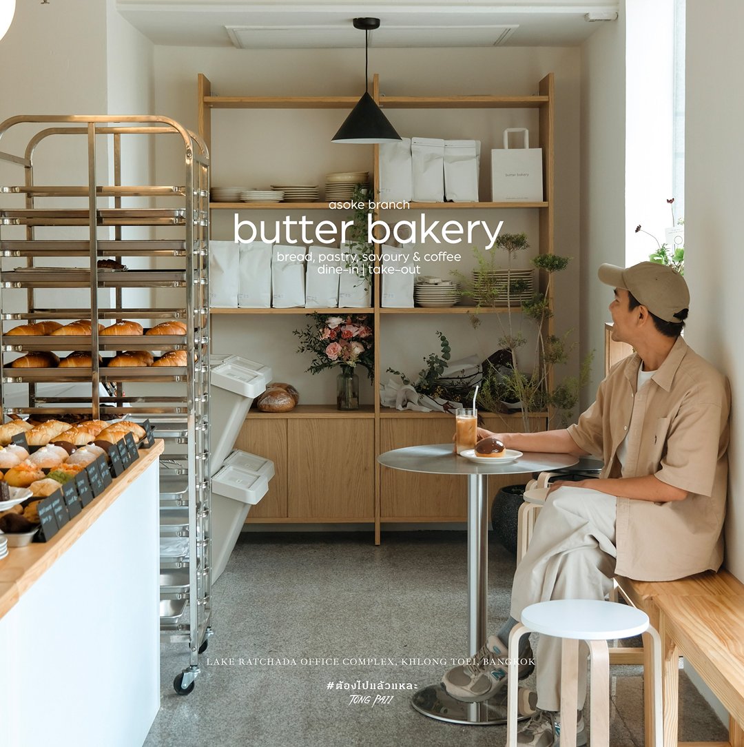 ใครที่เป็นแฟนเมนูขนมร้าน Butter Bakery ต้องแวะมาเติมขนมด่วน เพราะที่นี่เป็นสาขาใหม่ล่าสุด อยู่ในอาคาร 9 Lake Ratchada Office Complex ฝั่งตรงข้ามกับสวนเบญจกิติเลยครับ