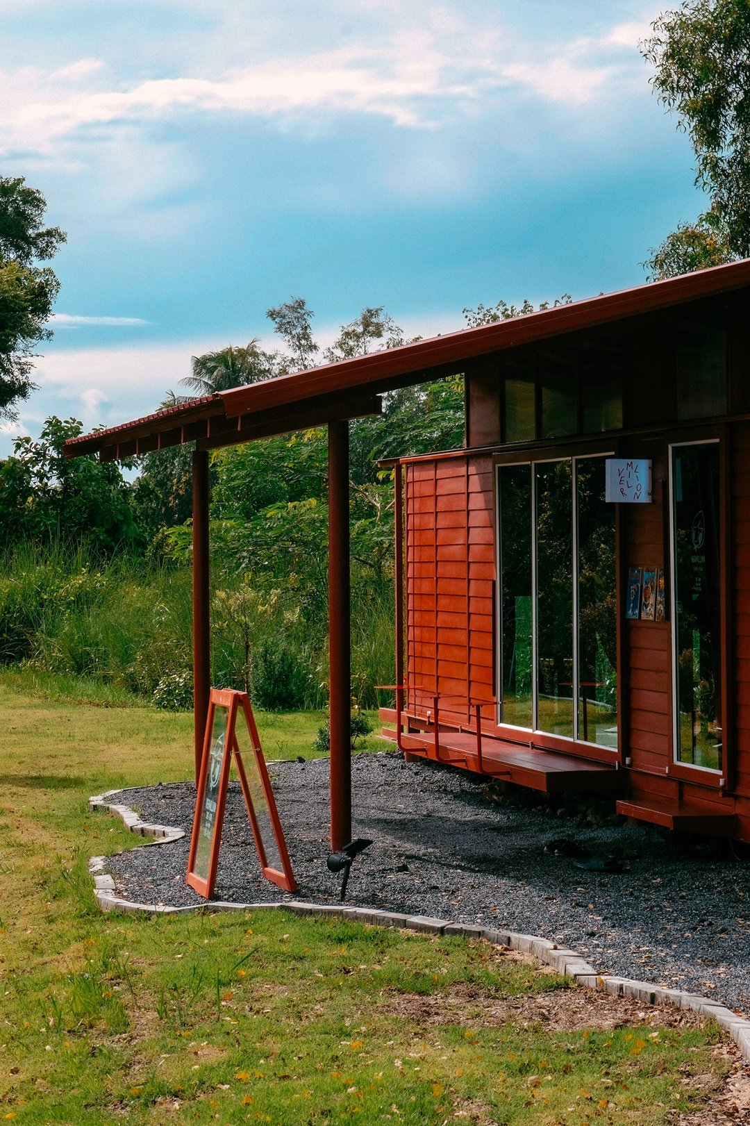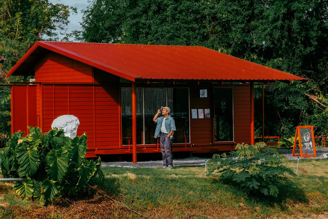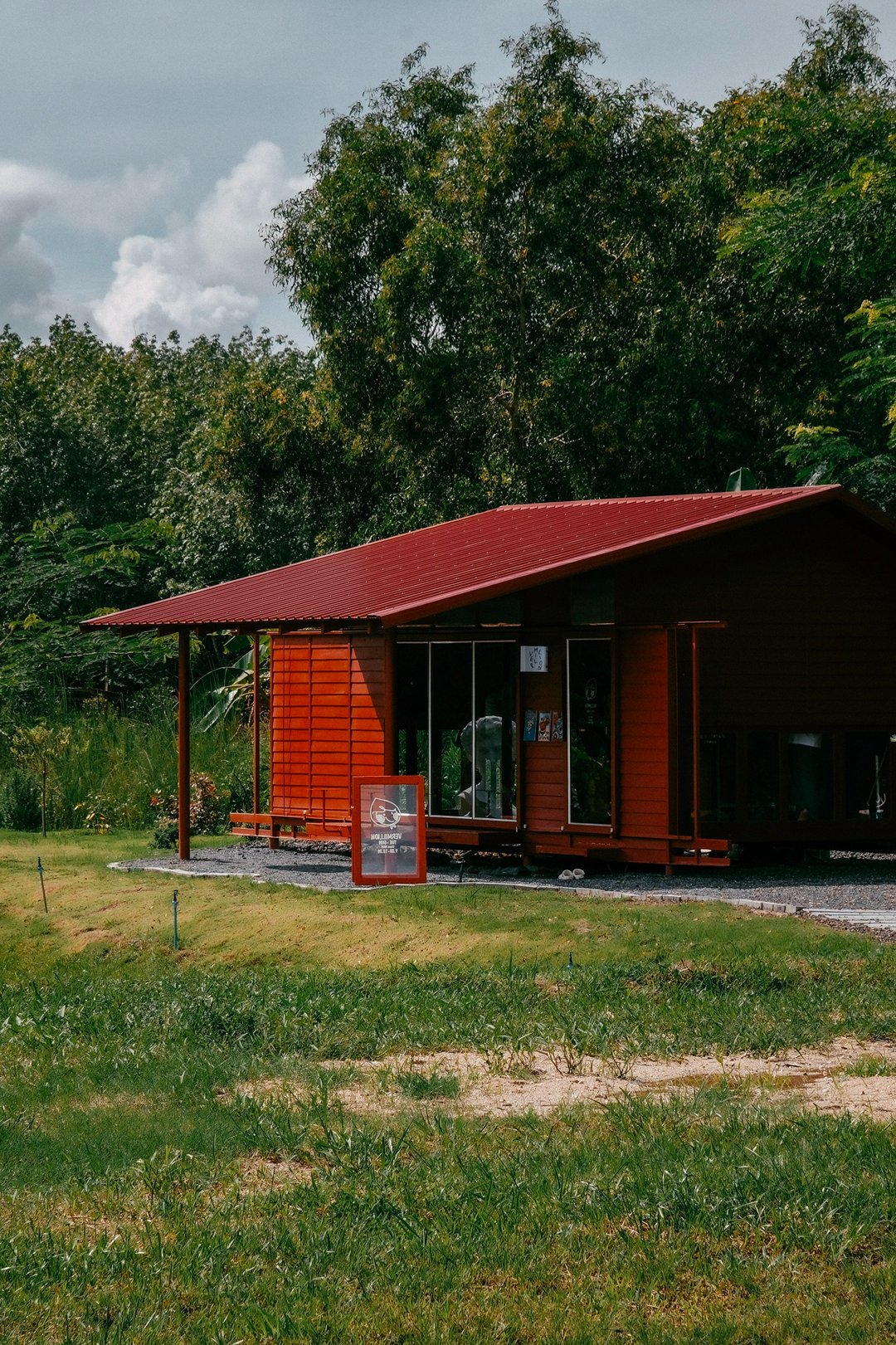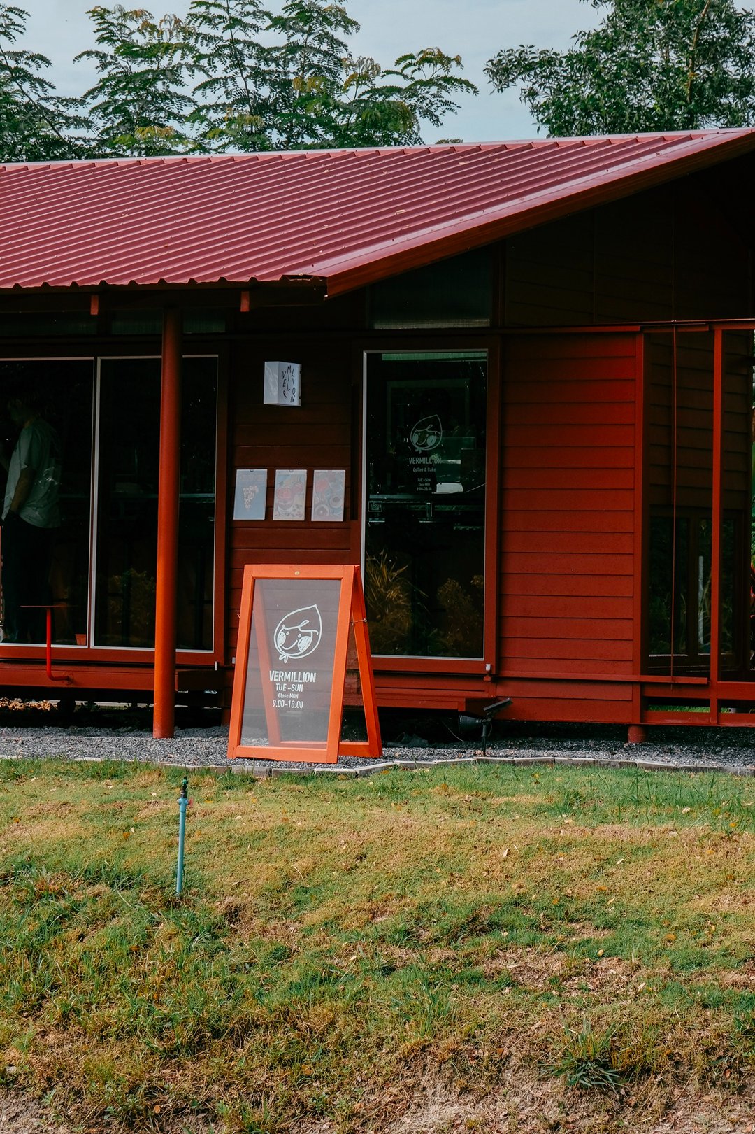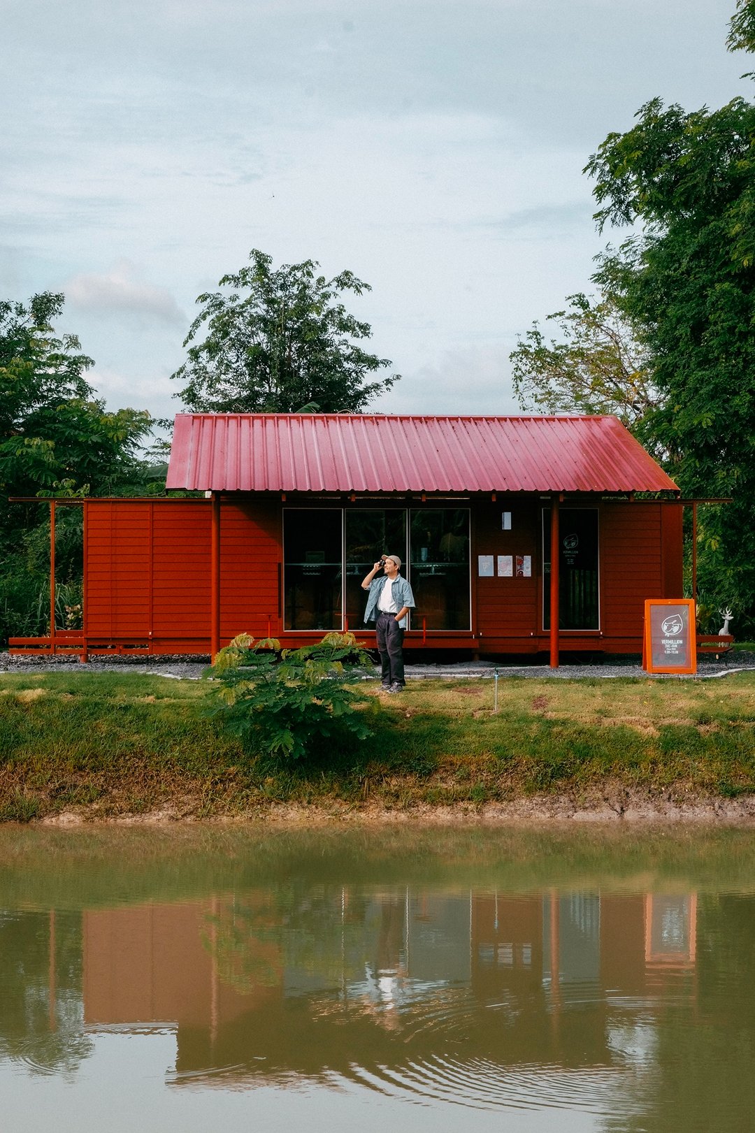 บ้านไม้สีแดงแบบโมโนโทน ตั้งอยู่กลางสวนสีเขียว เป็นคาเฟ่ที่เรียบง่าย แต่เต็มไปด้วยความตั้งใจ ออกแบบมาอย่างเข้าใจธรรมชาติ