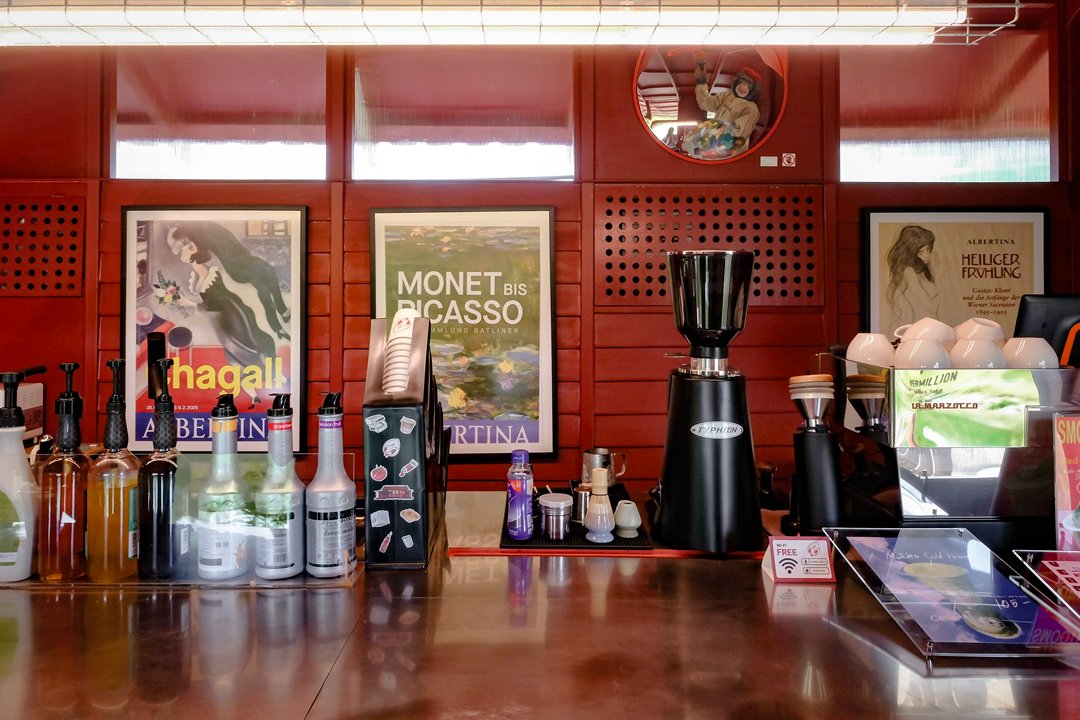 การดีไซน์ของที่นี่คือโดดเด่นไม่เหมือนที่ไหน โดยเฉพาะโทนสีแดง Vermillion red ที่ตัดกับวิวธรรมชาติรอบตัว เรียกว่าเป็นอีกหนึ่ง แลนด์มาร์กคาเฟ่ใหม่ที่สายคาเฟ่ฮอปปิ้ง ต้องห้ามพลาด เหมาะกับทั้งมานั่งชิล จิบกาแฟ หรือหามุมถ่ายรูปสุดๆ มุมไฮไลท์คือบริเวณมุมที่นั่งนอกบ้านที่สามารถนั่งจิบกาแฟ เทควิวตรงหน้าได้สวยทุกองศา