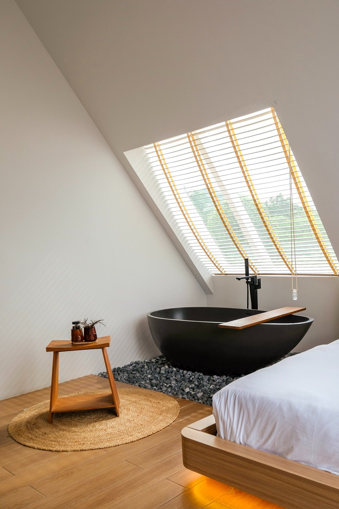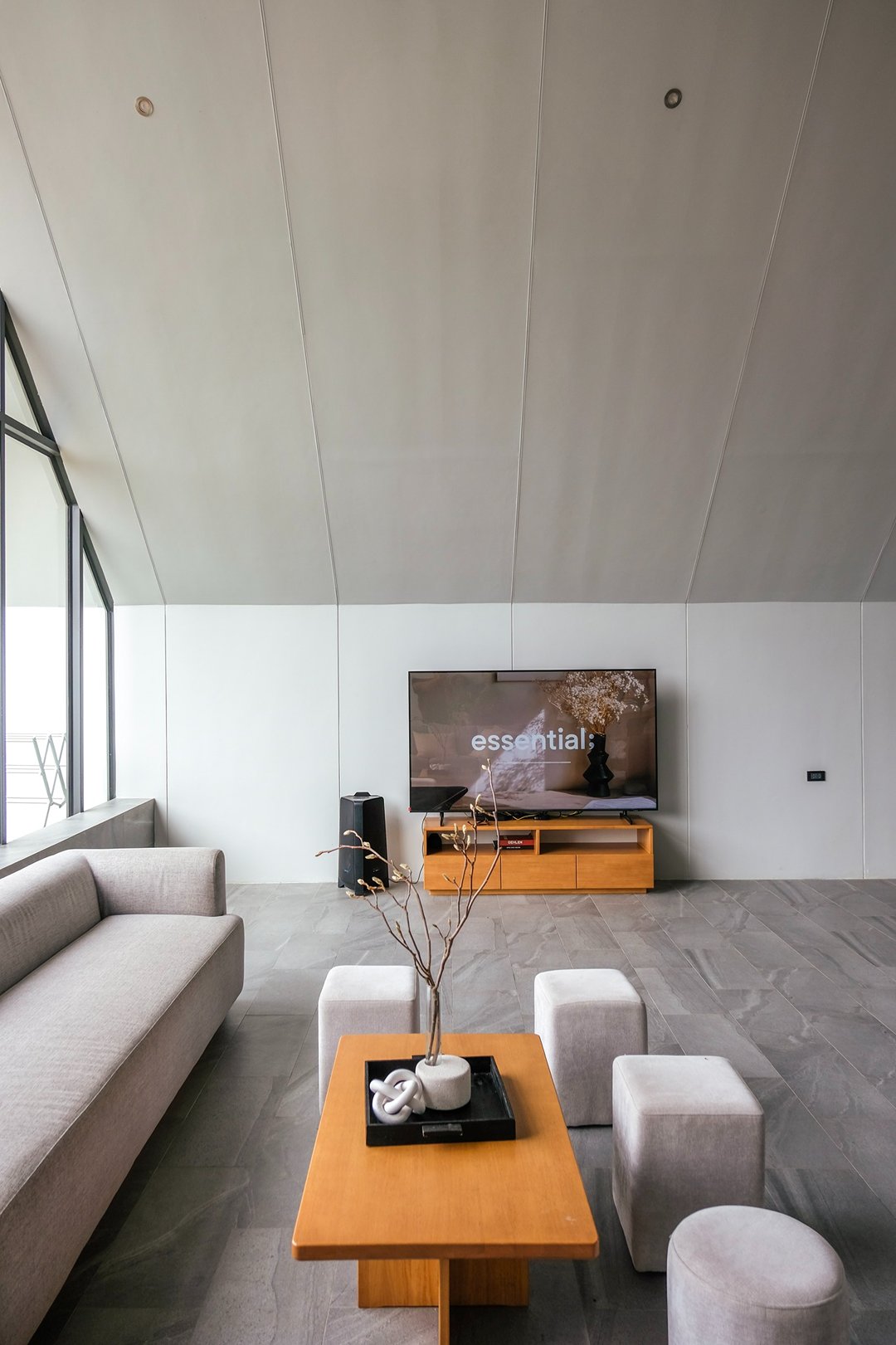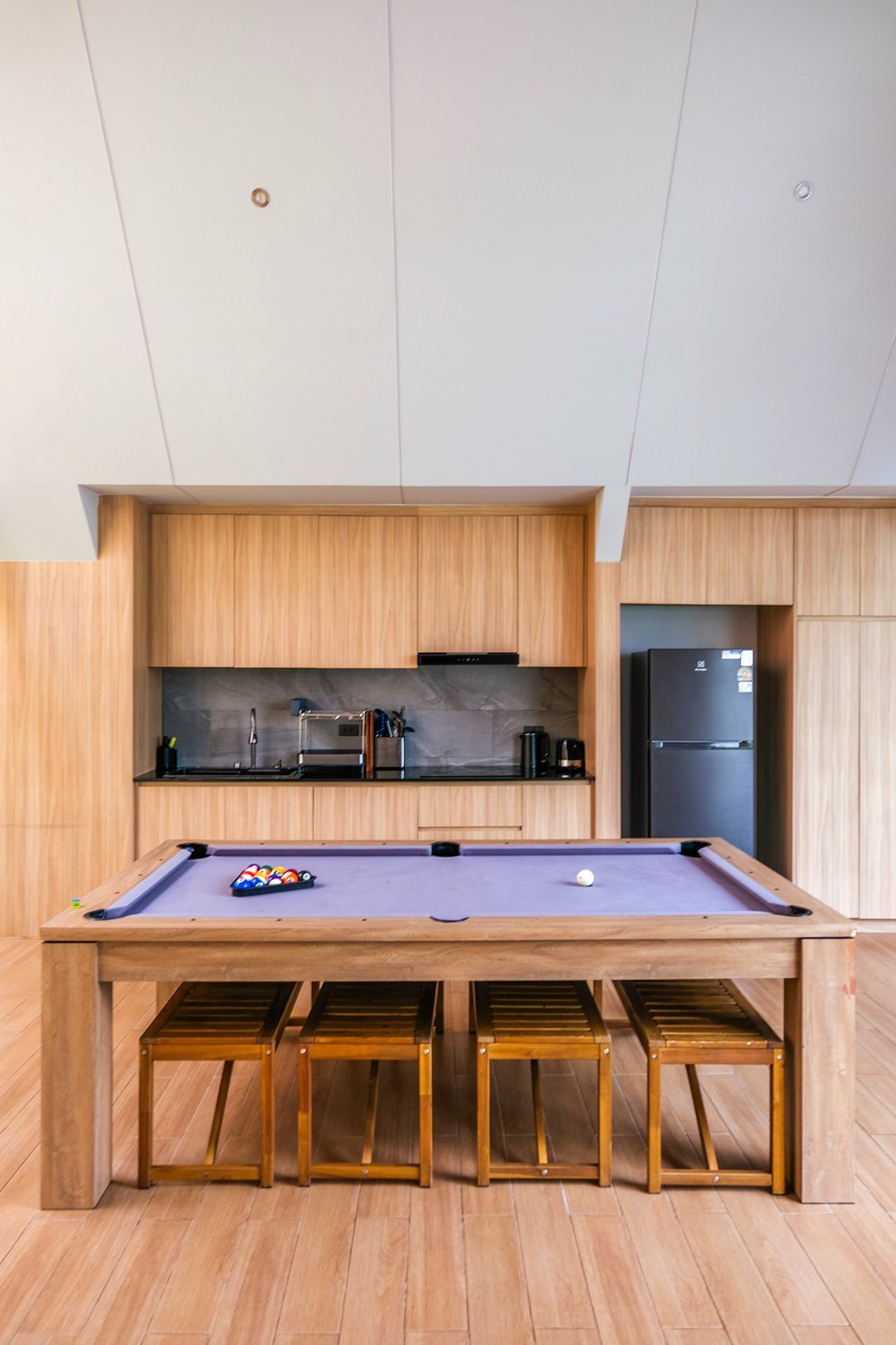 ภายในบ้านตกแต่งด้วยมู้ดโทนอบอุ่น รายล้อมด้วยวัสดุธรรมชาติที่ทำให้ทุกสัมผัสเบาสบาย สิ่งแรกที่ทำเราว้าวด้วยตาเนื้อเลยคือมุมสระออนเซ็นอุ่นในร่ม ที่ปรับอุณหภูมิได้ 37° พร้อมหลังคา Skylight Roof บานใหญ่ ที่สาดแสงธรรมชาติส่องลงมาแบบนุ่มๆ ทุกช่วงเวลาแช่น้ำได้ตั้งบ่ายยันเย็นก็ฟินสุดๆ หรือจะยืนทำคอนเท็นริมสระก็คือได้รูปเก๋กรุบแน่นอน อีกอย่างที่ประทับใจคือบรรยากาศภายในบ้านที่เชื่อมต่อถึงกันหมด ทั้งห้องนอน Pool Access, ห้องนั่งเล่น Double Space ที่มีเพดานสูงโปร่งถึง 6 เมตร, ครัว และโซนแช่ออนเซ็น — ทุกมุมออกแบบมาเพื่อการพักผ่อนอย่างแท้จริง บอกเลยว่าทำถึง เรียกว่าพักผ่อนแทบไม่ได้ออกไปไหนเลย แค่เปิดประตูก็ก้าวลงสระได้เลย