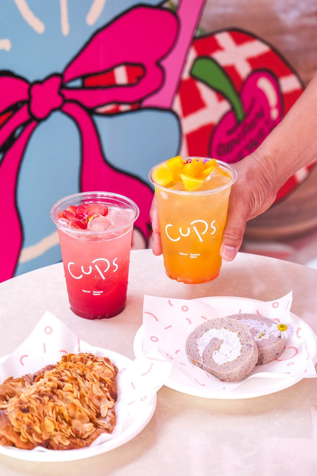 • ชั้น3 เป็นโซน Cups Cafe ให้ทุกคนมานั่งพักตากแอร์ฉ่ำๆ พร้อมจิบเครื่องดื่มเย็นๆ และเบเกอรี่ที่แสนอร่อยได้เลย เมนูแนะนำที่เราอยากป้ายยา Taro Roll โรลเผือกสุดนุ่ม ละมุน กับเนื้อครีมแน่นๆ สั่งมาทานคู่กันกับ Mango Peach Soda ไอเลิฟมากๆ สดชื่นเหมาะกับช่วงหน้าร้อนสุดๆ